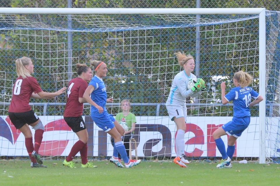 De jyske værter kom godt fra land, da Lykke Skov - efter to forsøg - fik overlistet den tidligere KoldingQ-keeper Camilla Simonsen i det odenseanske mål. Odense Q kom hurtigt videre, og fik bl.a. spillet sig frem til en stor chance til Tenna Kappels, der dog måtte se sit forsøg blokeret af KoldingQ’s Mette Lorentzen tæt inde under mål.