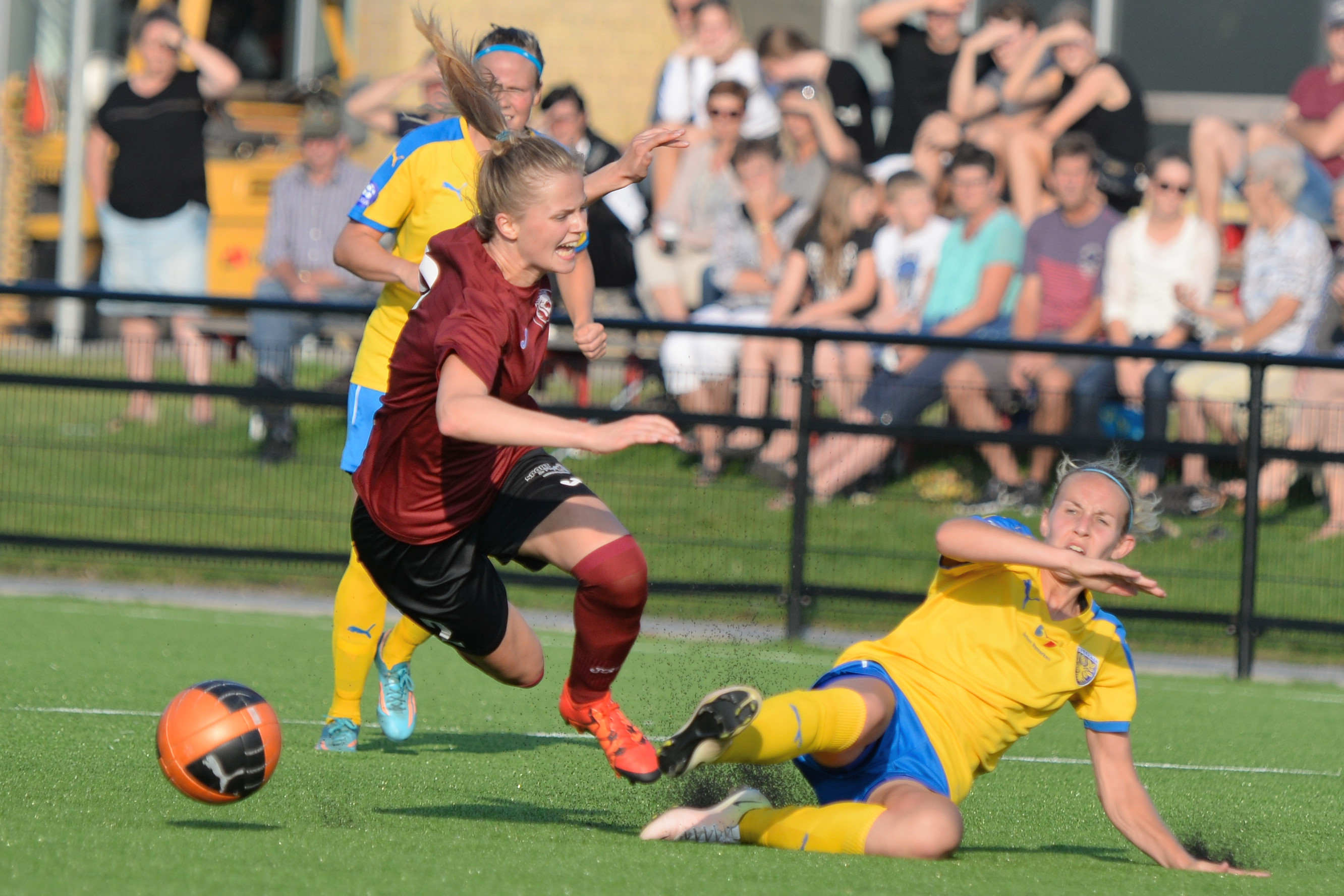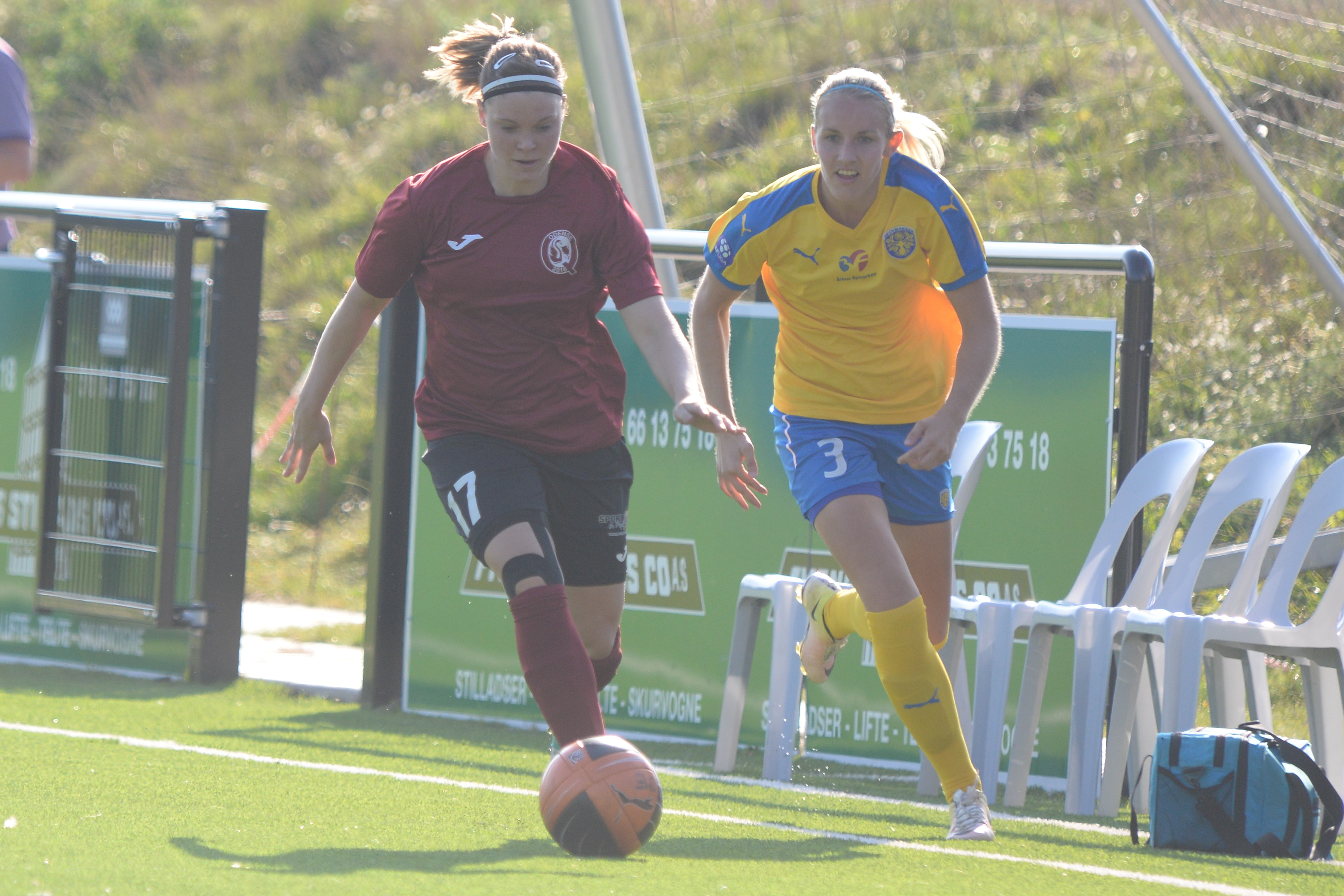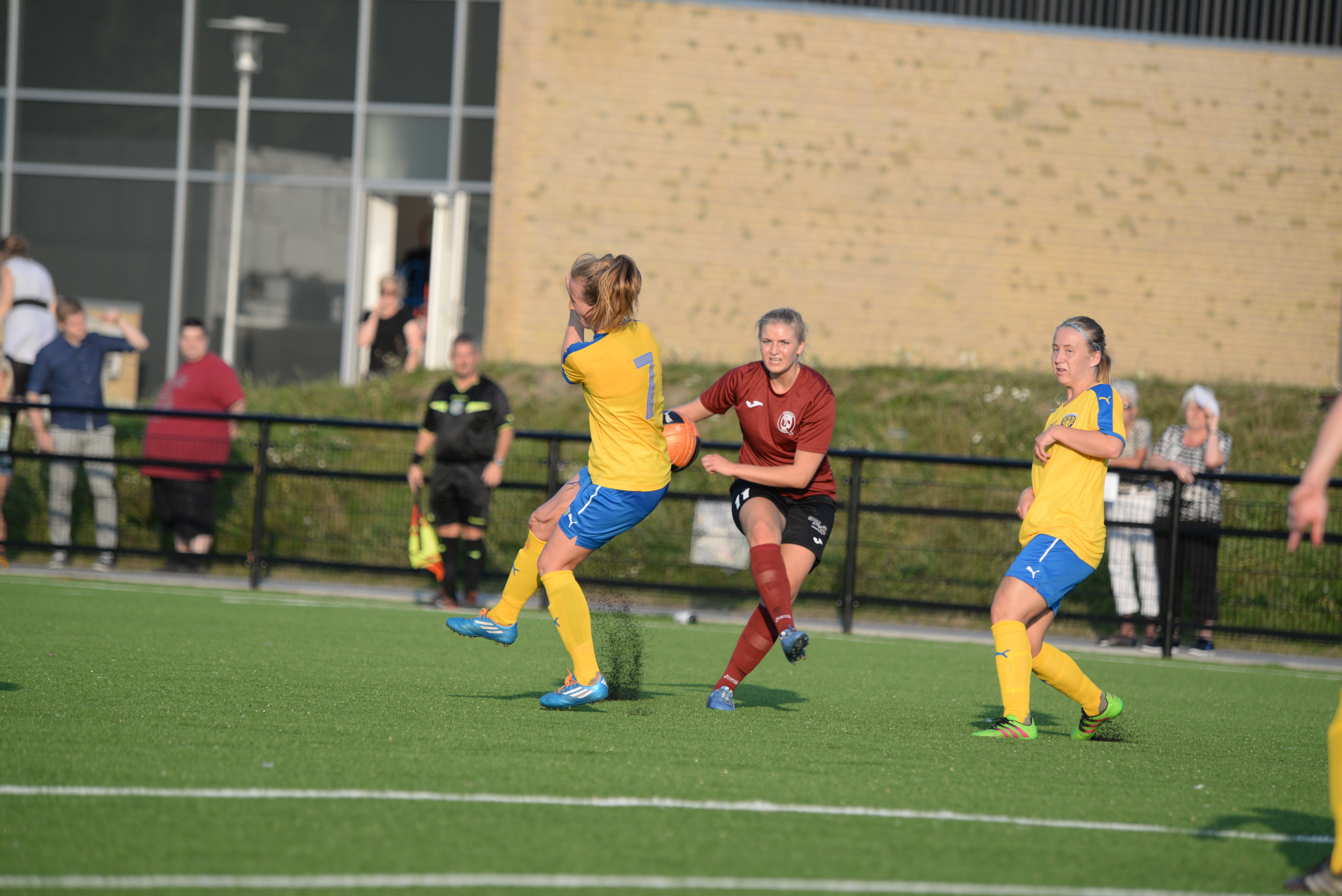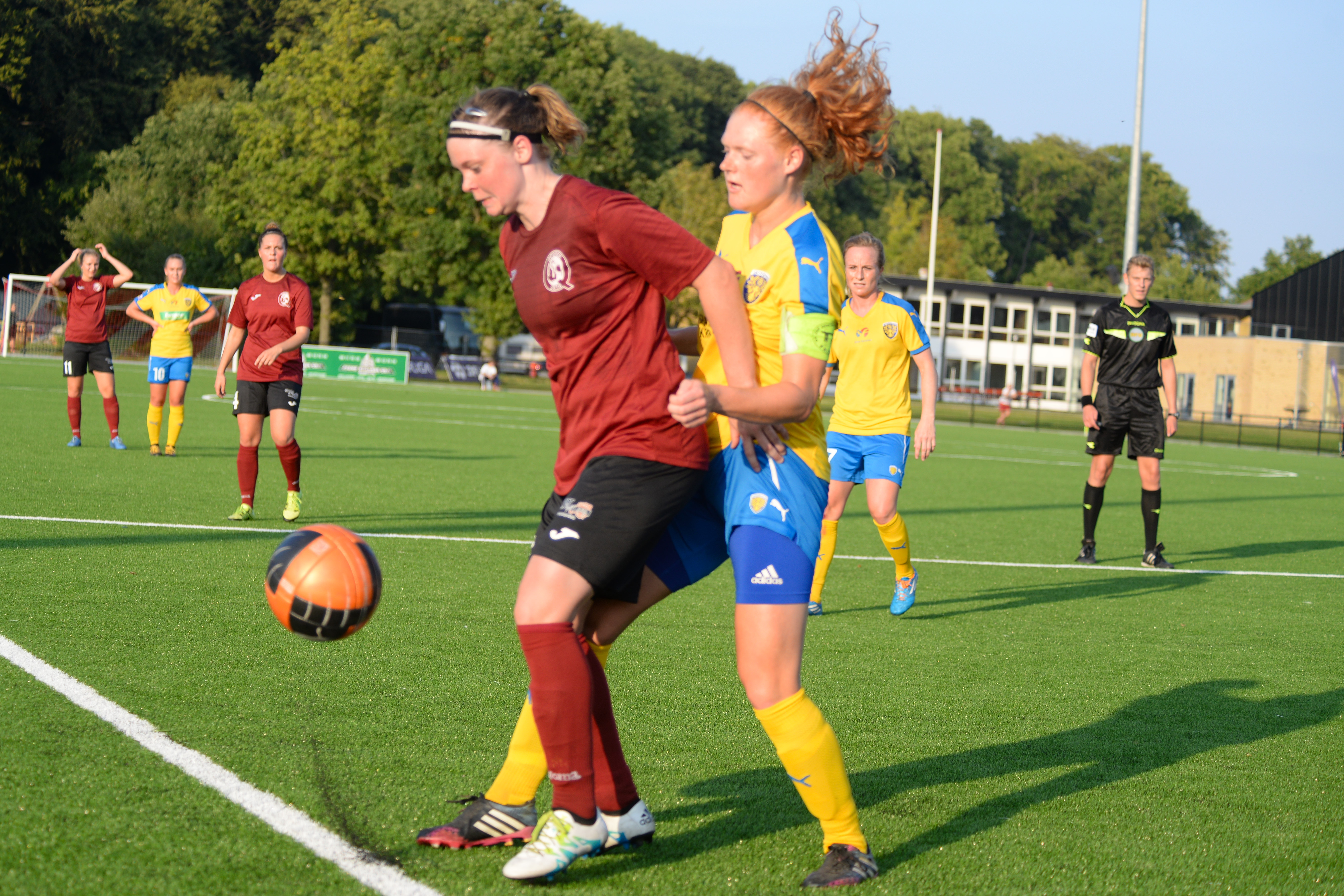 Trods den høje sol startede kampen som lyn og torden, da Line Munk efter blot halvandet minuts spil bragte værterne i front. Første halvleg var dog langt hen ad vejen en jævnbyrdig affære, hvor begge hold kom frem til gode chancer, alt imens der blev udkæmpet store dueller på midten af banen. Trods de forskellige tilbud til begge mandskaber forblev det ved det ene mål i de første 45 minutter.