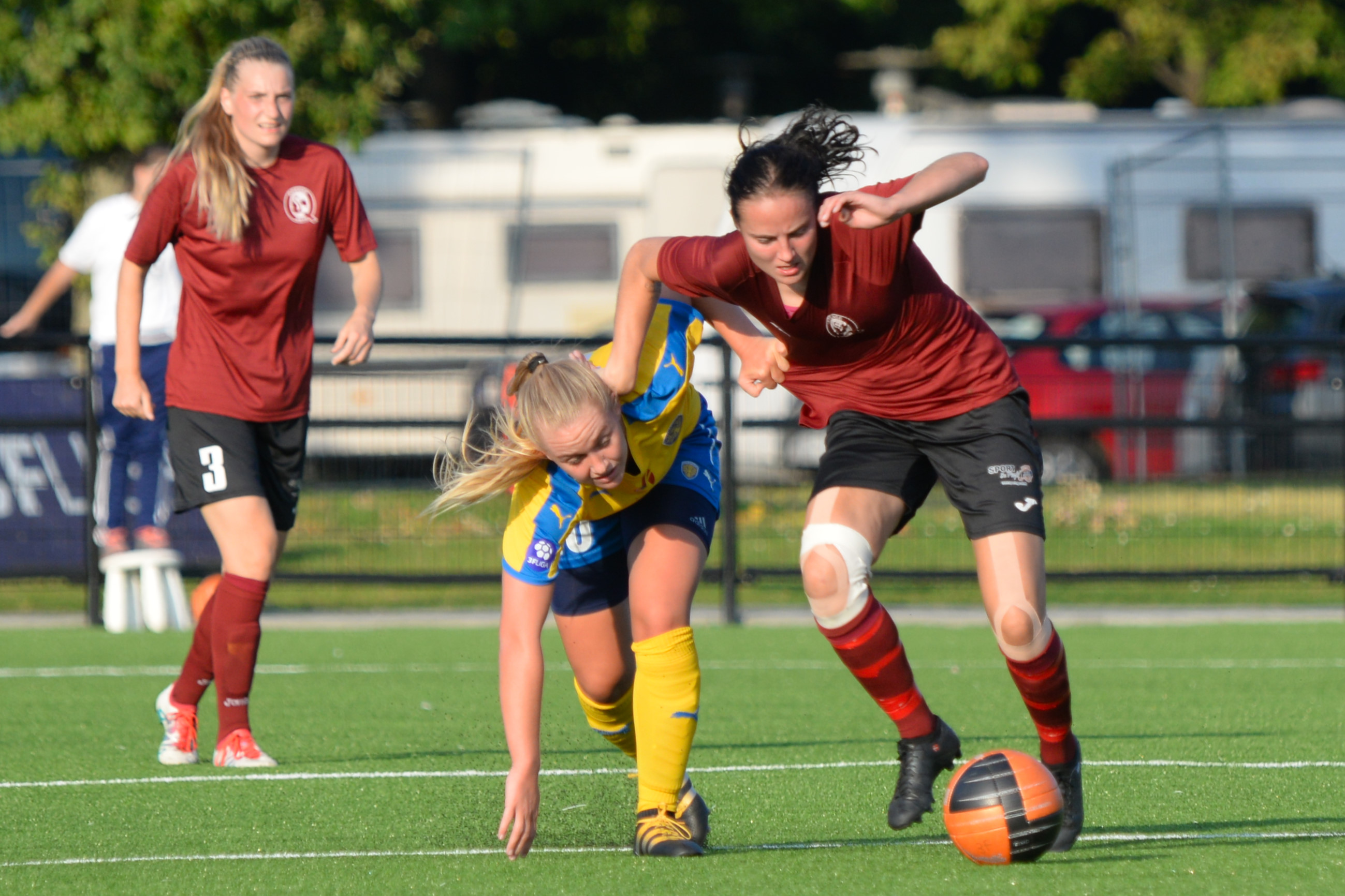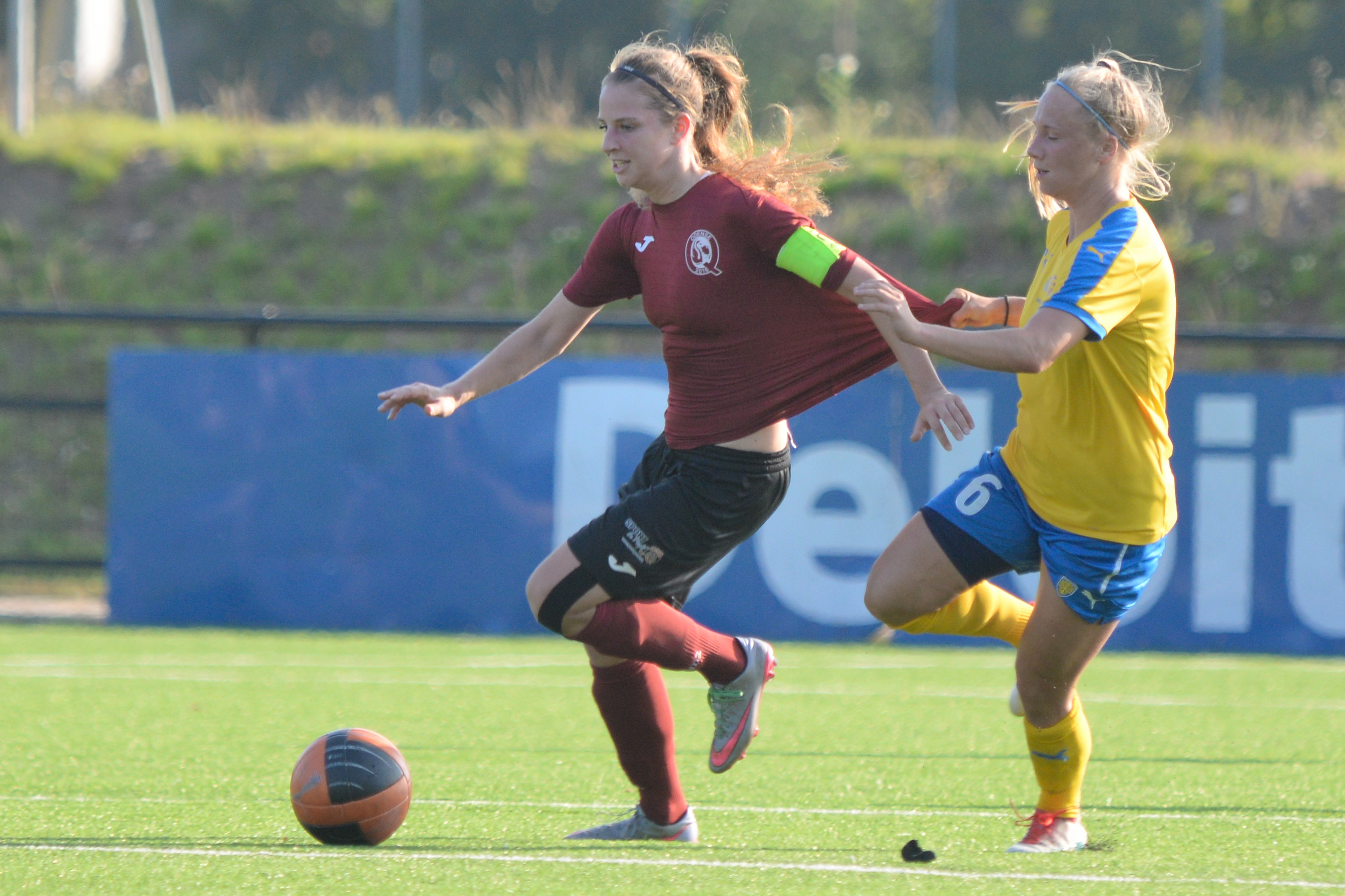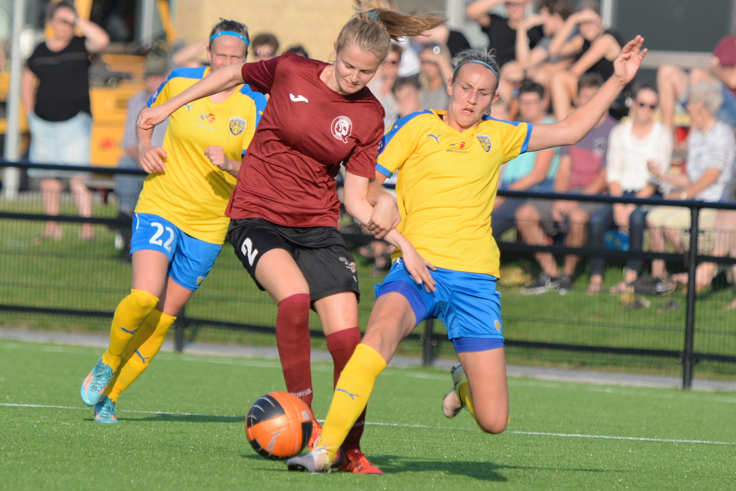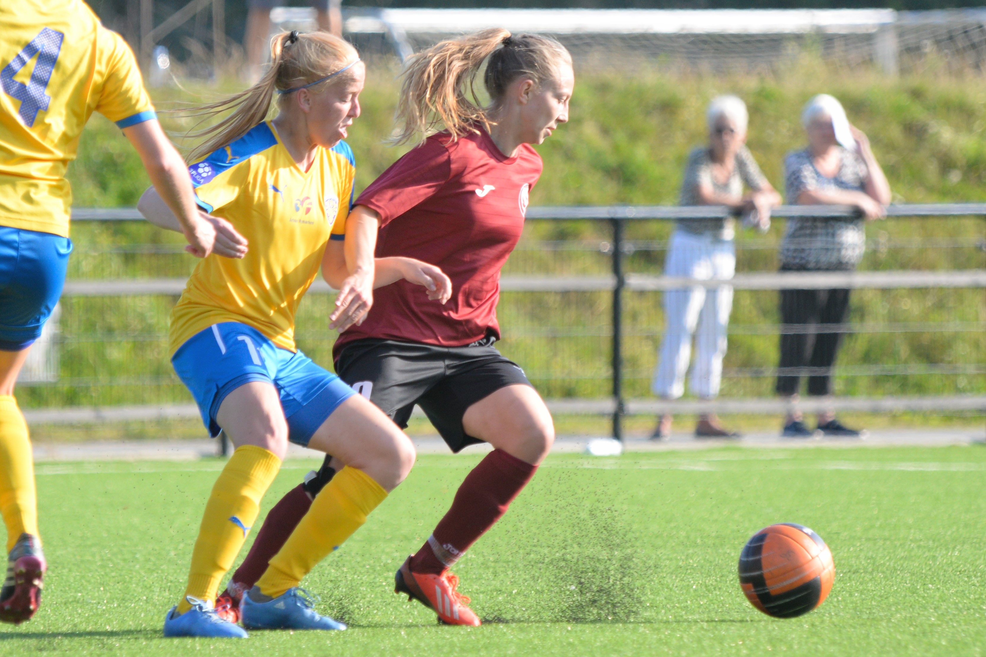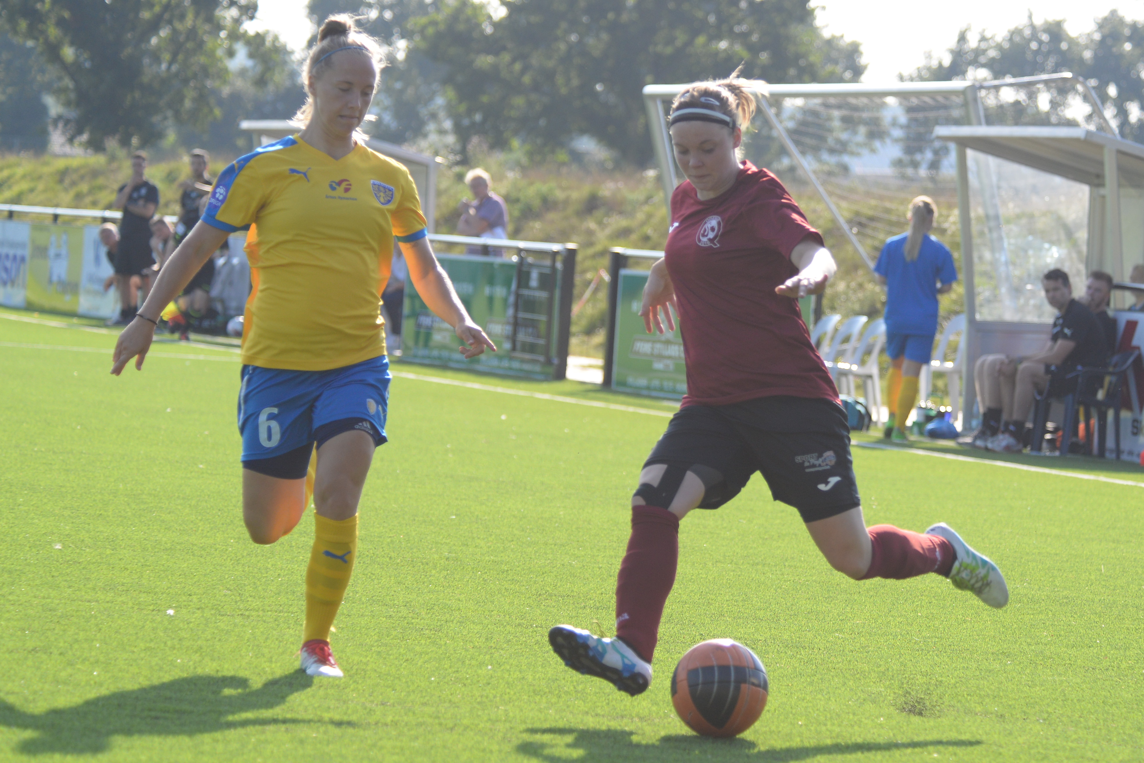 Trods den høje sol startede kampen som lyn og torden, da Line Munk efter blot halvandet minuts spil bragte værterne i front. Første halvleg var dog langt hen ad vejen en jævnbyrdig affære, hvor begge hold kom frem til gode chancer, alt imens der blev udkæmpet store dueller på midten af banen. Trods de forskellige tilbud til begge mandskaber forblev det ved det ene mål i de første 45 minutter.