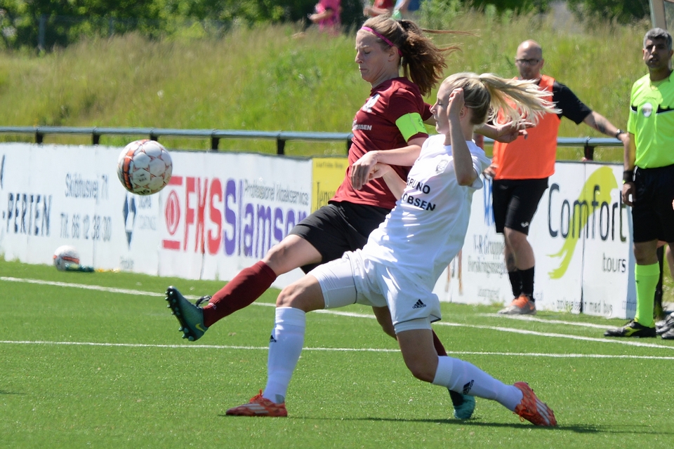 Trætheden kunne så småt fornemmes hos begge hold, der var svært udfordret i den bagende sol. I kampens slutfase kom hjemmeholdets Anna-Sofie Rosholm til et par gode skudmuligheder, men selv forårets Odense Q-topscorer måtte se langt efter målene i dag.
