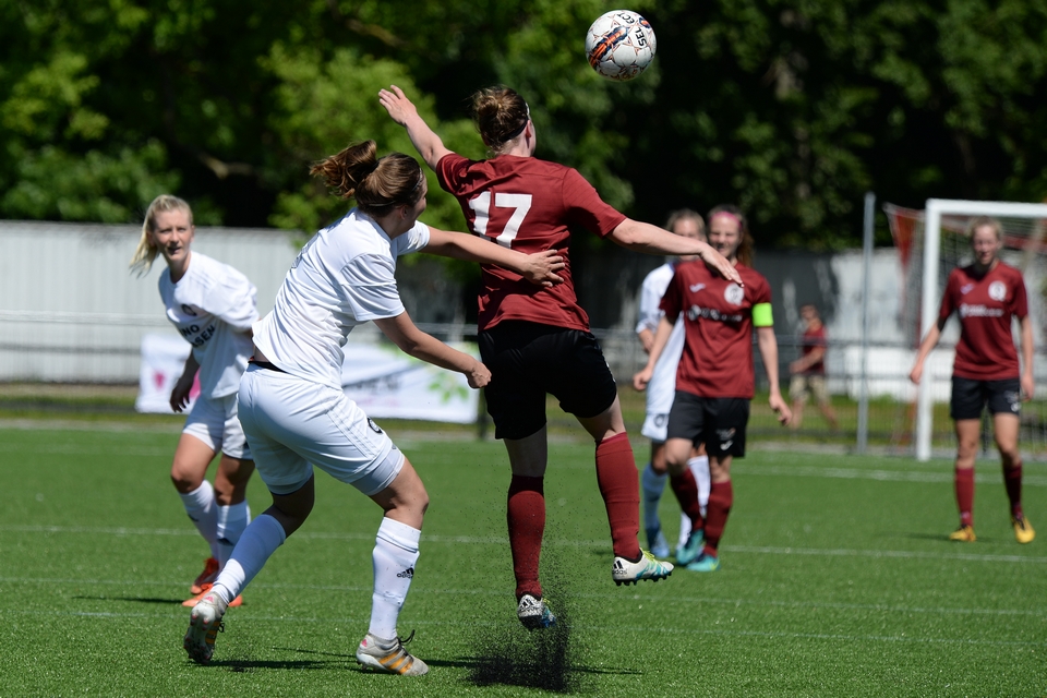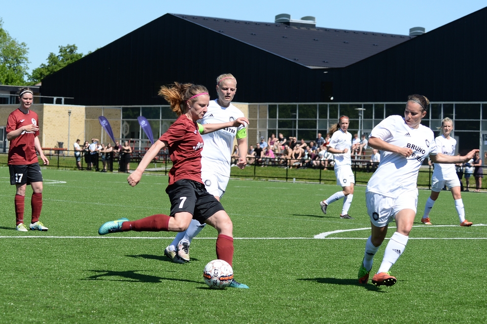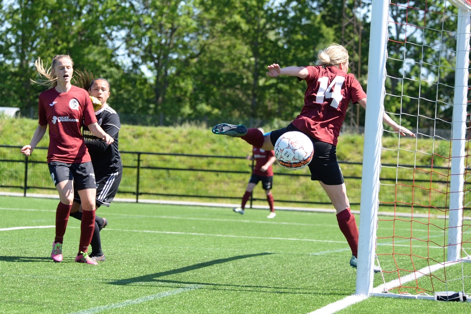 Begge hold kom aggressivt ud af startblokkene, men det var værterne, der med højt pres og god bevægelse viste mest initiativ i kampens indledning. Det første store højdepunkt indtraf efter 8 minutters spil, da Maria Thomsen fandt Anna-Sofie Rosholm i dybden, men Sundby-keeperen kom godt ud af sit mål og fik afværget. Og minuttet efter brændte det igen på i gæsternes straffesparksfelt. Britta Olsen sendte et indlæg ind i panden på Michele Hannibaldsen, som fra en ellers god position måtte se sin afslutning gå forbi mål.