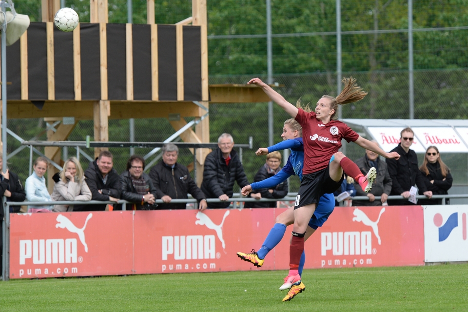 - Det handler mest af alt om timing og om at ha’ troen på, at bolden kommer. Og så skal man selvfølgelig ha’ modet til at gå op og møde den, fortæller Britta Olsen om luftduellerne i feltet.