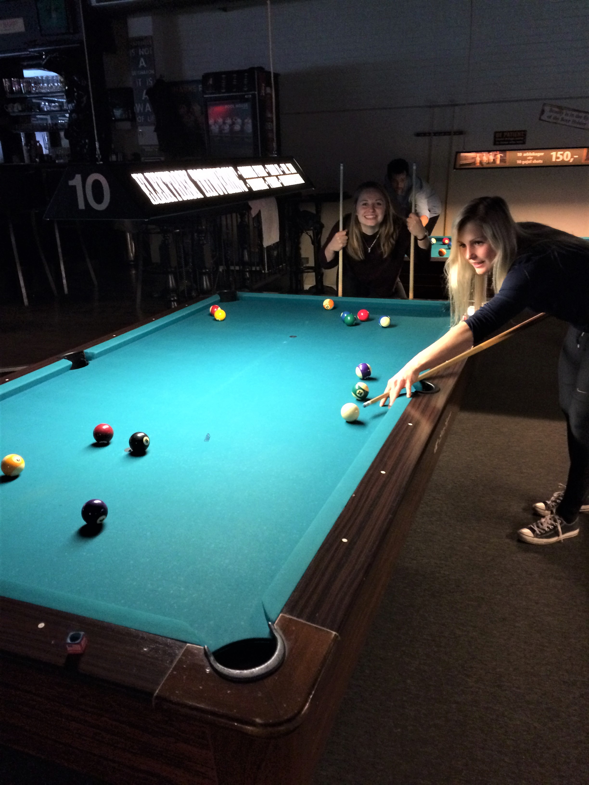 Starten gik kl. 16:50, hvor spillere og trænere mødtes til et slag pool på Sharks Pool House i Slotsgade. På et par af bordene gik den klassiske diskussion om placeringen af den hvide kugle, efter modstanderen havde skudt denne i hul. Til trods for uenighederne blev der spillet på livet løs, og vi var vidne til et hav af tekniske finesser og fejl undervejs.
