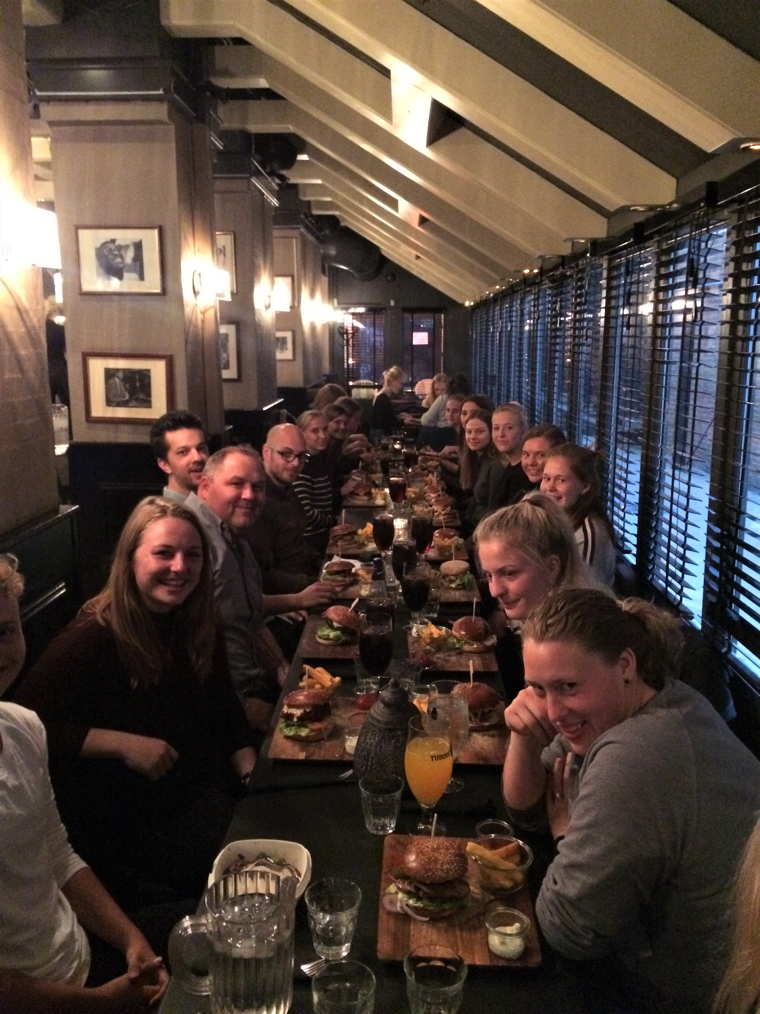 Efter pooldysten gik turen mod Froggy’s Café i Vestergade. Her blev vi budt på lækre burgere og hyggelig stemning, alt imens spillere og trænere snakkede sammen på kryds og tværs. Vi fik desuden en rigtig god betjening på Froggy’s, og det er helt sikkert et sted, vi har tænkt os at besøge igen.
