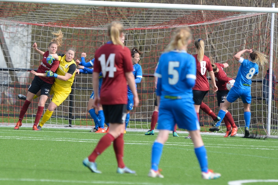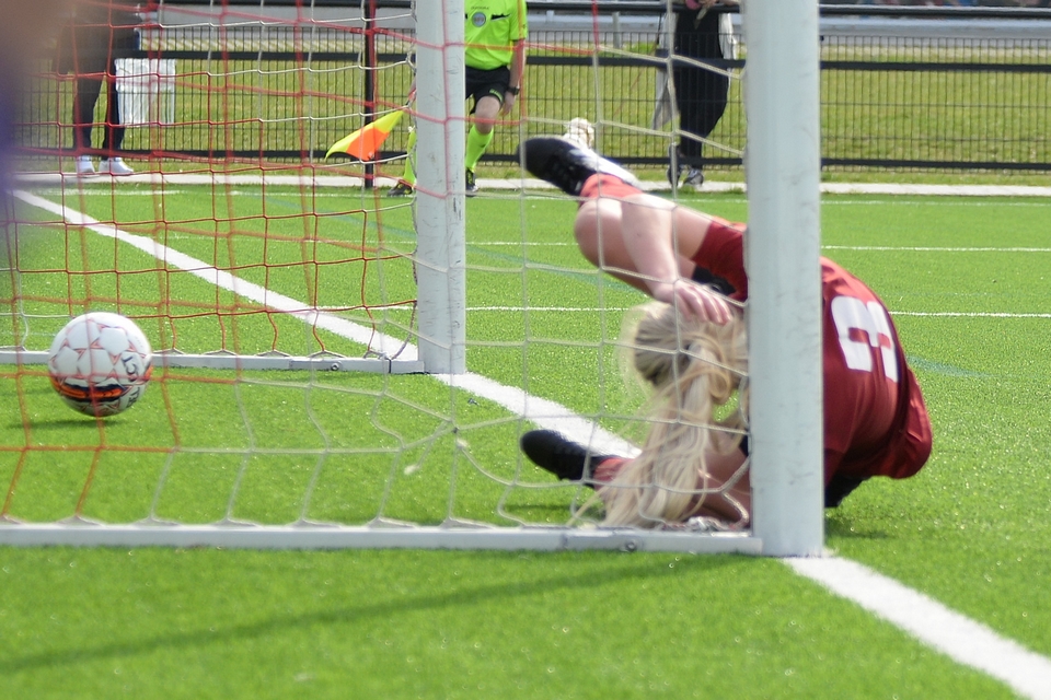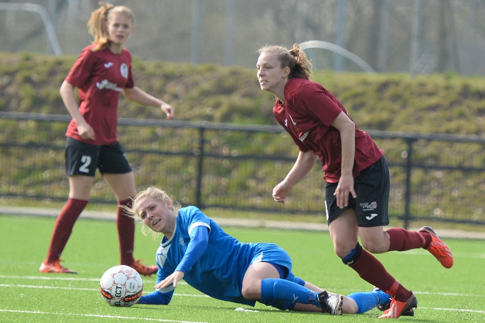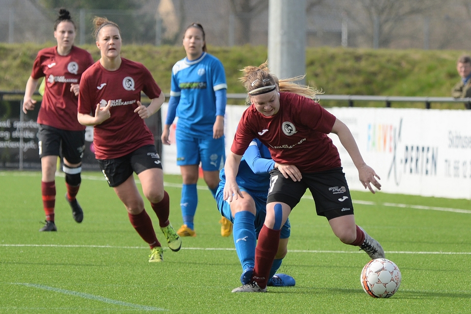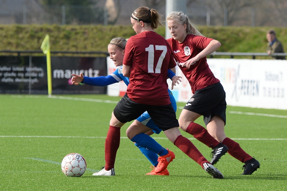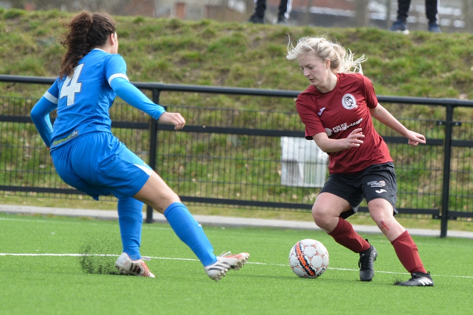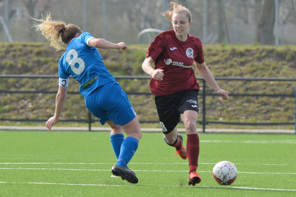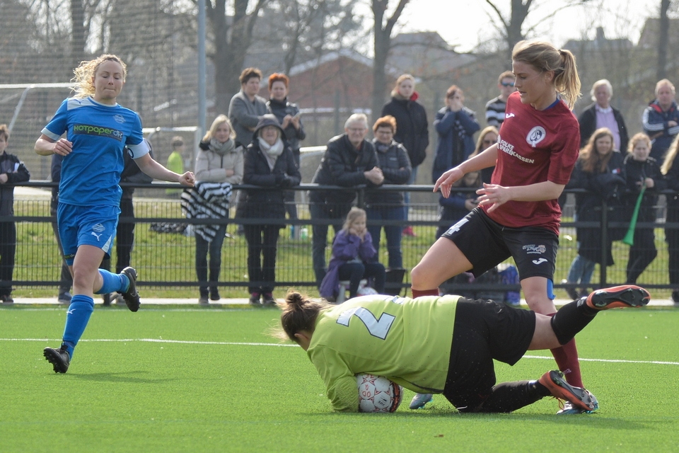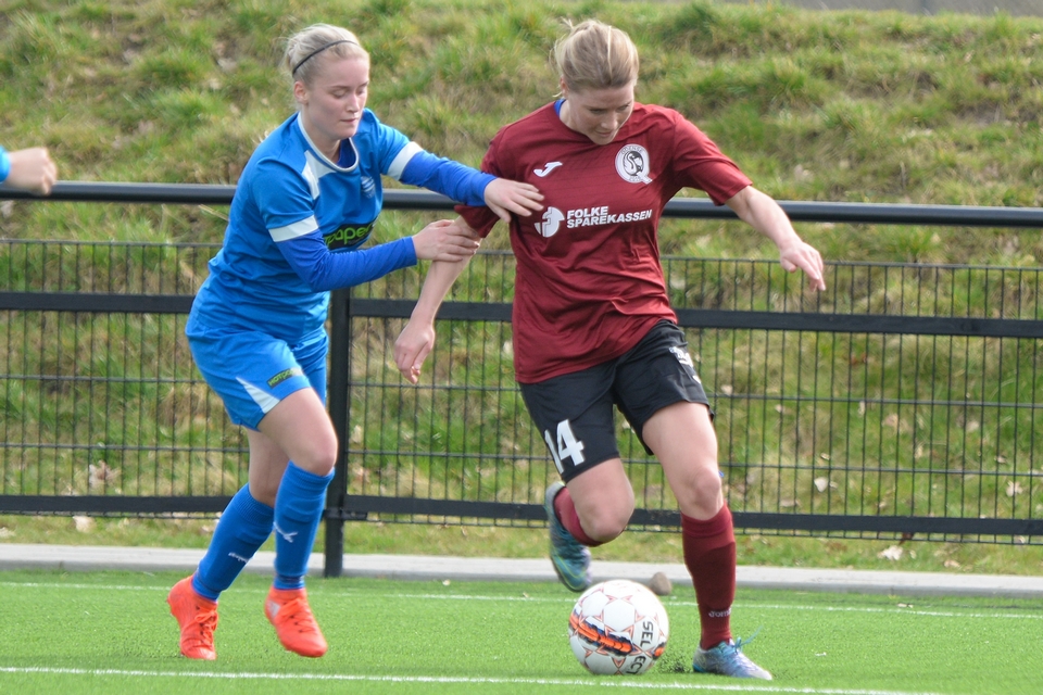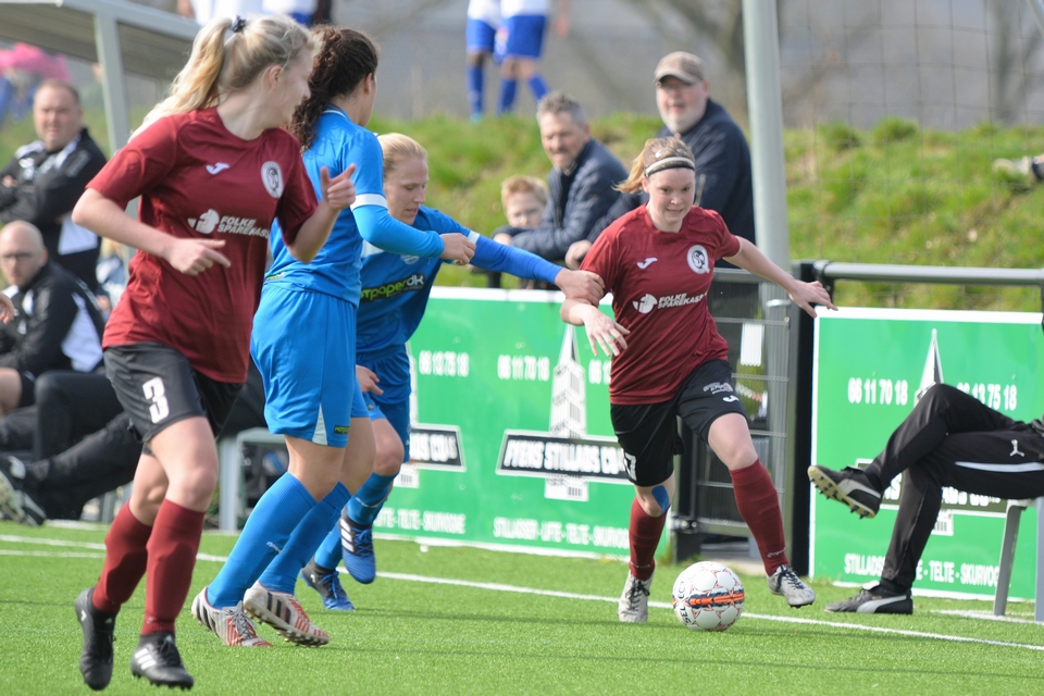 Værterne var hurtige til at svare igen, og lykkedes med at få rykket spillet længere frem på banen, og langt inde i første halvlegs overtid kom udligningen. Annika Hansen sendte en håbefuld ballonbold ind i feltet, og da gæsternes keeper stødte sammen med venner og fjender i sin jagt efter bolden, droppede den ned foran Cecilie Skov, som kastede sig ind i bolden og skabte balance i regnskabet.