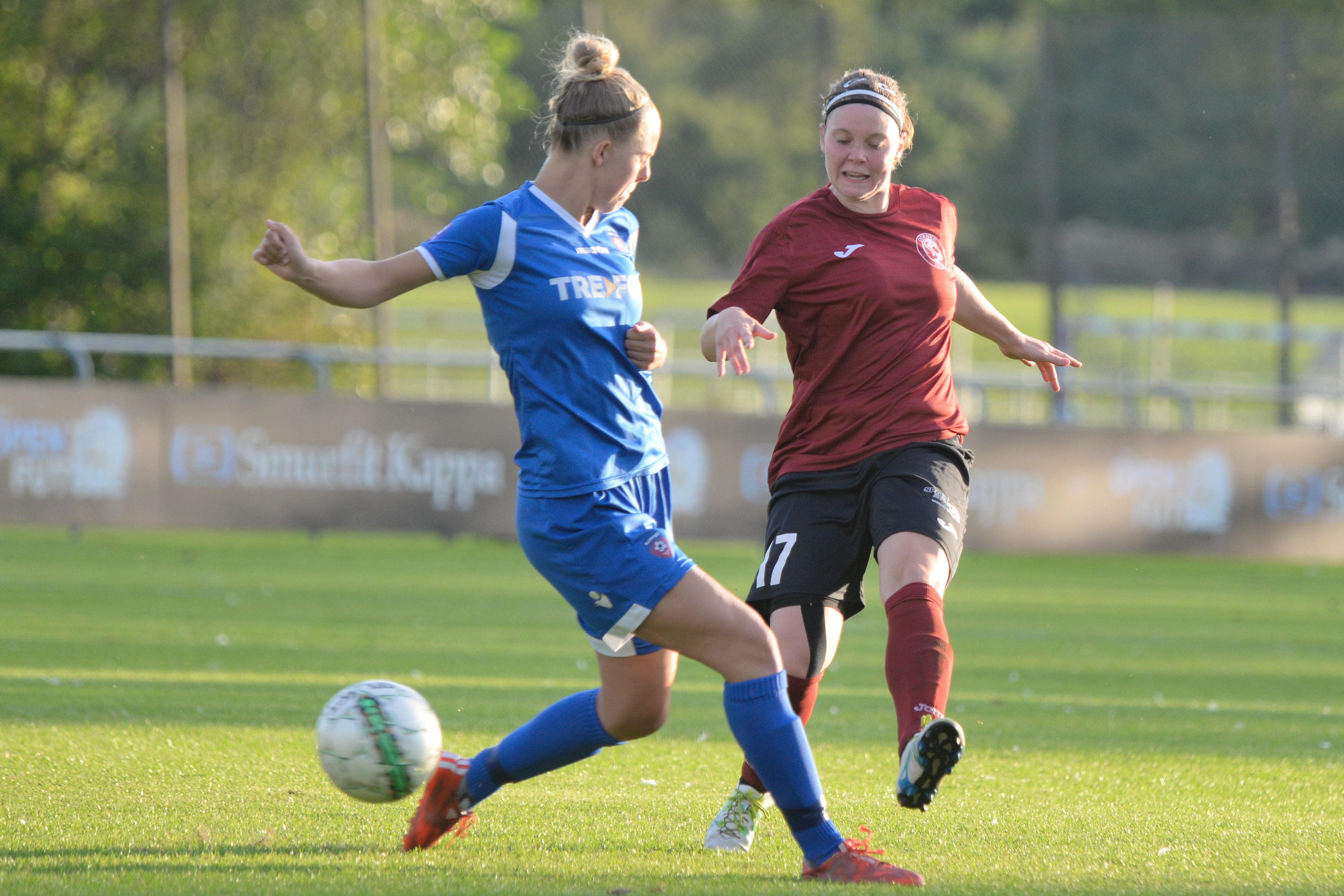 Syv minutter inde i anden halvleg faldt den længe ventede reducering, da Britta Olsen og Annika Hansen kombinerede sig flot igennem på midten af banen, inden førstnævnte bankede hjemmeholdet på tavlen med en kraftfuld og velplaceret afslutning.