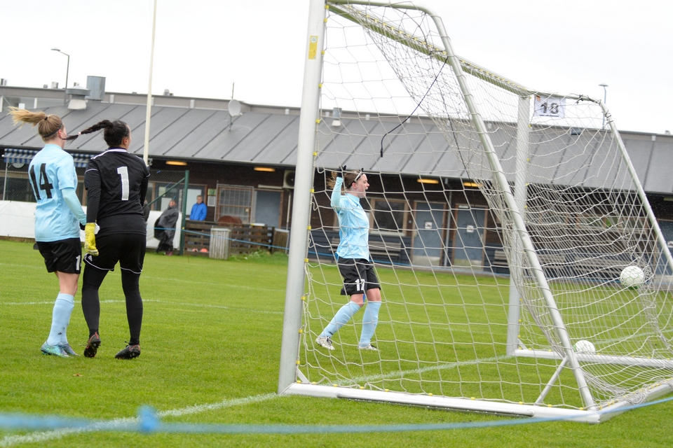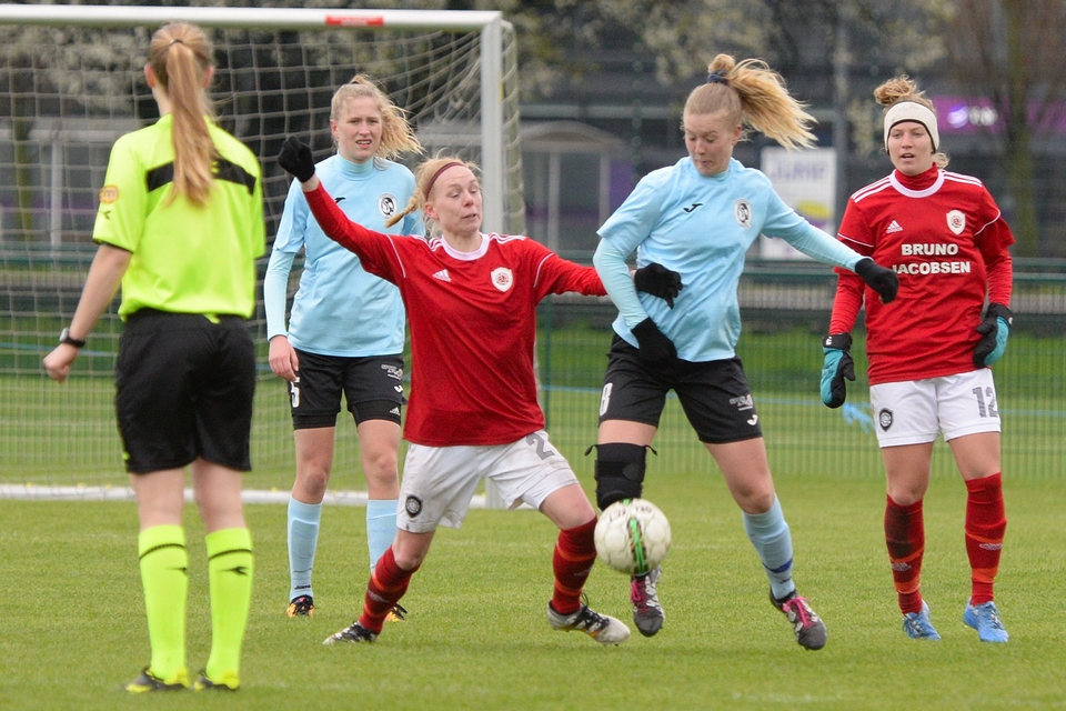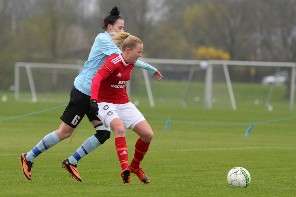Efter 27 minutters spil brød en angrebsivrig Maria Thomsen sin kæde og skabte en overtalssituation på gæsternes banehalvdel. Her endte Michele Hannibaldsen i duel med hjemmeholdets keeper og fik lige netop prikket den videre til angrebskollega Anna-Sofie Rosholm, som let kunne lægge bolden i det tomme mål og fordoble Odense Q-føringen.