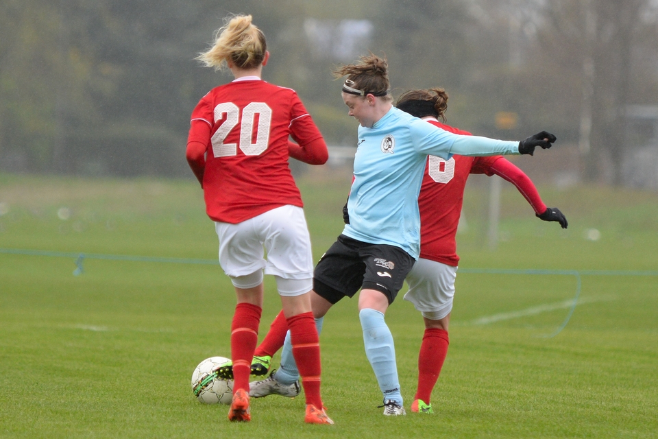 Herefter fulgte en begivenhedsløs periode, kun afbrudt af et længere spilophold efter 40 minutter, da gæsternes Annika Hansen måtte til behandling. Første halvlegs sidste højdepunkt stod Sundby for med et hårdt skud fra distancen, men afslutningen sad lige på Sarah Jacobsen.