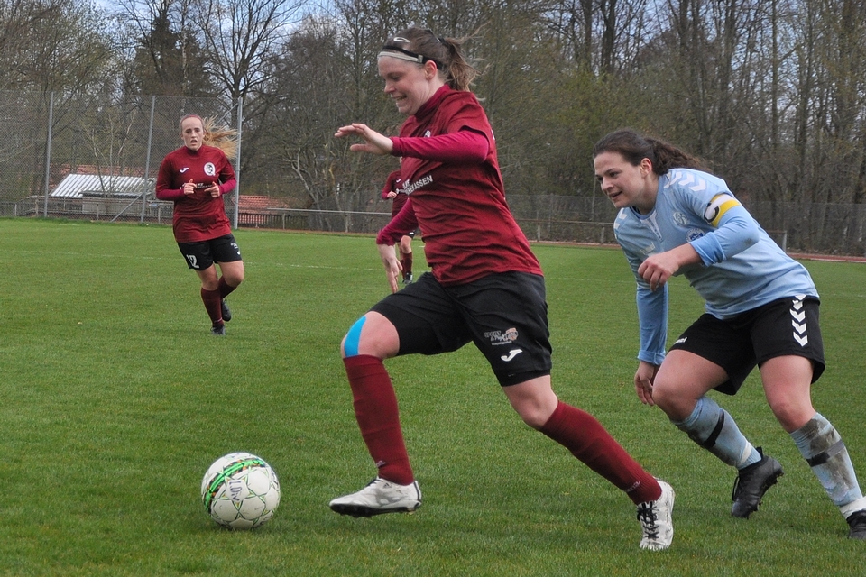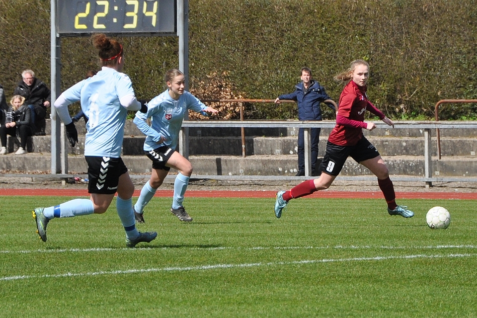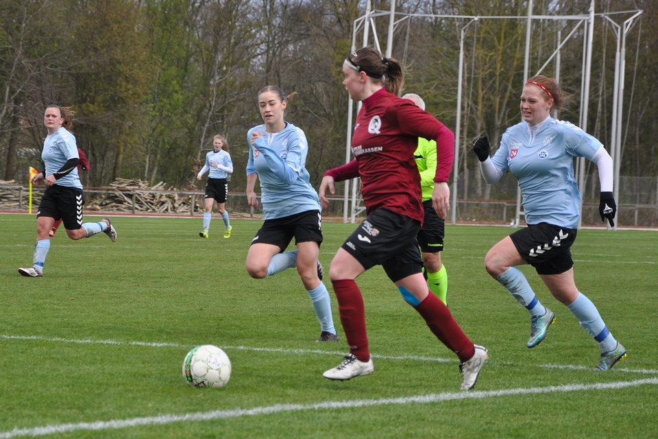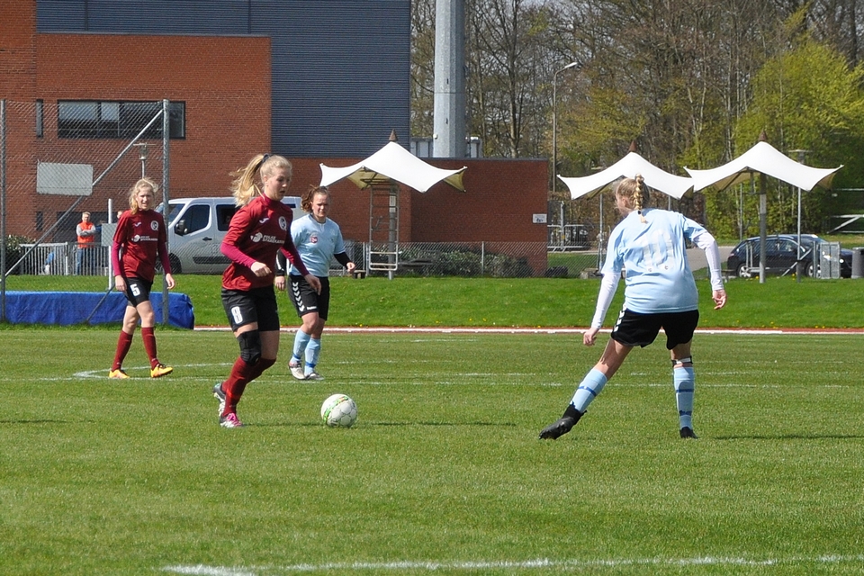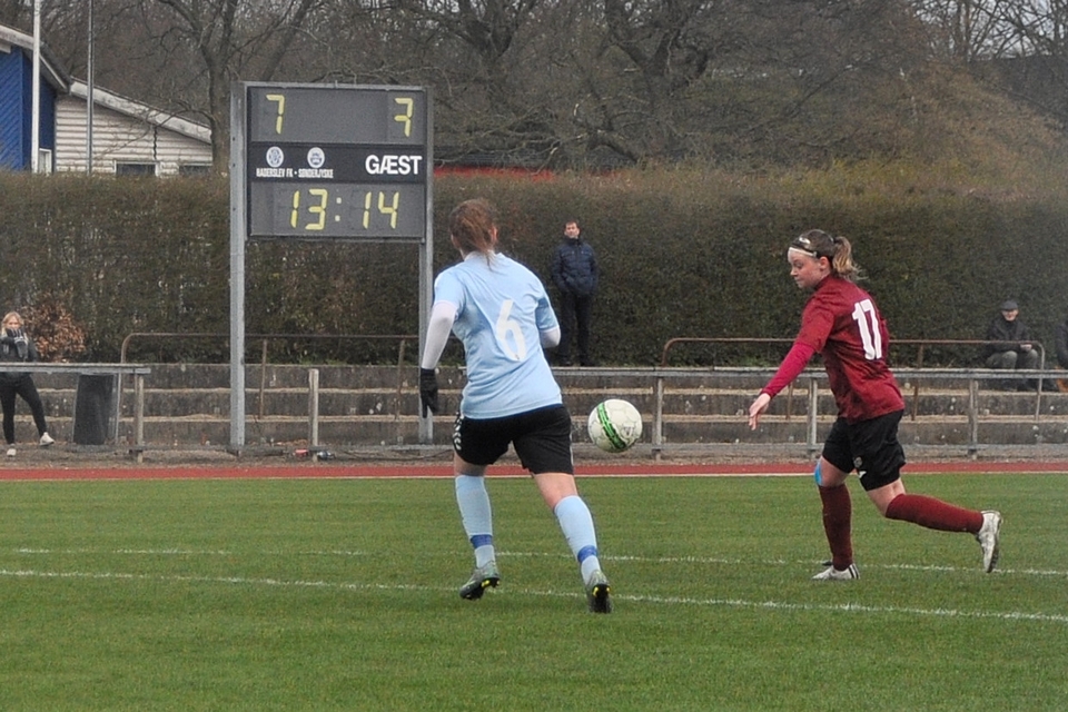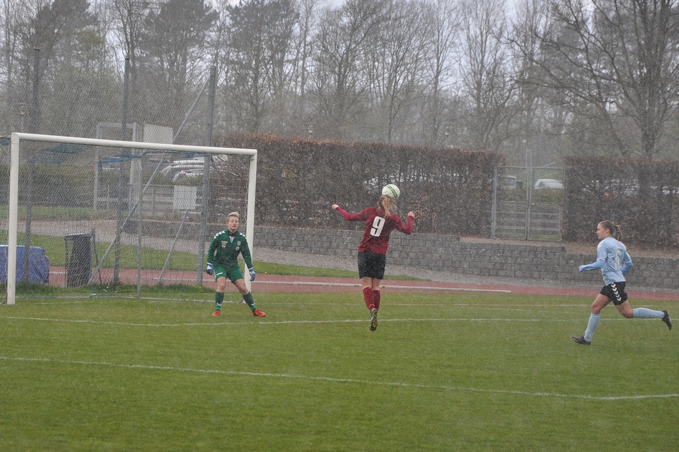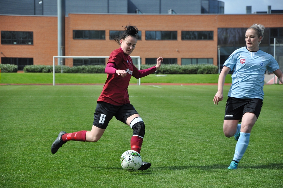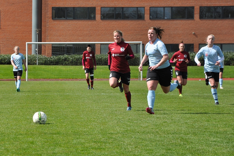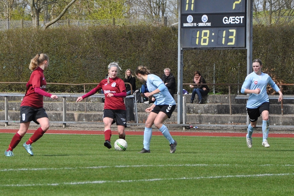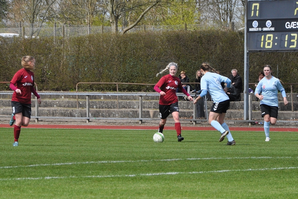 Der var store udsving i både spilfordeling og vejr, da Odense Q lørdag eftermiddag gæstede Haderslev Atletikstadion. Odense Q-cheftræner Jakob Pavar havde efterlyst mere tempo fra sine spillere forud for lørdagens opgør, og indledningen på første halvleg skuffede ham næppe. Efter blot to minutter sendte Line Munk en aflevering i dybden til Michele Hannibaldsen. Hun strøg til baglinjen og afleverede bolden på tværs til en fremadstormende Tenna Kappel, der fra klos hold kunne lægge bolden i netmaskerne til en tidlig fynsk føring.