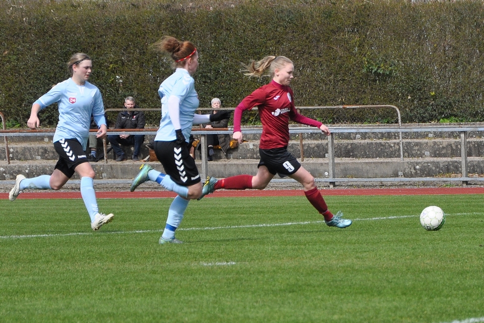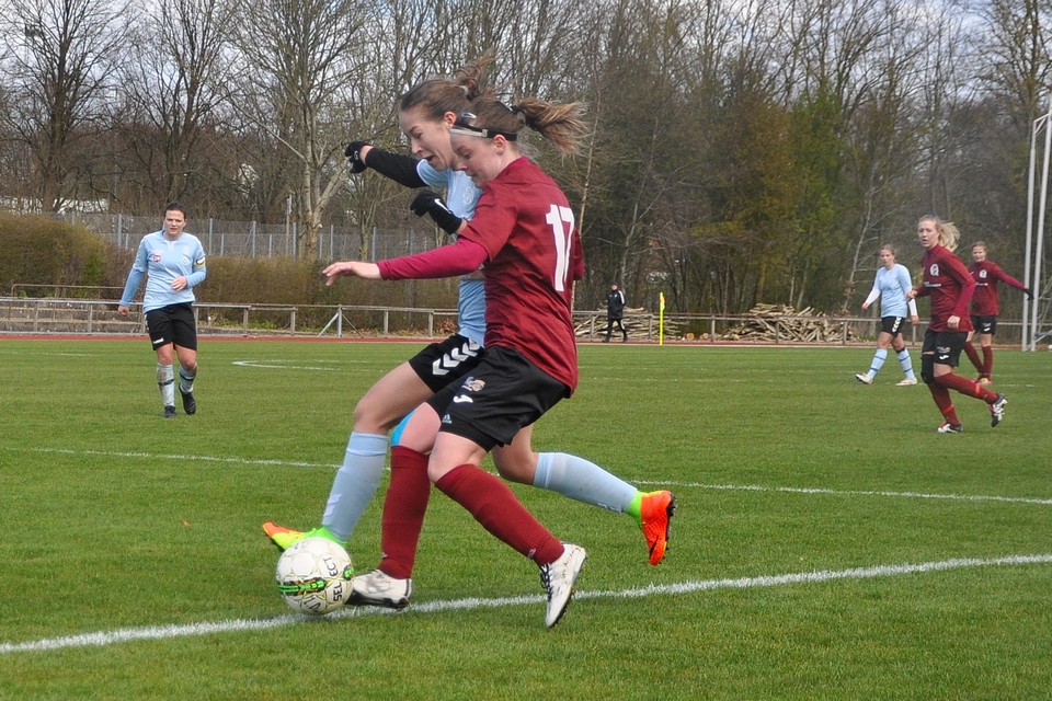 Gæsterne sad på bolden og udfordrede det sønderjyske bagrum takket være højt pres og dybdeløb fra de forreste folk. Efter 12 minutters spil bragede Line Munk et hjørnespark ind i hovedet på Mathilde Jessen i det lille felt, men hendes hovedstødsafslutning gik tæt over mål. Få minutter senere var Line Munk igen på spil i oplæggerens rolle. Med en præcis dybdeaflevering fandt hun Hannibaldsen, der trængte ind i feltet, inden hun sikkert sparkede gæsterne på 2-0.
