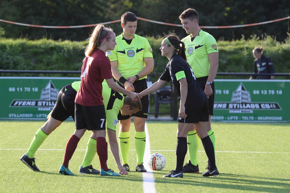 Hjemmeholdet har nydt stor udskiftning i truppen henover sommeren, og da man samtidig har haft en sen opstart og oplevet akutte ændringer i startprogrammet, var der masser af spørgsmålstegn i det odenseanske forud for premieren. Derfor kom det også som lidt af en overraskelse, da værterne tog føringen efter 15 minutters spil. Nyankomne Sille Struck var først over en løs bold i Fortuna-feltet, og hun gjorde det til 1-0 oven på en flot og intens start på kampen fra værterne.