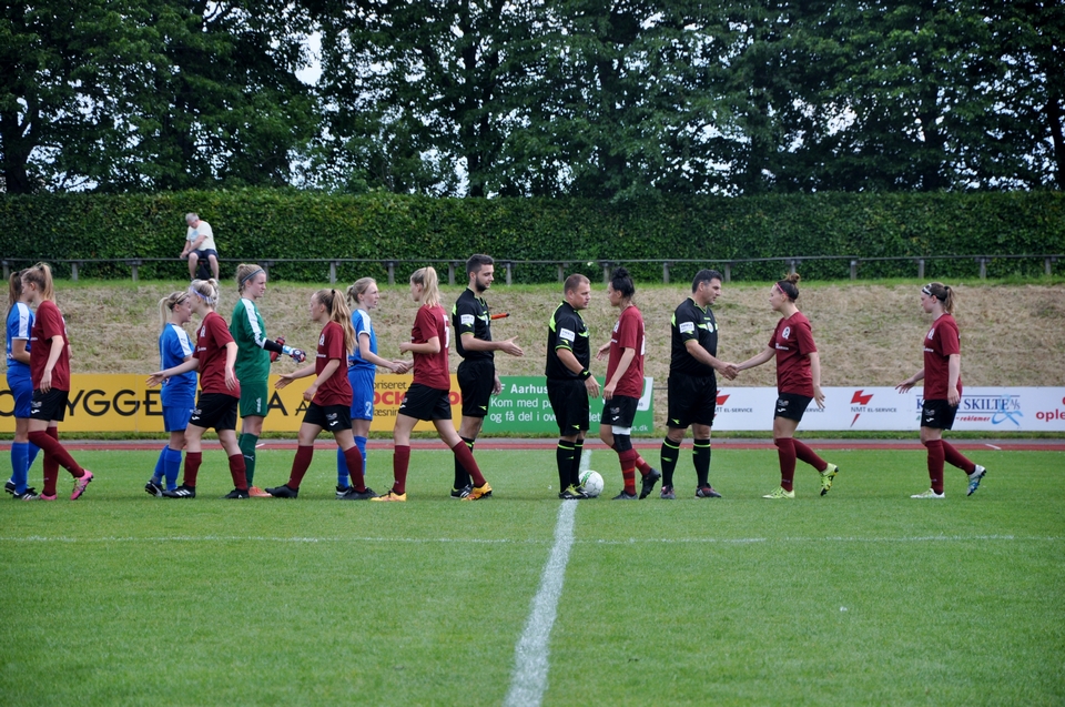Værterne kæmpede ihærdigt for at presse spillet længere frem, men den odenseanske defensiv syntes godt afstemt i store perioder af kampen. Det tidlige mål gav opgøret en ekstra gnist – særligt i duellerne - og det blev også til en enkelt advarsel til værternes Marie Bruun, da hun efter godt 16 minutters spil kom for sent ind i en nærkamp. Hjemmeholdets hårde fight gav udbytte minuttet efter, da man fremprovokerede et frispark på kanten af gæsternes straffesparksfelt. Det tog VSK Aarhus-topscorer Nina Skjøtt sig af, og hun bragede bolden op i det ene målhjørne – uden chance for Sarah Jacobsen i Odense Q-målet. En bitter pille at sluge for odenseanerne, der frem til udligningen havde haft et tungt spilovertag.