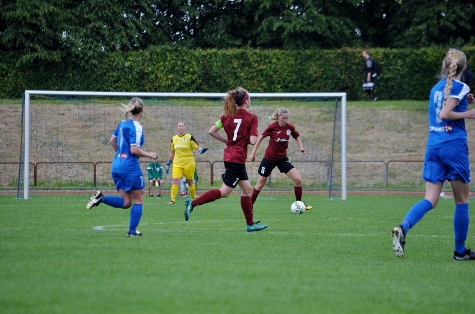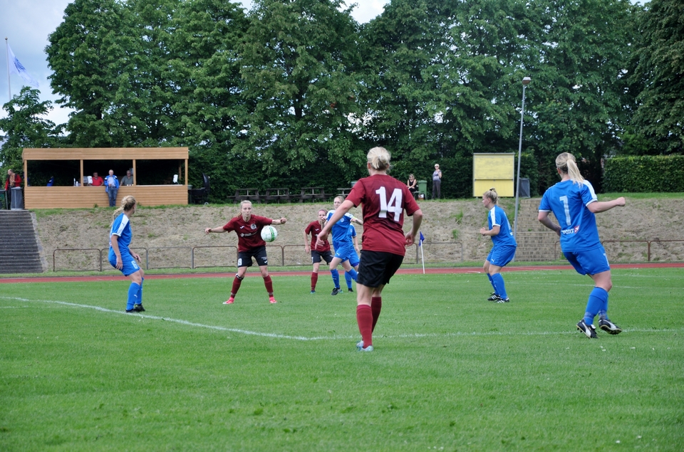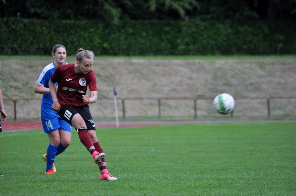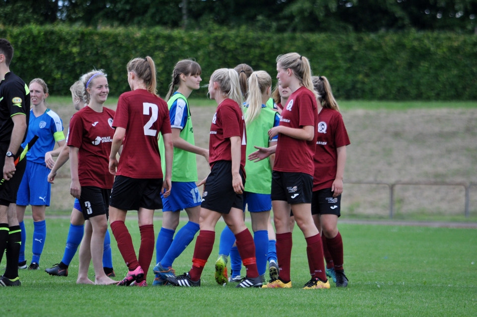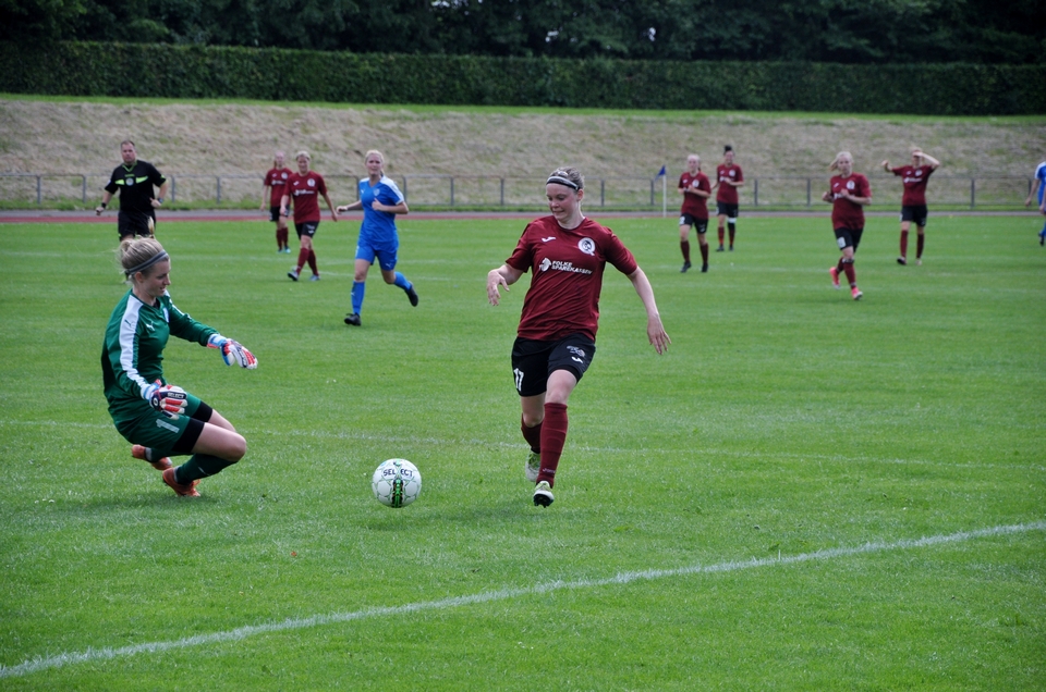 Hjemmeholdet kom til kampen med en positiv tilgang og var ikke bange for at udfordre med et højt pres. Satsningen efterlod dog også rum bagtil, og det udnyttede Tenna Kappel efter 36 minutters spil. Hun opfangede en dybdepasning fra Maria Thomsen, og med et lille vip over den fremstormende keeper bragte Odense Q-anføreren igen gæsterne i front.