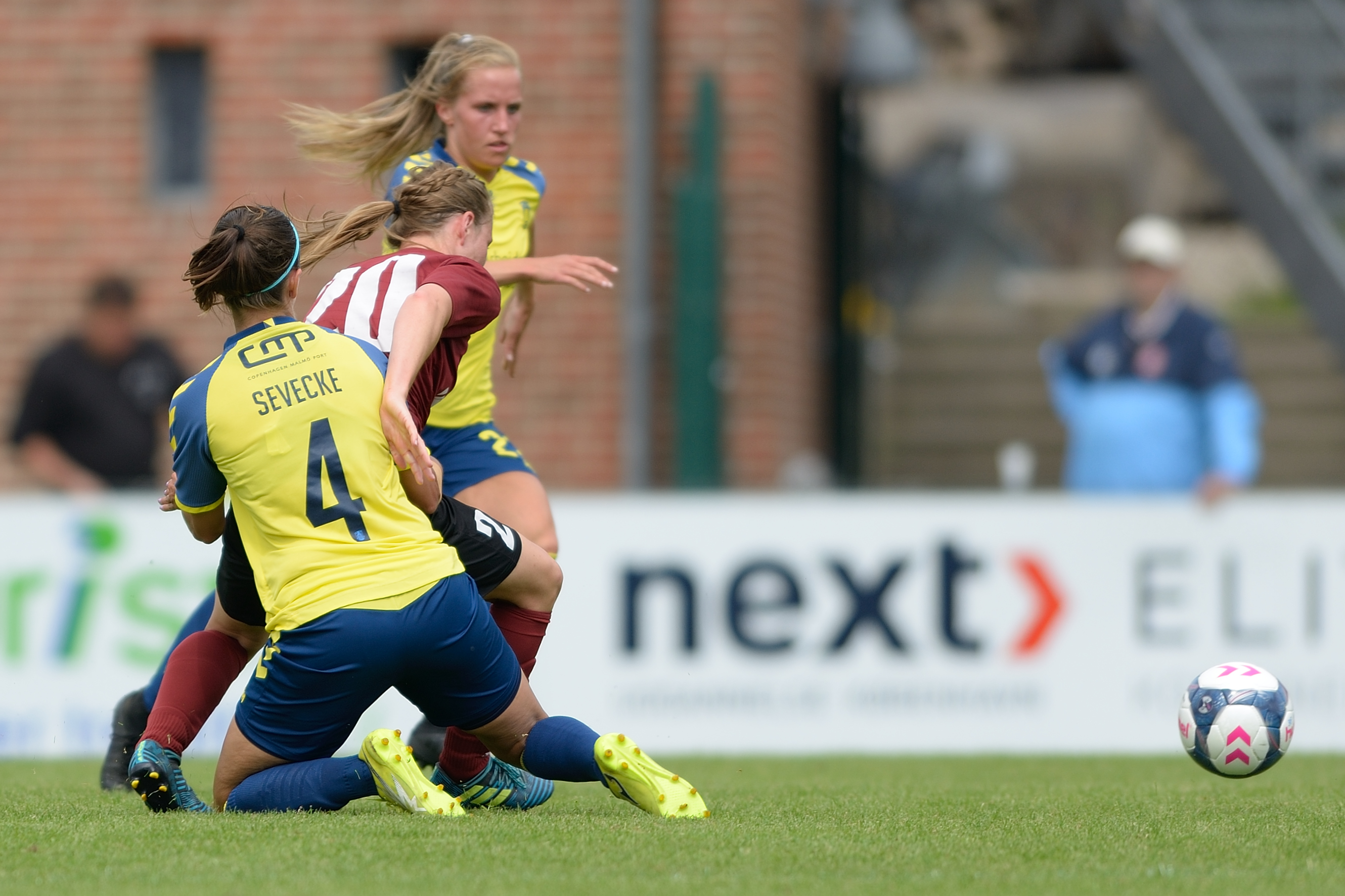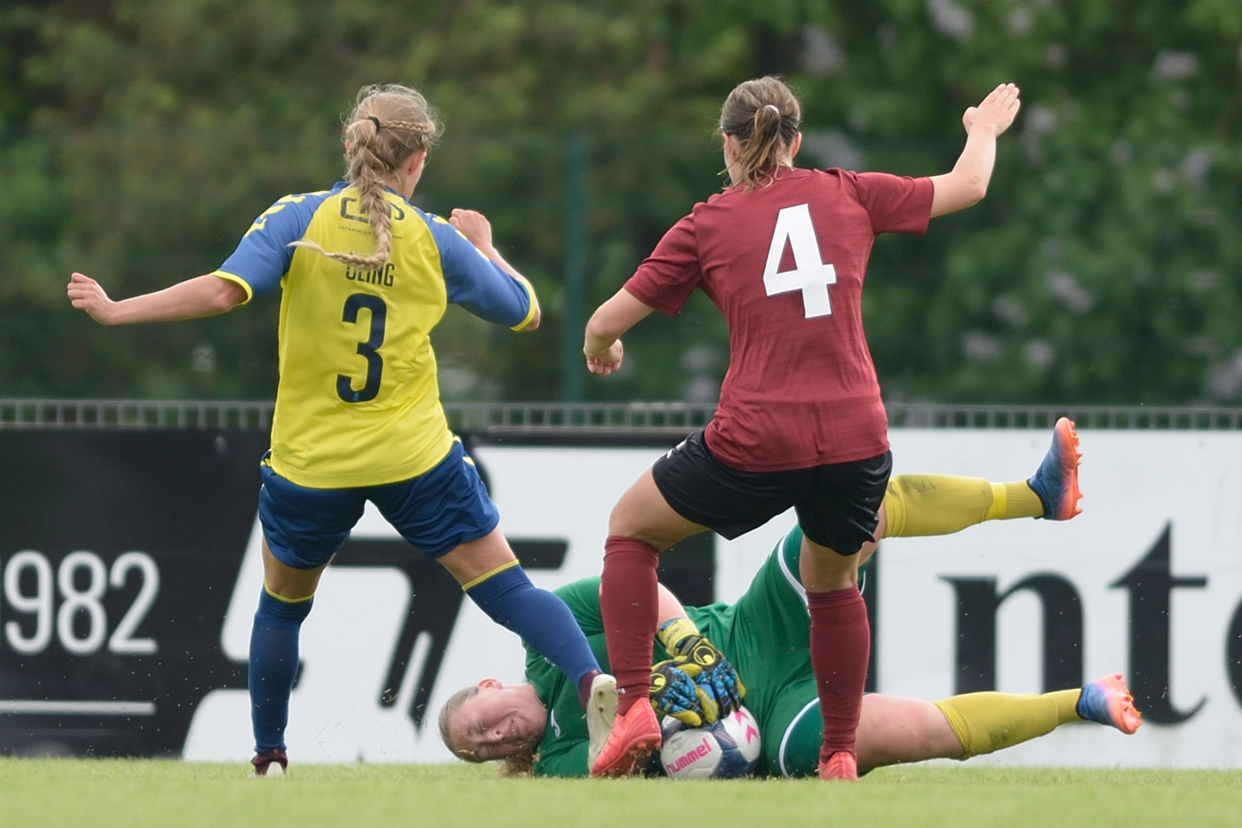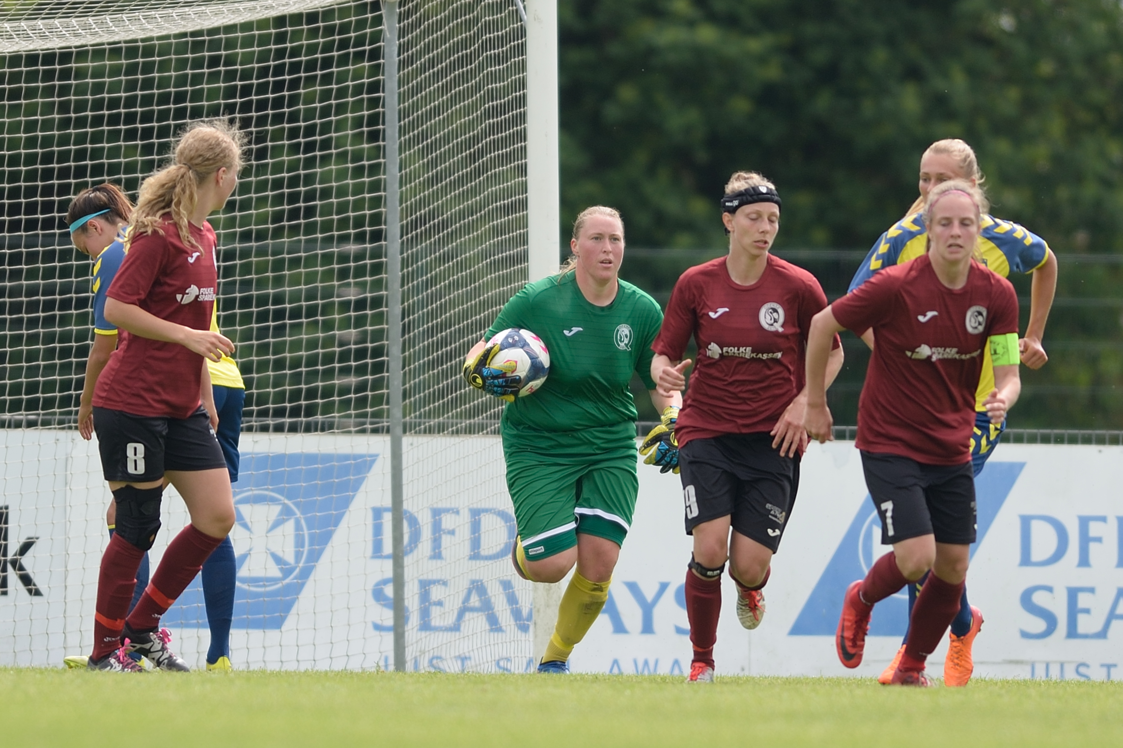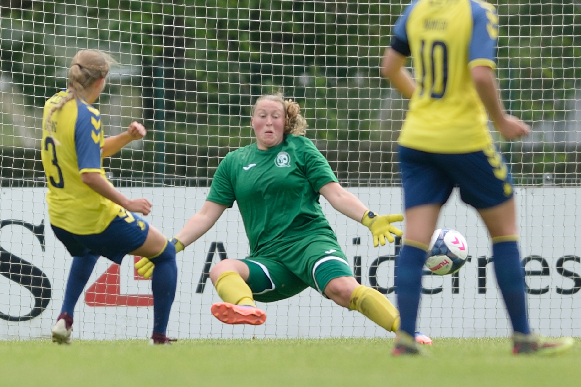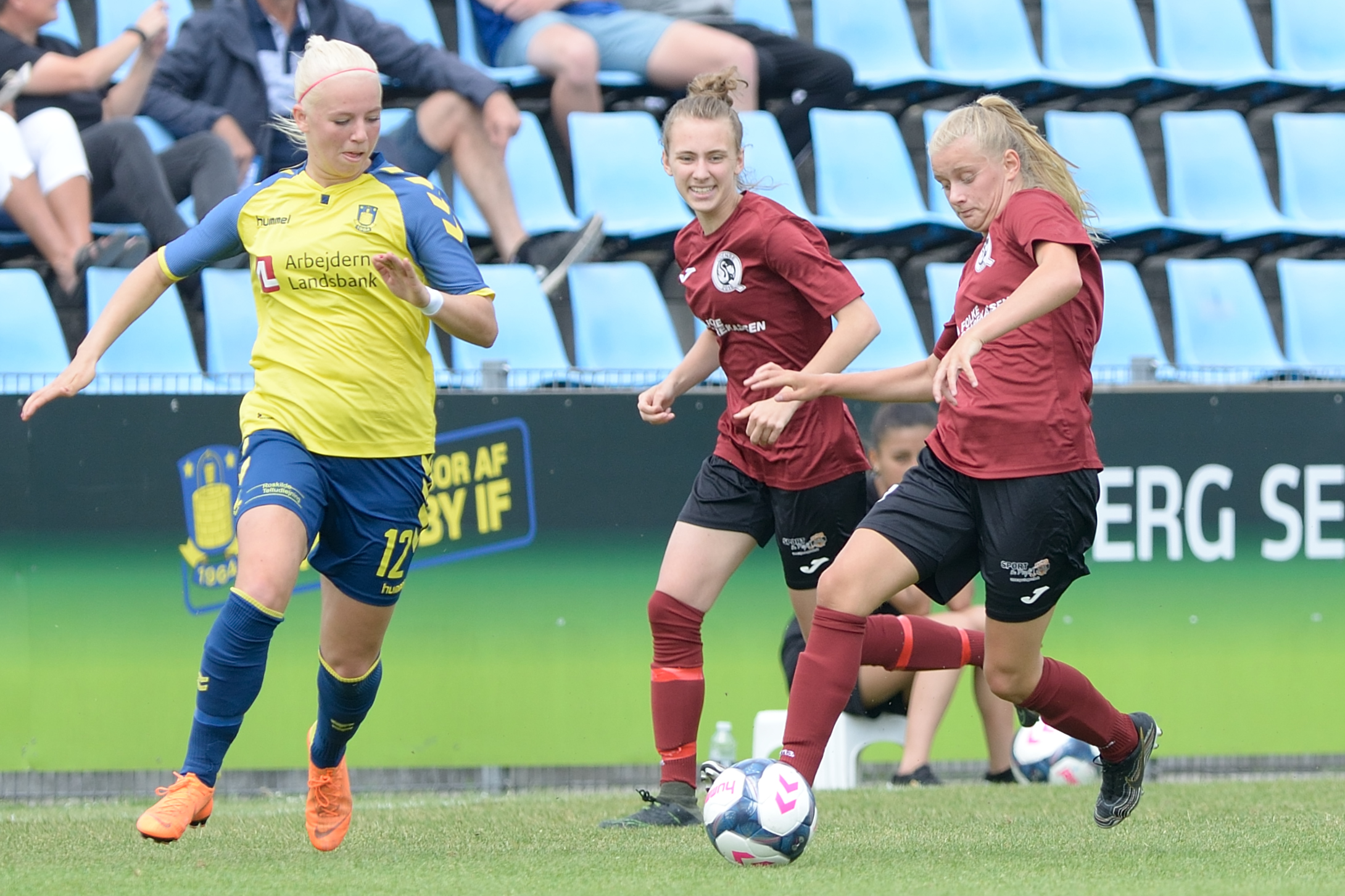 Odense Q kom bedre med efter 2-0 scoringen, men henimod første halvlegs slutning brændte det igen alvorligt på i gæsternes straffesparksfelt. Først bragte Julie Tavlo værterne på 3-0 i det 37. minut, og minuttet efter måtte Odense Q-back Helena Vigen uheldigvis lade sig notere for et selvmål, efter hun forsøgte at afværge en ellers sikker Brøndby-scoring på målstregen. 2 minutter inden pausefløjt satte Nanna Christiansen trumf på med sin tredje scoring i opgøret.