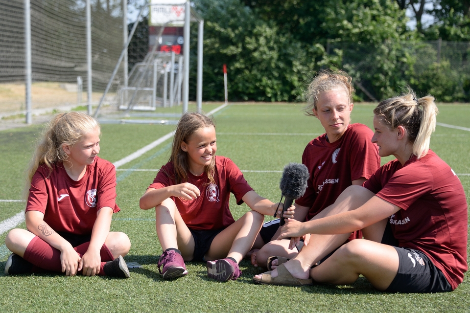 Efter sæsonens sidste hjemmekamp blev Britta Olsen og Michella Østergaard mødt af skarpe spørgsmål fra Odense Q-supporterne Maiken og Cicilie. I første del af interviewet sætter de unge reportere fokus på VSK Aarhus-kampen og den gode opbakning på lægterne.