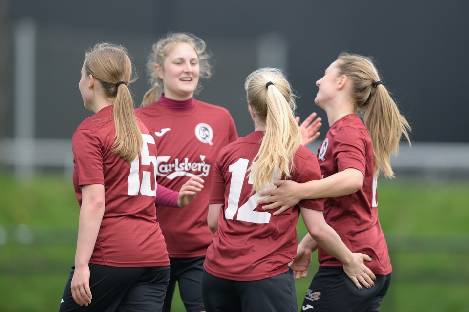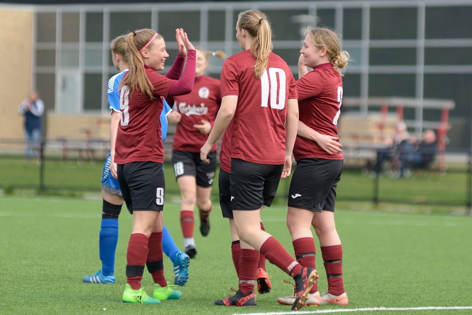 Nyankomne Pernille Andersen åbnede scoringen med sit første mål i Odense Q-trøjen, og Signe Madsen fulgte op med et vaskeægte hattrick i en seværdig 1. halvleg.