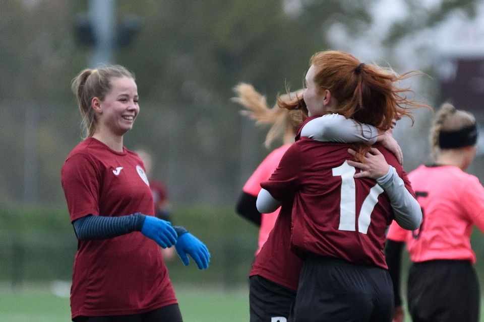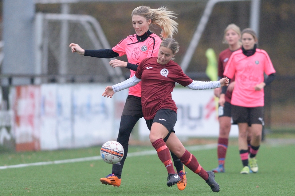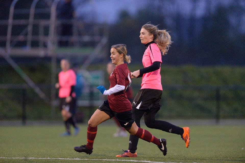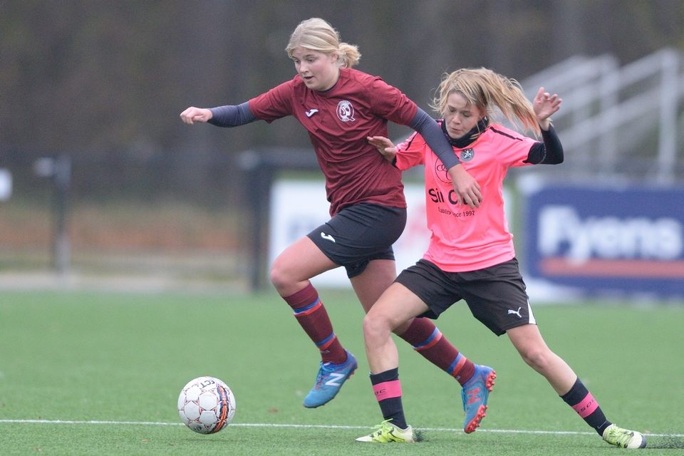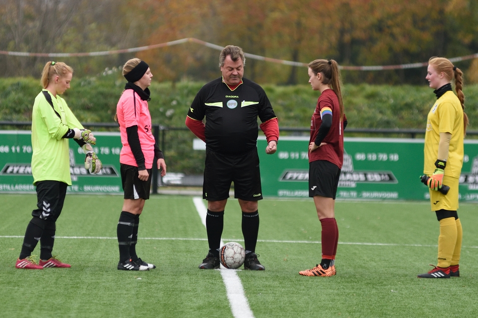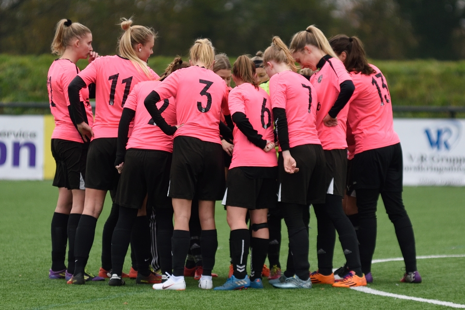 Efter kampen fejrede spillere og trænere det flotte efterår på behørig vis. Spillerne havde selv sat trumf på med guldparykker og T-shirts, der markerede den stilsikre oprykning til Kvindeserien. I den forbindelse skal der lyde en kæmpestor tak til Revisorgården Odense, som hjalp pigerne med at få lavet de flotte T-shirts. Se alle billederne fra kampen og den efterfølgende fejring i galleriet længere nede på siden.