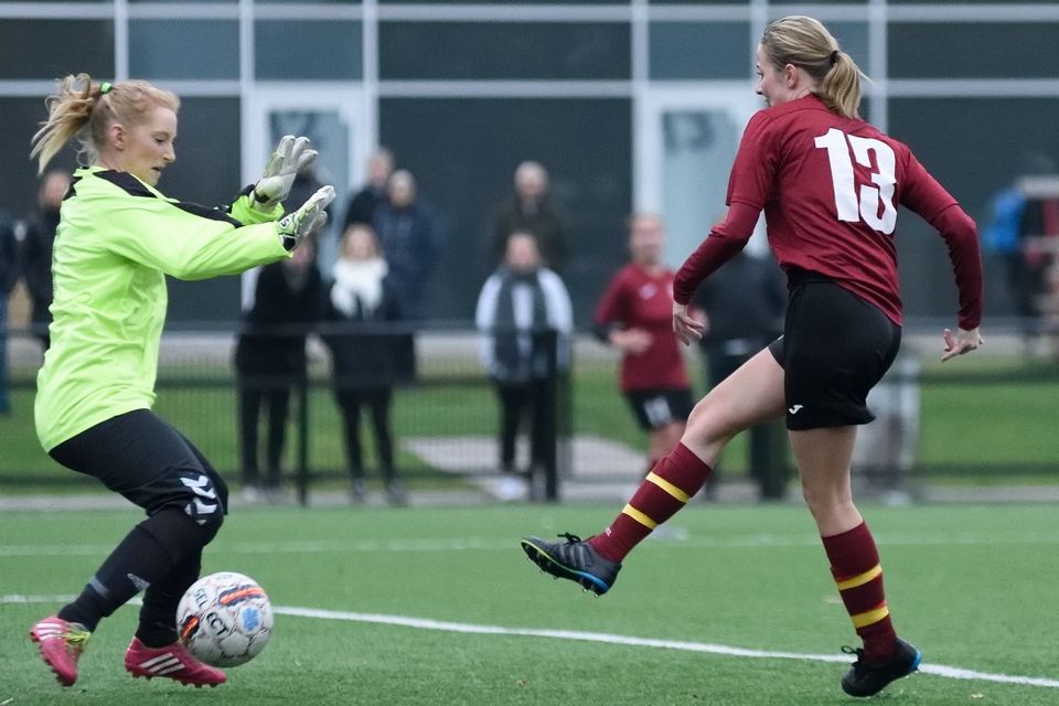 Flere scoringer fik vi ikke i de første 45 minutter, der ellers bød på flere gode tilbud i begge ender samt en mindeværdig refleksredning af Odense Q-keeper Katrine Jalris.