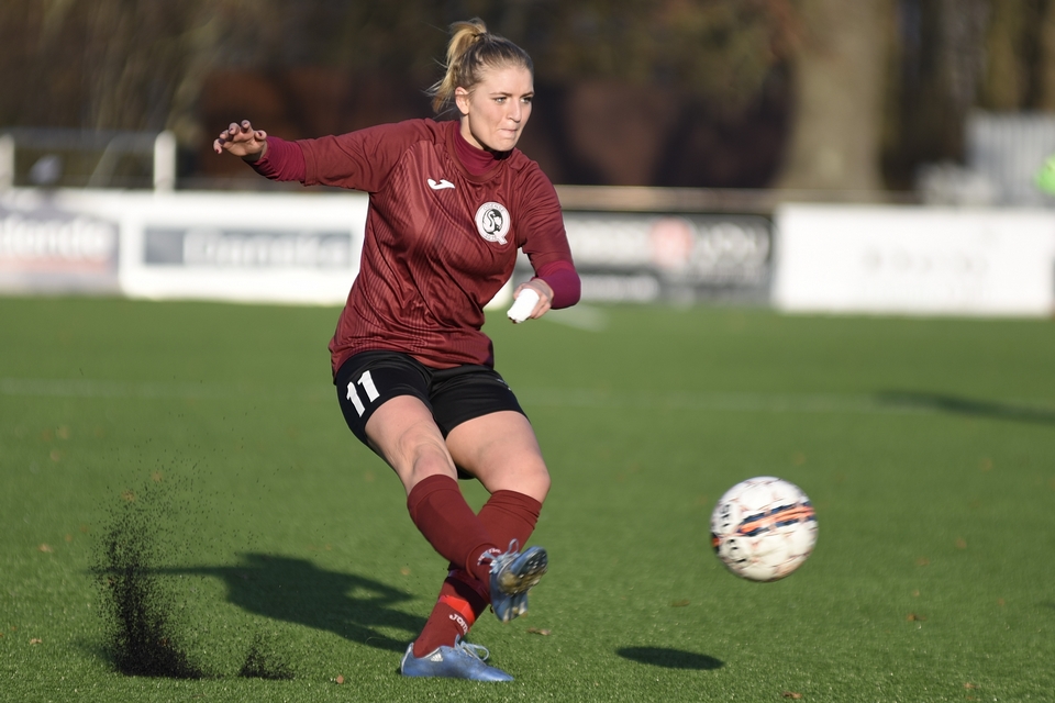 Efter blot 2 minutter var Odense Q-angriberen igen i fokus, da hun tilkæmpede sig et straffespark. Kamilla sparkede selv fra 11-meterpletten, men måtte se forsøget blive pareret til hjørnespark af Maja Østergaard i gæsternes mål. Månedens Spiller var dog hurtig til at gøre skaden god igen, da hun headede Odense Q-tropperne i front på det efterfølgende hjørnespark fra Laura Petersen.
