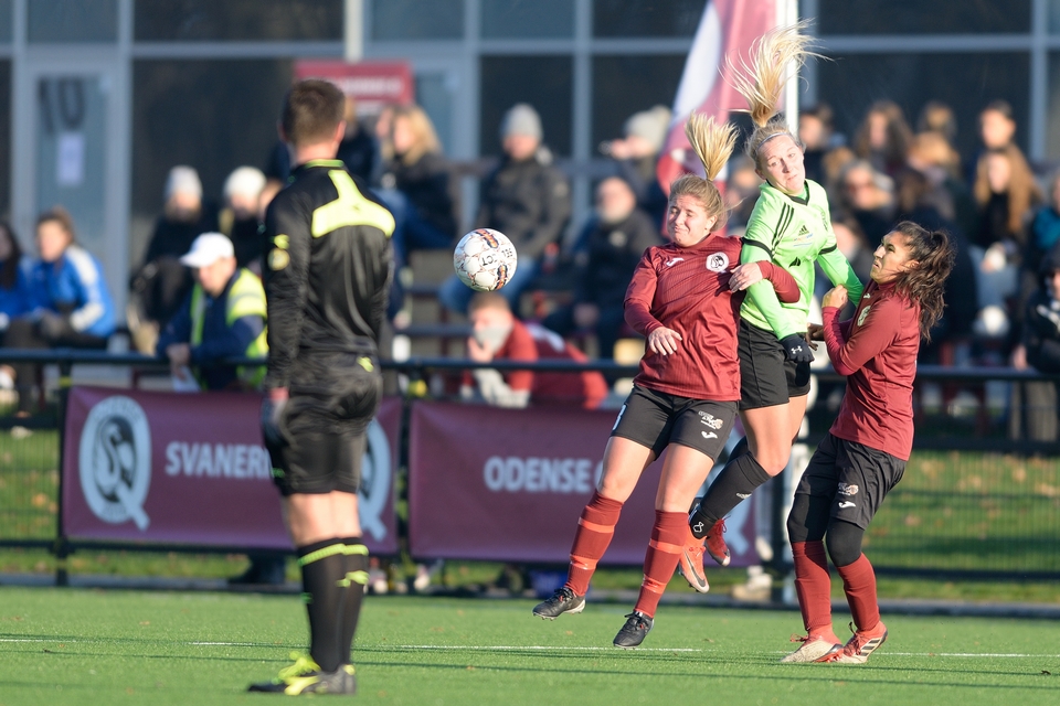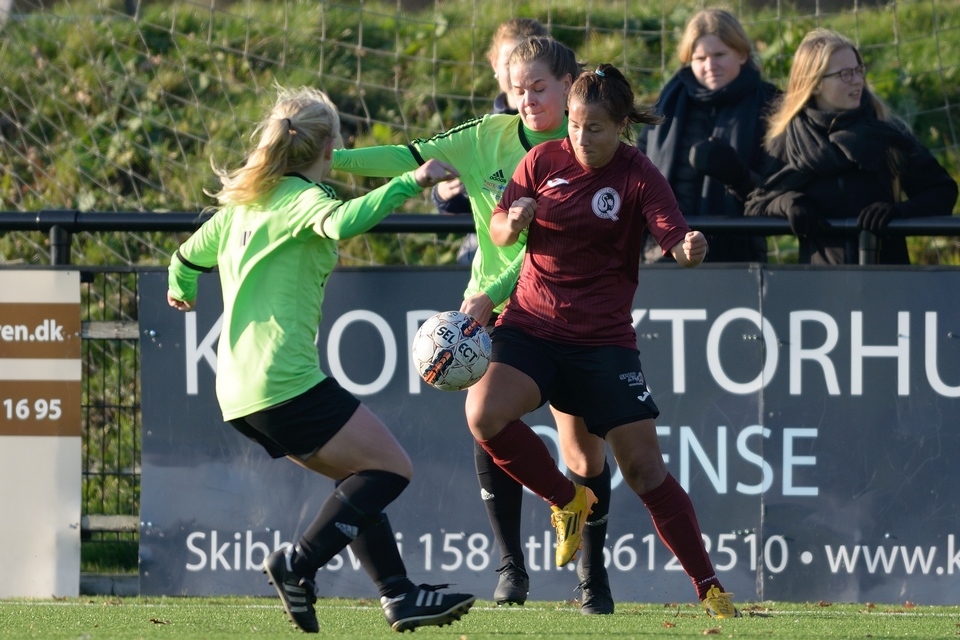 Gæsterne jagtede udligningen i kampens slutfase, og det skabte store rum i den anden ende. Kamilla Ø. Jensen fandt plads i dybden, og alene med keeperen lagde hun uselvisk bolden skråt tilbage til Sofie Søderholm, der kunne sætte indersiden på og fejre sin første scoring i Odense Q- og 3F Liga-regi.