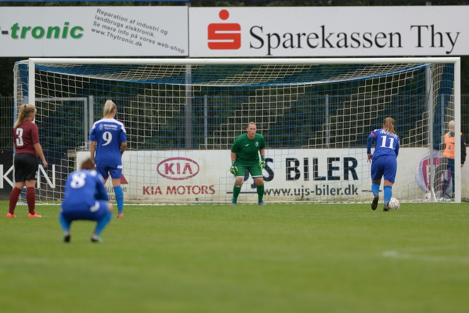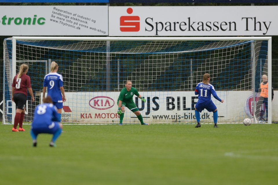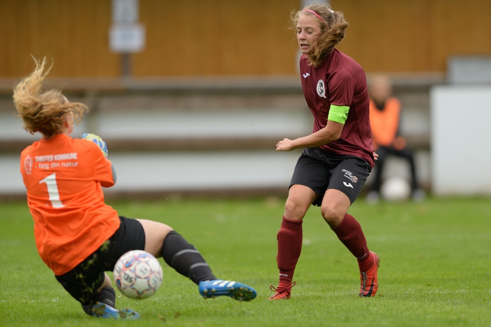 Største Odense Q-tilbud i den afsluttende fase faldt i det sidste overtidsminut. Anna Østerbye var først på en frisparksripost, men hjemmeholdets keeper kom hurtigt ned og fik pareret Odense Q-angriberens afslutning. Således endte det 3-2 til FC Thy – ThistedQ i en kamp, der ikke skuffede på underholdning og dramatik. Se billeder fra lørdagens kamp i galleriet herunder.