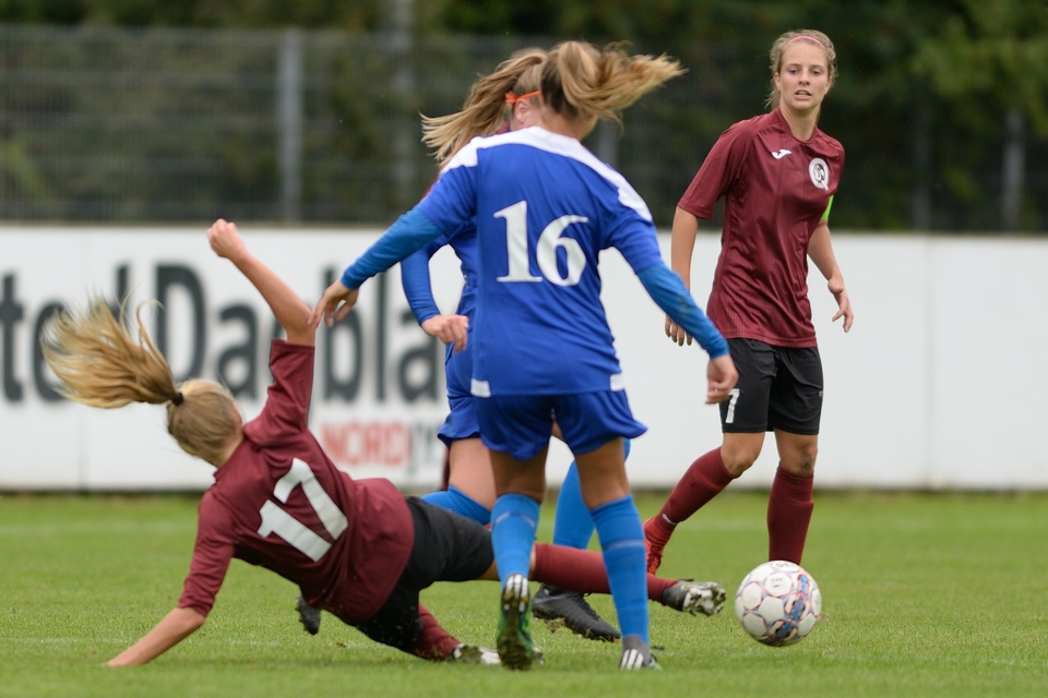 Det startede godt for Odense Q’erne. Efter 11 minutters spil sled anfører Tenna Kappel sig fri i feltet, og fra en spids vinkel bragte hun gæsterne i front. Blot 5 minutter senere svarede værterne igen. En dybdeaflevering fandt Lotte Bak, og med en følt indersideafslutning fra kanten af feltet scorede hun det udlignende mål, som samtidig var FC Thy – Thisted Q’s første mål i 3F Ligaen nogensinde.