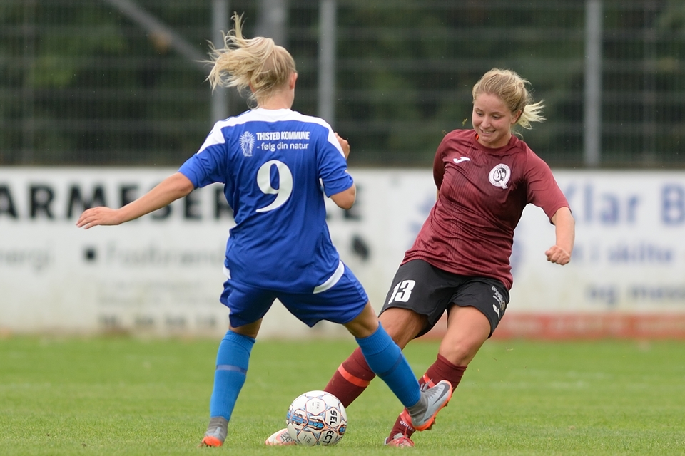 FC Thy – ThistedQ kom bedst ud fra pausen, og i første kvarter af 2. halvleg havde værterne flere store tilbud. Odense Q kom dog efter det, og i det 72. minut var 3F Liga-debutant Fie Steenberg meget tæt på at score efter en flot frispilning af Anna Østerbye. Minuttet efter var den så gal i den anden ende, da værterne fremtvang et straffespark, som Matilde Kjeldgaard eksekverede på sikker vis – 3-1 til hjemmeholdet.