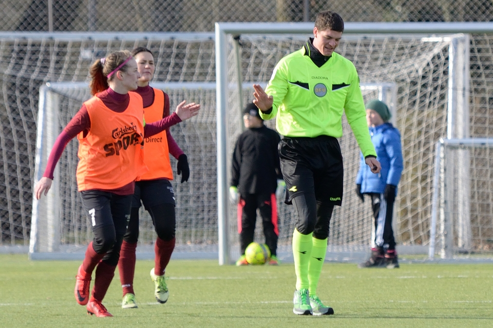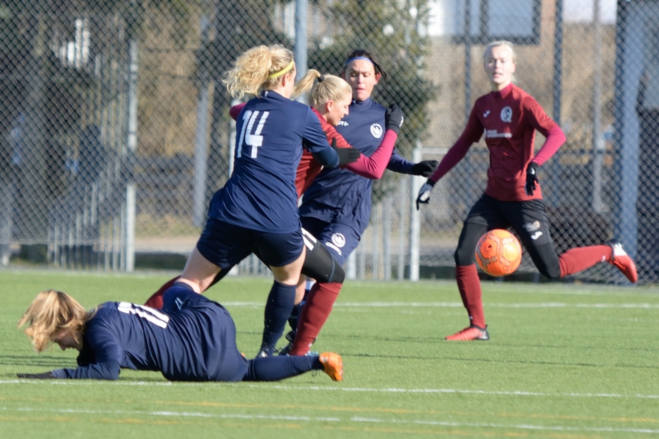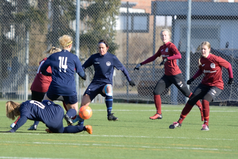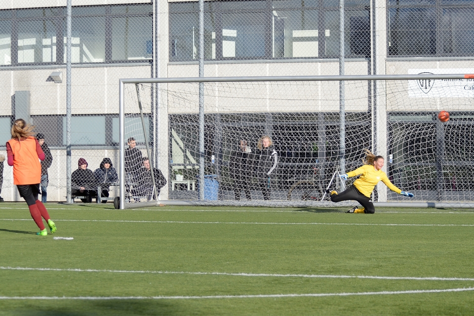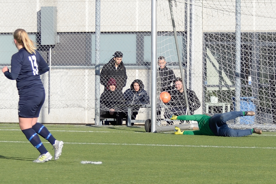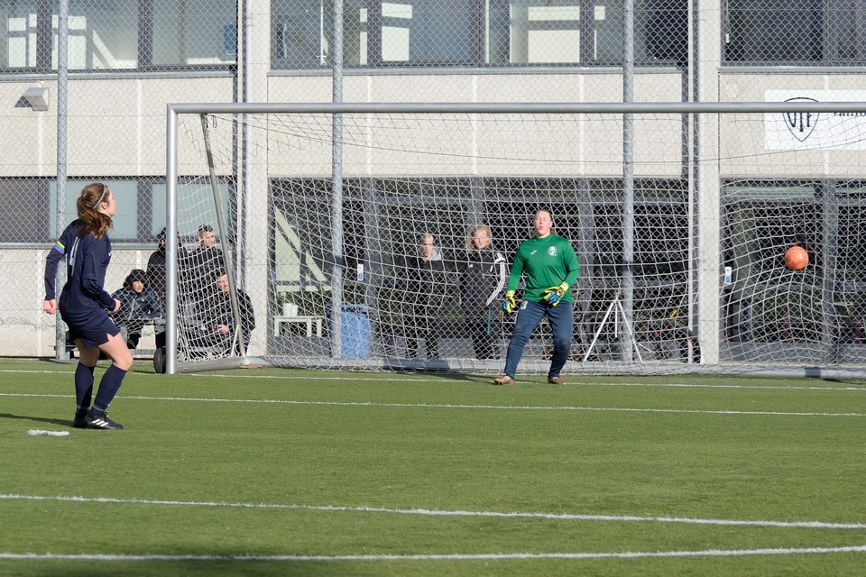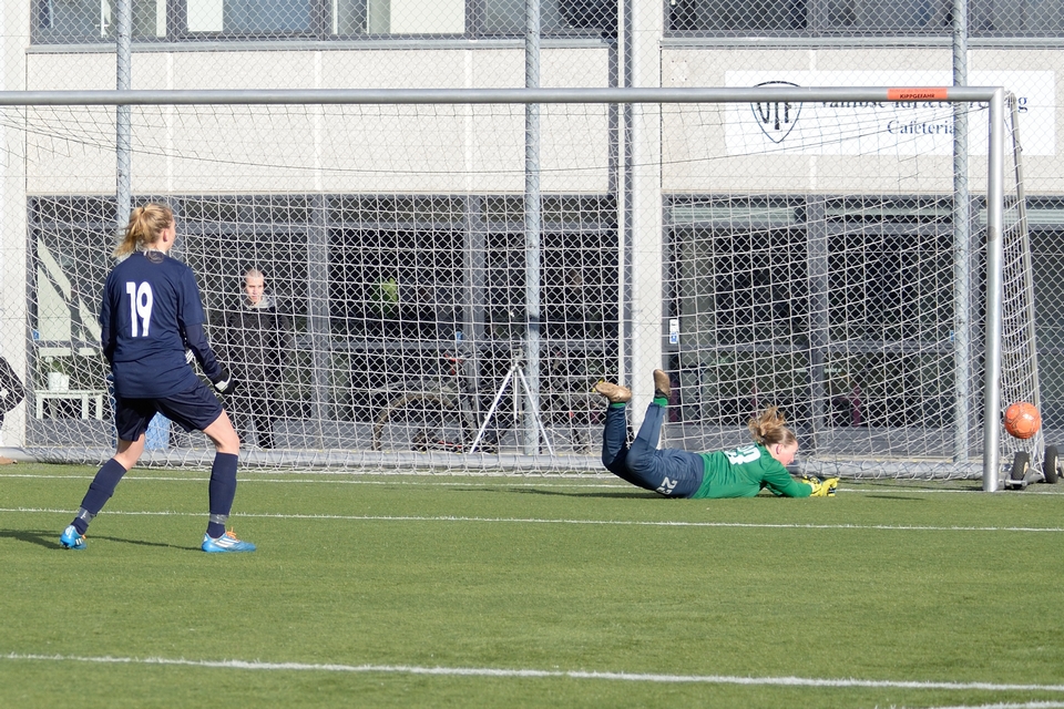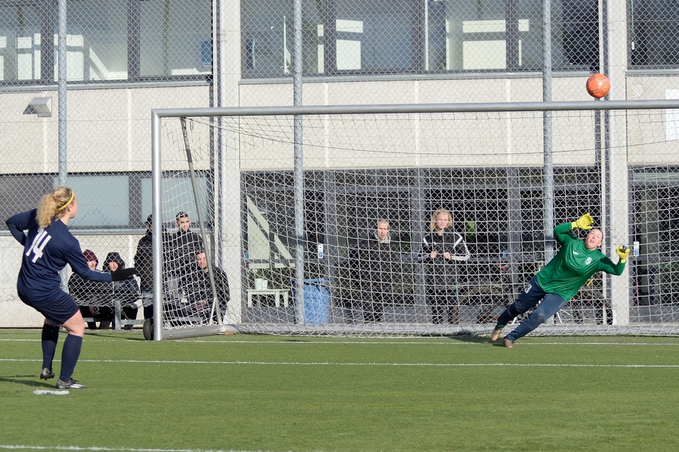 Line Munk scorede sikkert på Odense Q’s første forsøg, som værterne dog hurtigt fik udlignet. Anden Odense-sparker var Mathilde Jessen, og hun måtte se sit ellers kvalificerede forsøg blive pareret af en velspillende FC Damsø-keeper. Heldigvis for gæsterne reddede keeper Sarah Jacobsen værternes næste spark. Michelle Sundahl og Britta Olsen scorede på hhv. tredje og fjerde forsøg blot for at se FC Damsøs to sparkere gøre det samme.