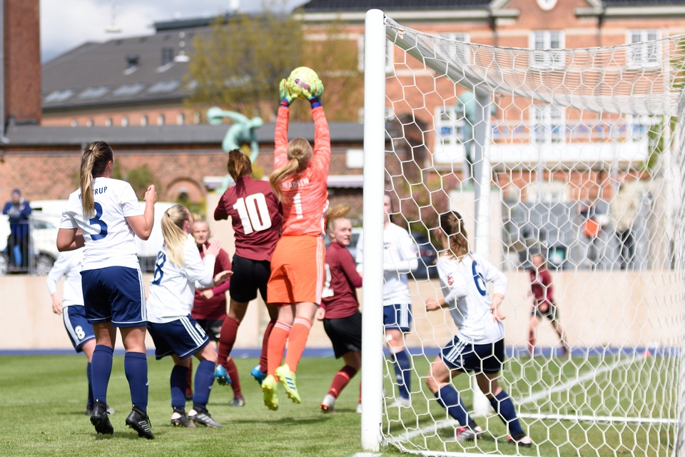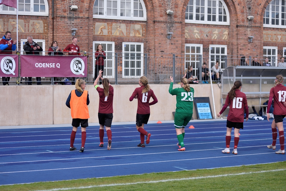 Odense Q-tropperne var bedst i kampens indledende fase, som bød på kvalificerede skudforsøg fra Malaika Din Hashmi og Fie Steenberg. Værterne kom bedre med og svarede igen midtvejs i første halvleg – først med en god mulighed til Michaela Schnack og senere et langskudsforsøg fra hollandske Paola Van der Veen.