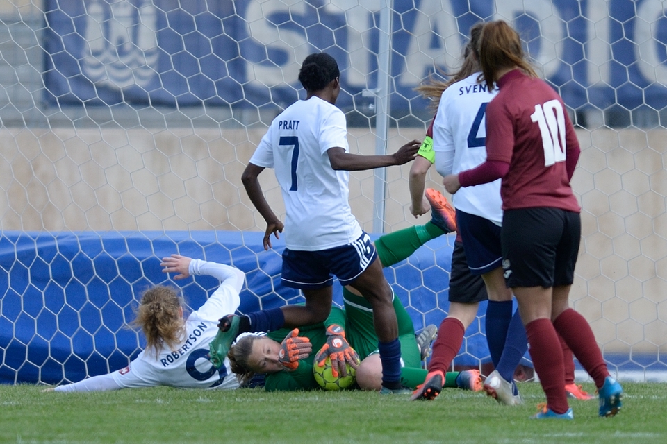 Umiddelbart efter var hjemmeholdets Nicole Robertson tæt på at få reduceret på et flot sologennembrud, men amerikanerens afslutning gik snært forbi mål.