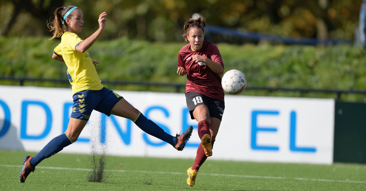 22-årige Kamilla Ø. Jensen scorede sit første hjemmebanemål i Odense Q-trøjen, da Brøndby var på besøg i efterårets grundspil.