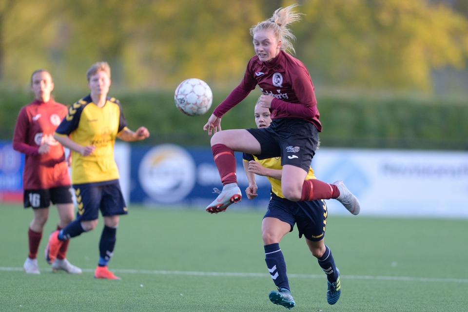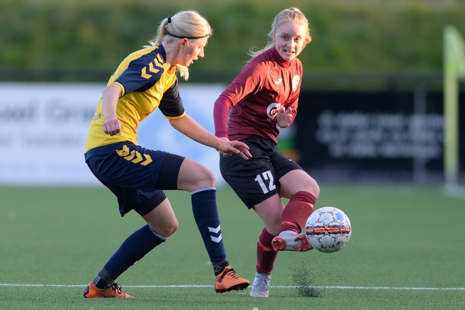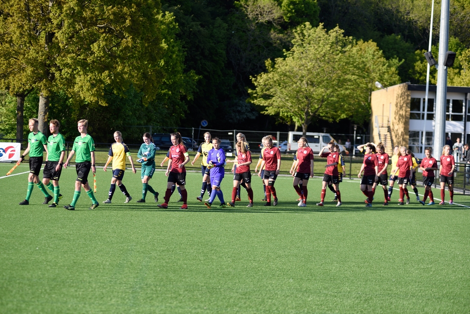 Kampen startede i et livligt tempo og med gode skudforsøg fra begge lejre. Efter 14 minutters spil tog gæsterne føringen, da et Vildbjerg-hjørnespark blev sendt mod bagerste stolpe, hvor en umarkeret Mette Olesen satte indersiden på og bragte udeholdet på 1-0.