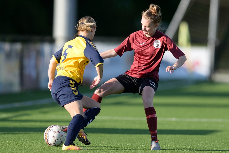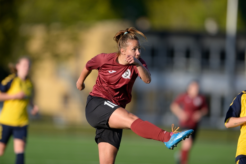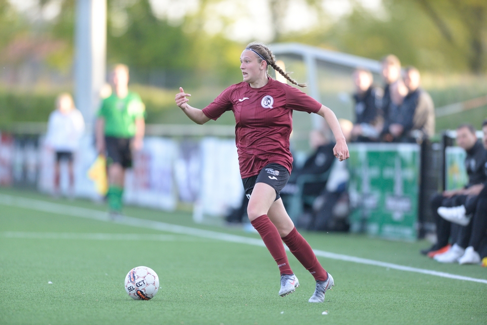 Ti minutter inden pausen svarede hjemmeholdet igen. Et Odense Q-hjørnespark skabte uro og gav anledning til flere skudmuligheder i gæsternes felt, inden Sandra Jakobsen på akrobatisk vis sparkede bolden i nettet med ryggen til mål.