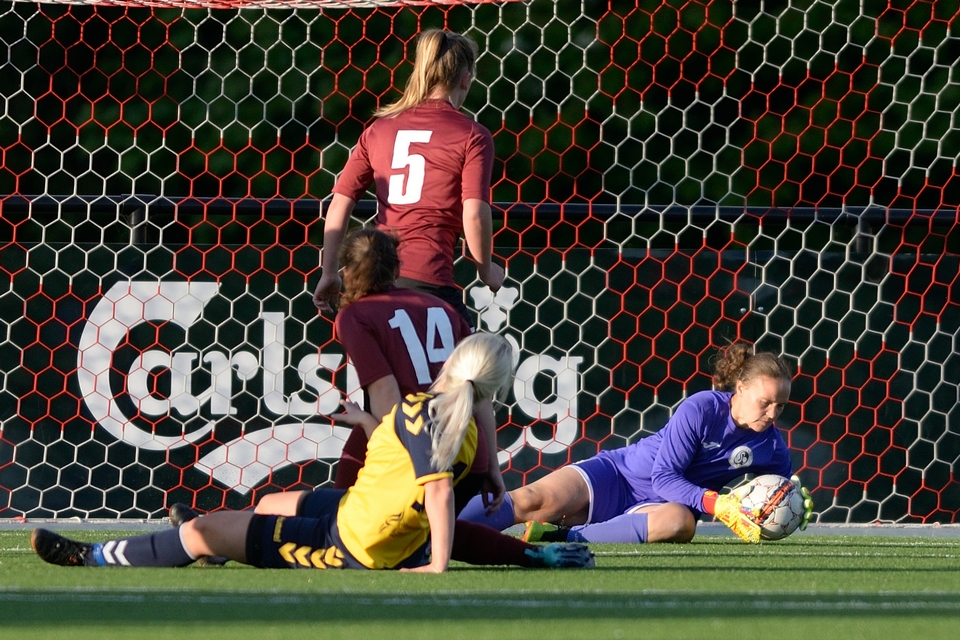 Den hårde rebound startede en kontra til gæsterne, og 20 sekunder senere blev Vildbjerg-angriber Nina Skjøtt nægtet sit andet mål i kampen efter en flot redning af Odense Q-keeper Tina Holm.