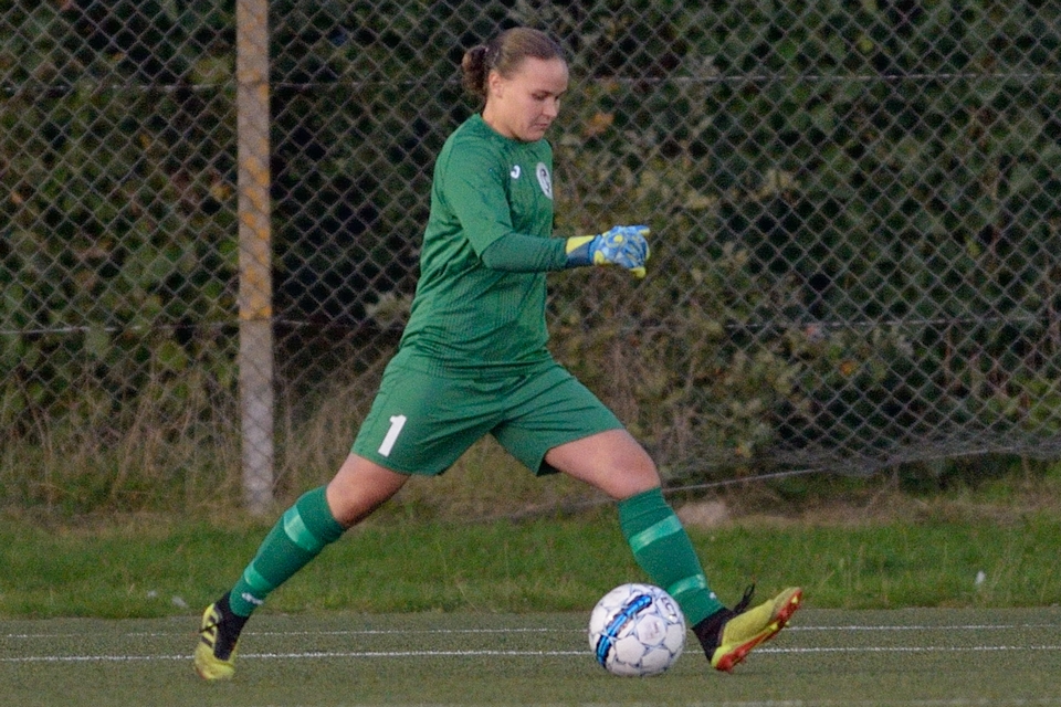 18-årige Julie Jensen nettede tre gange i onsdagens kamp. Lørdag er hun med i ligatruppen mod Fortuna Hjørring.
