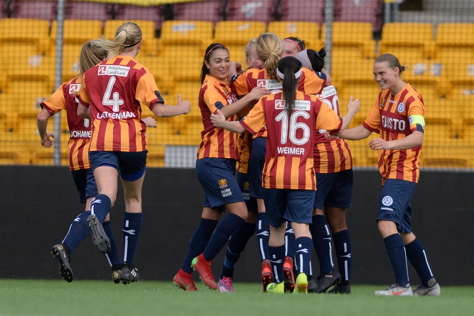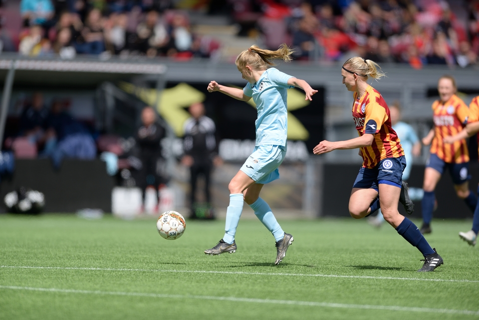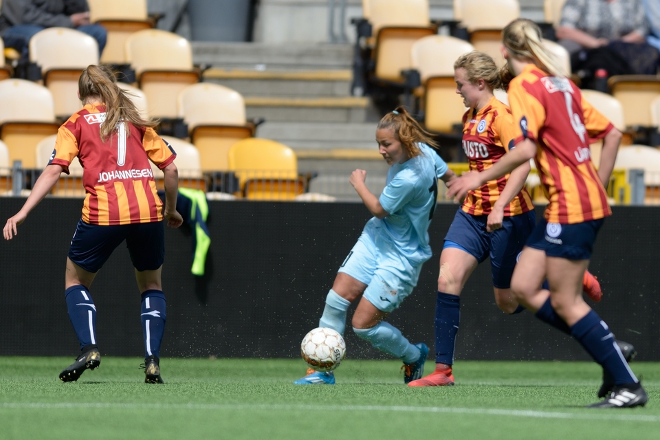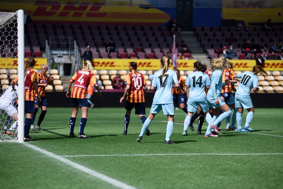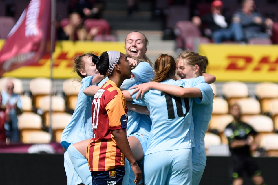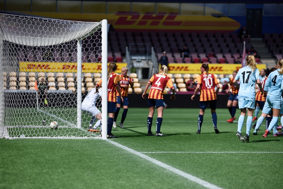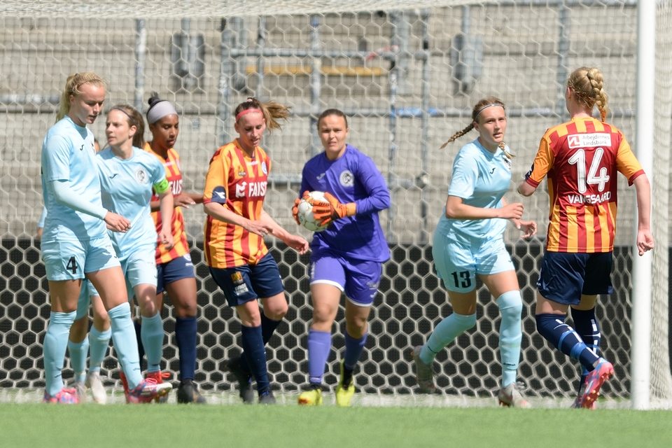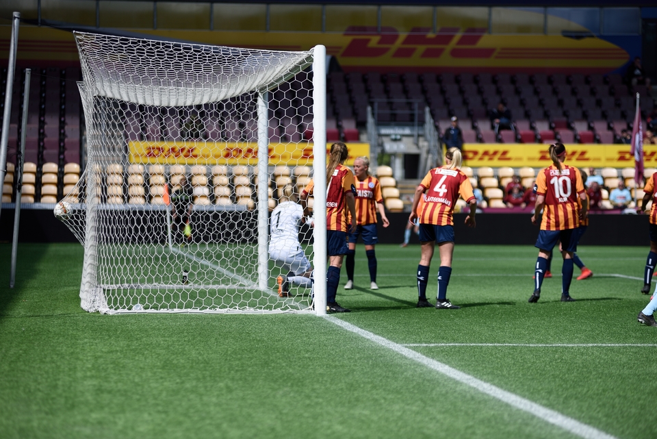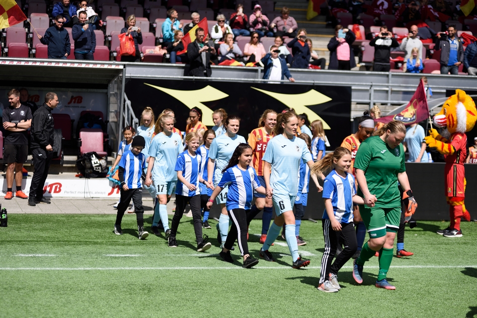 Hjemmeholdet viste styrke fra start, og efter 16 minutters spil tog de føringen, da Kamilla Kur dukkede op ved forreste stolpe og dirigerede et indlæg fra Amalie Vangsgaard i nettet.