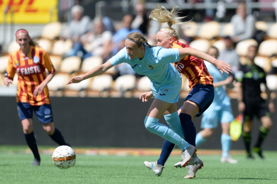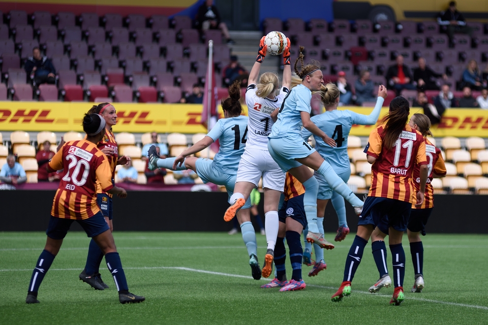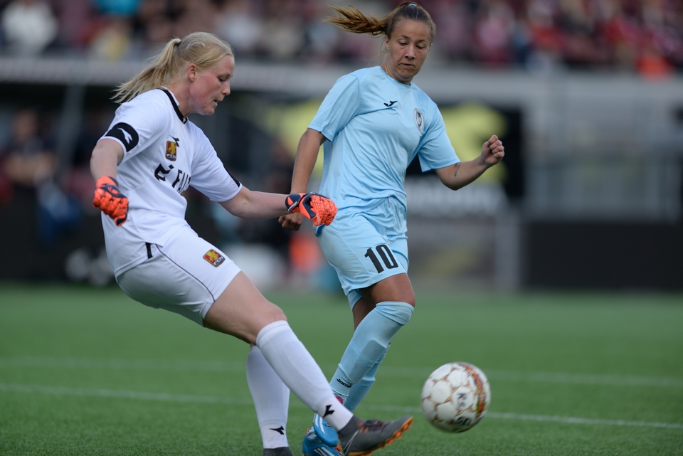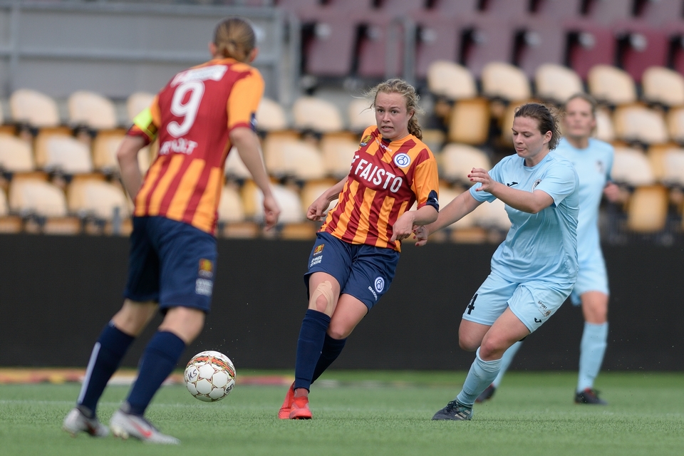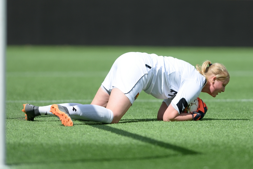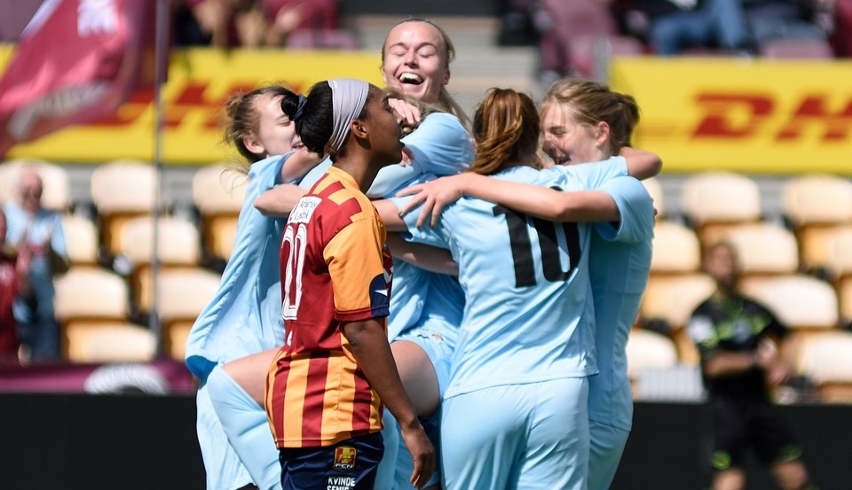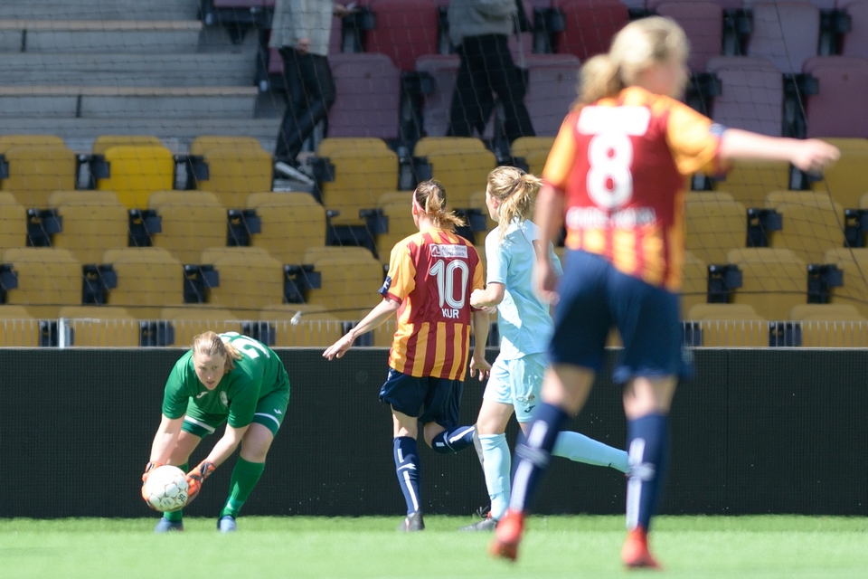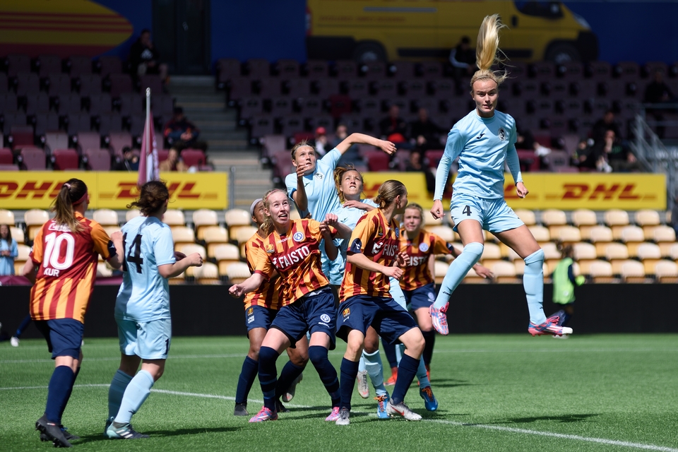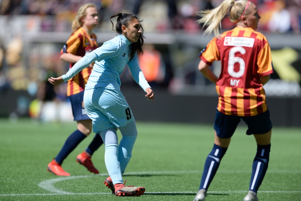 Hjemmeholdet viste styrke fra start, og efter 16 minutters spil tog de føringen, da Kamilla Kur dukkede op ved forreste stolpe og dirigerede et indlæg fra Amalie Vangsgaard i nettet.