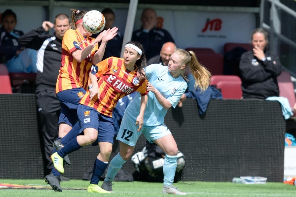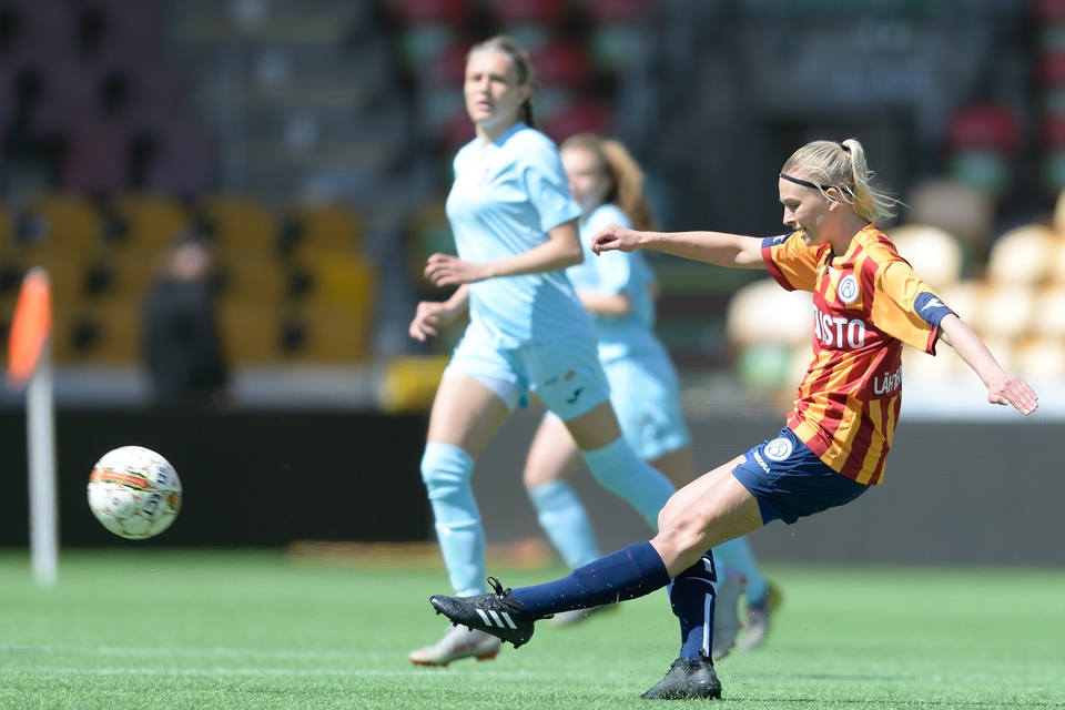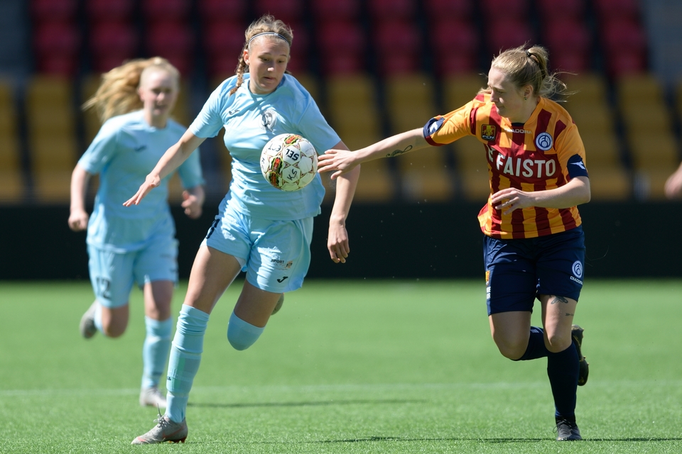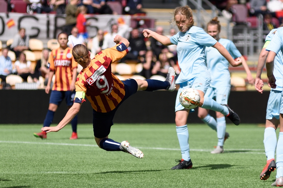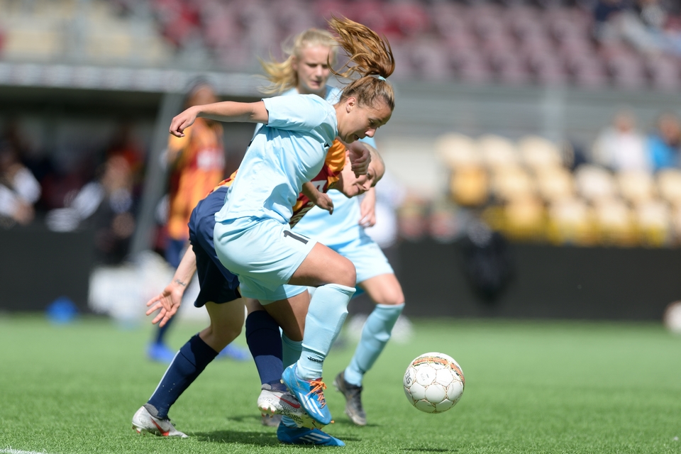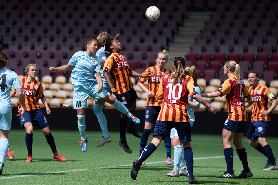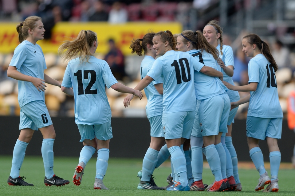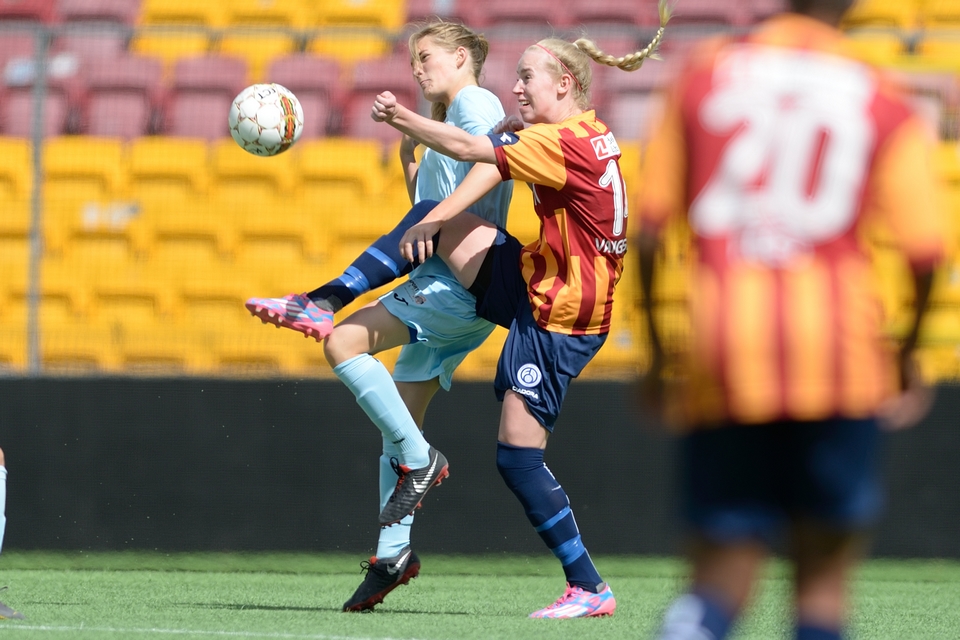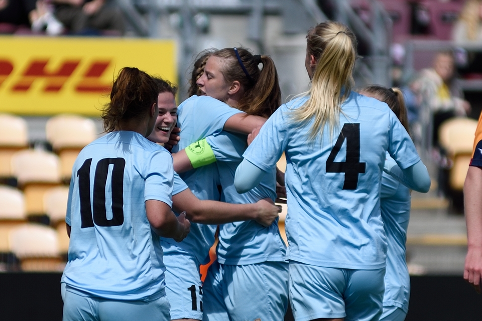 Hjemmeholdet viste styrke fra start, og efter 16 minutters spil tog de føringen, da Kamilla Kur dukkede op ved forreste stolpe og dirigerede et indlæg fra Amalie Vangsgaard i nettet.