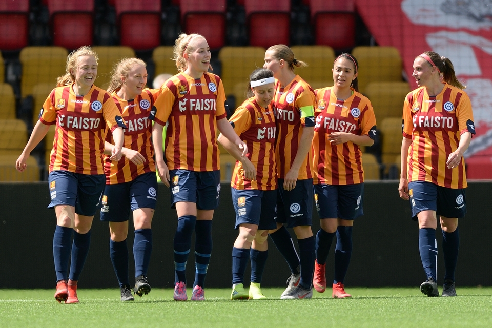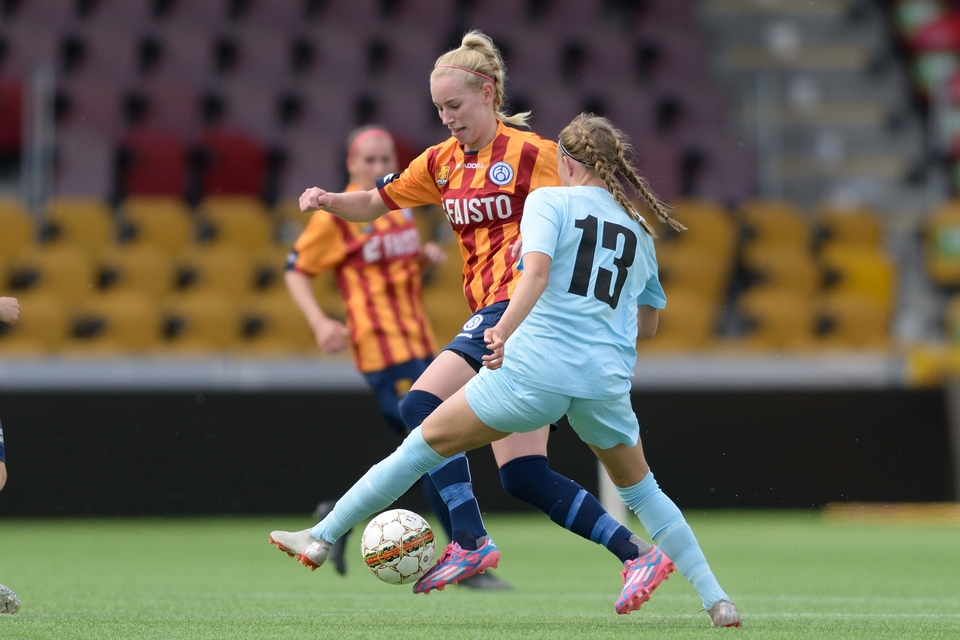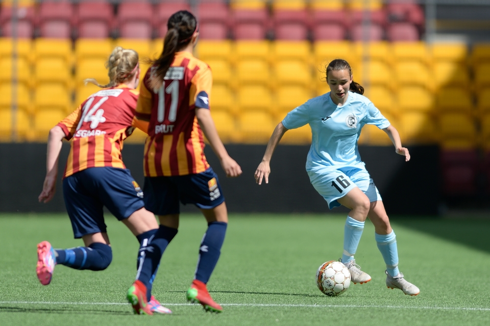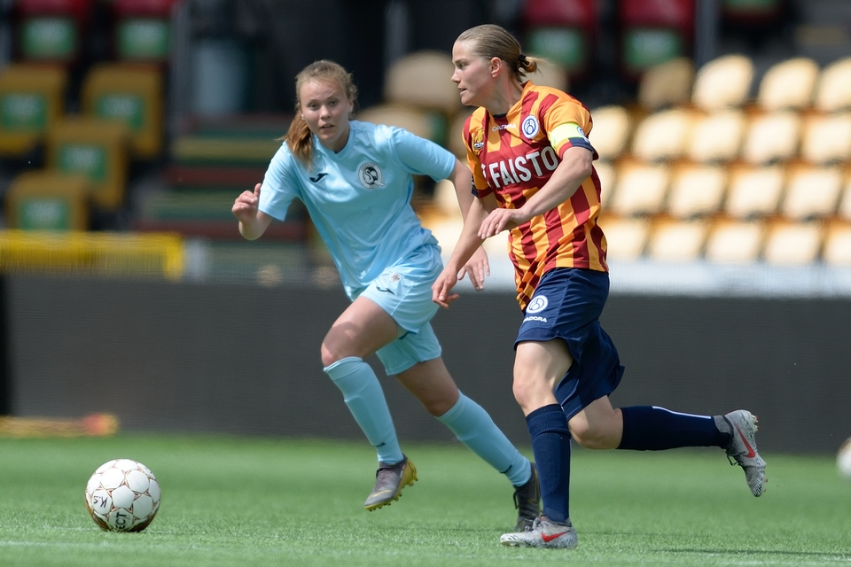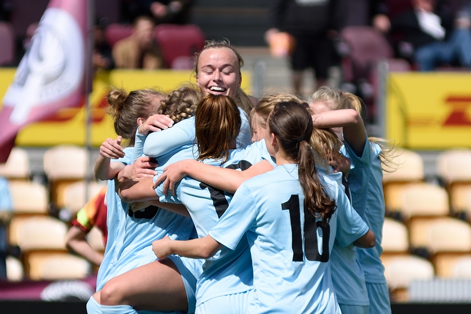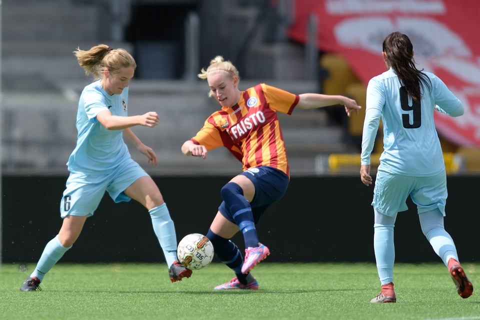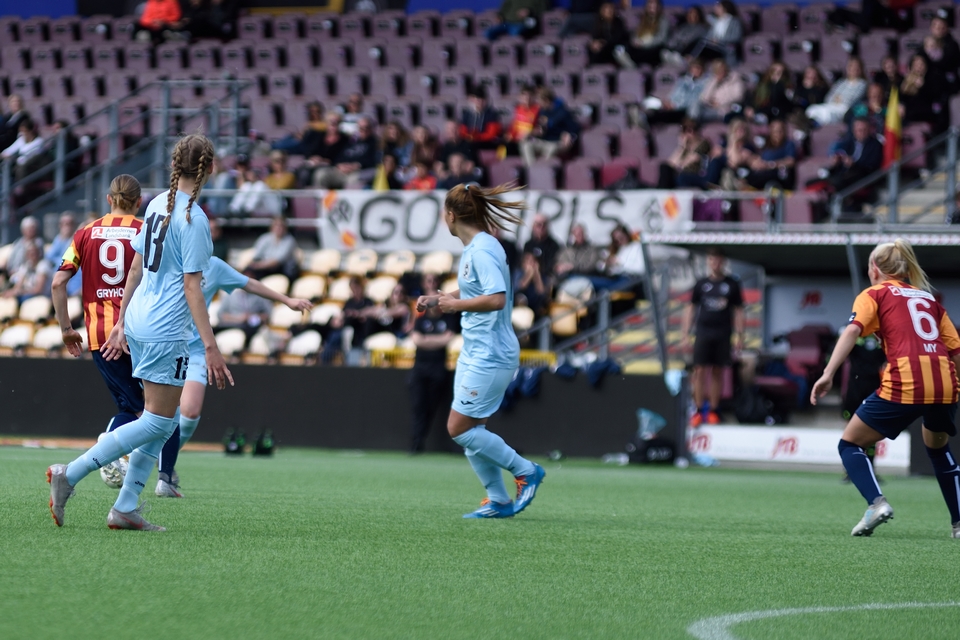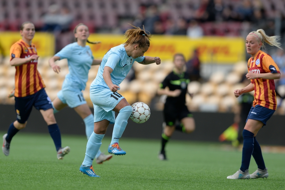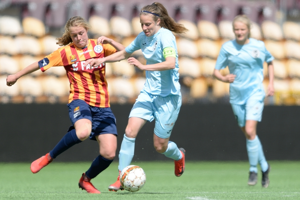 Hjemmeholdet viste styrke fra start, og efter 16 minutters spil tog de føringen, da Kamilla Kur dukkede op ved forreste stolpe og dirigerede et indlæg fra Amalie Vangsgaard i nettet.