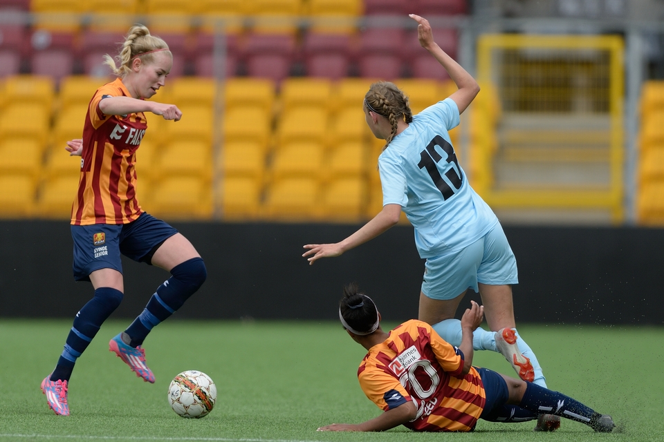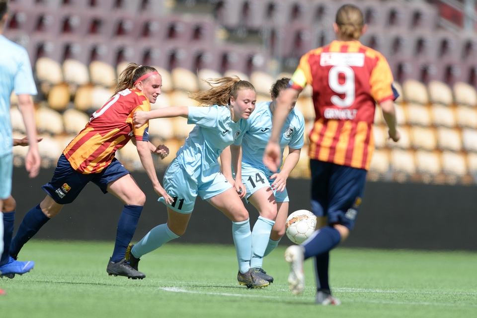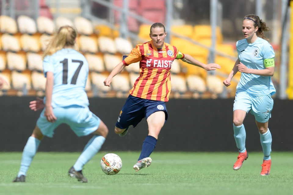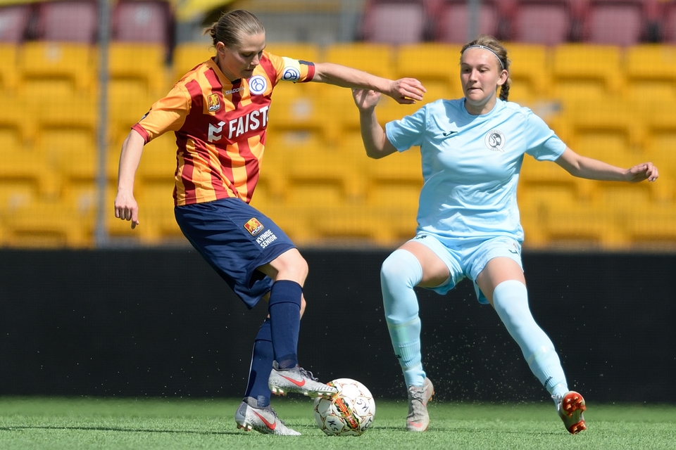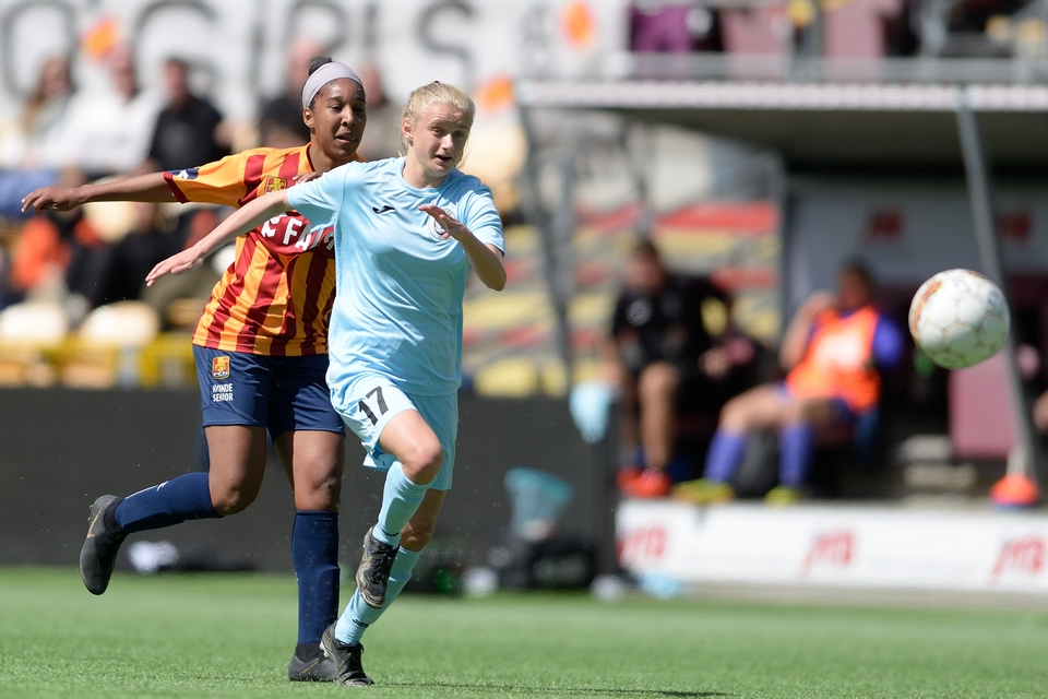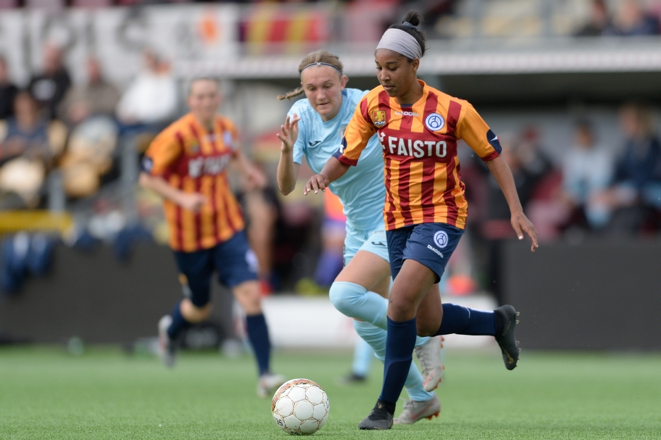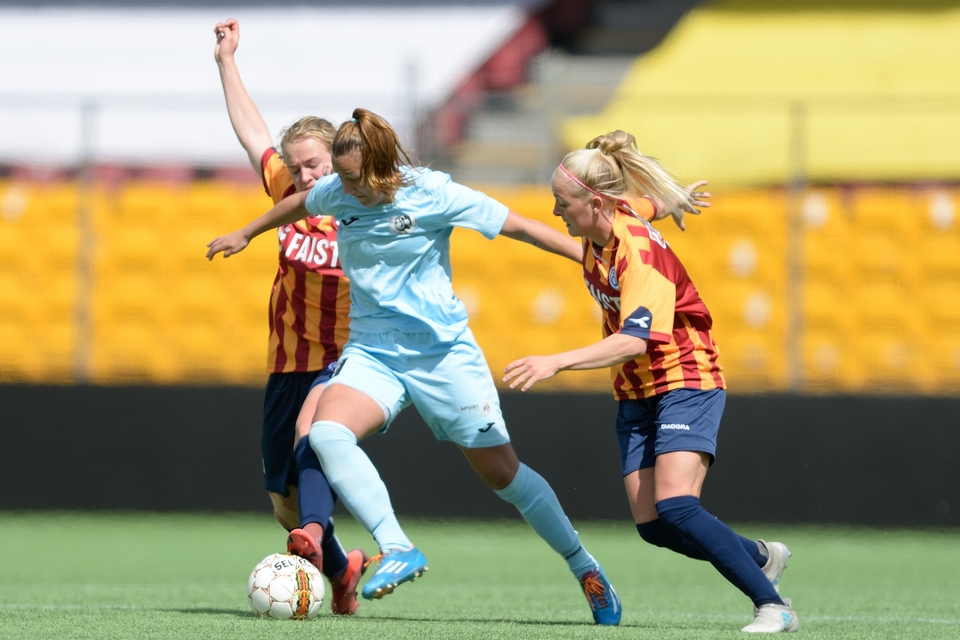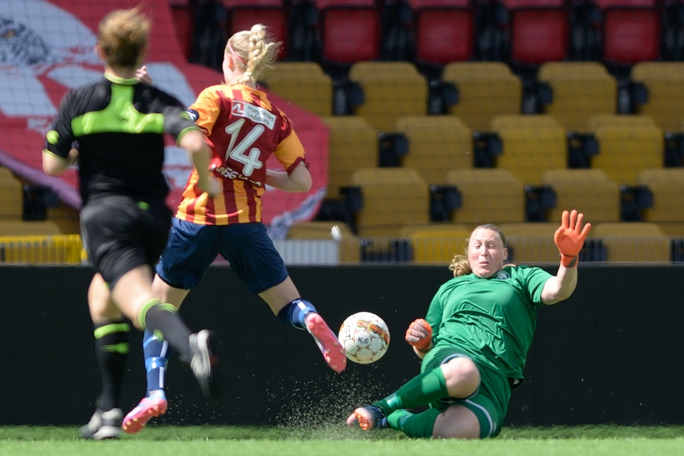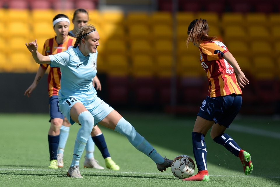 Hjemmeholdet viste styrke fra start, og efter 16 minutters spil tog de føringen, da Kamilla Kur dukkede op ved forreste stolpe og dirigerede et indlæg fra Amalie Vangsgaard i nettet.