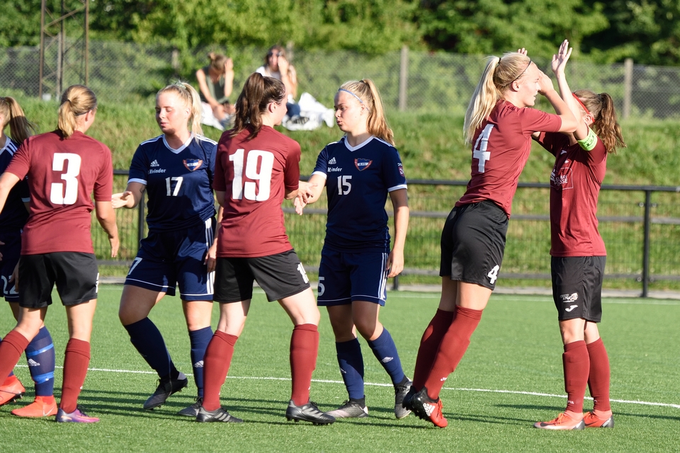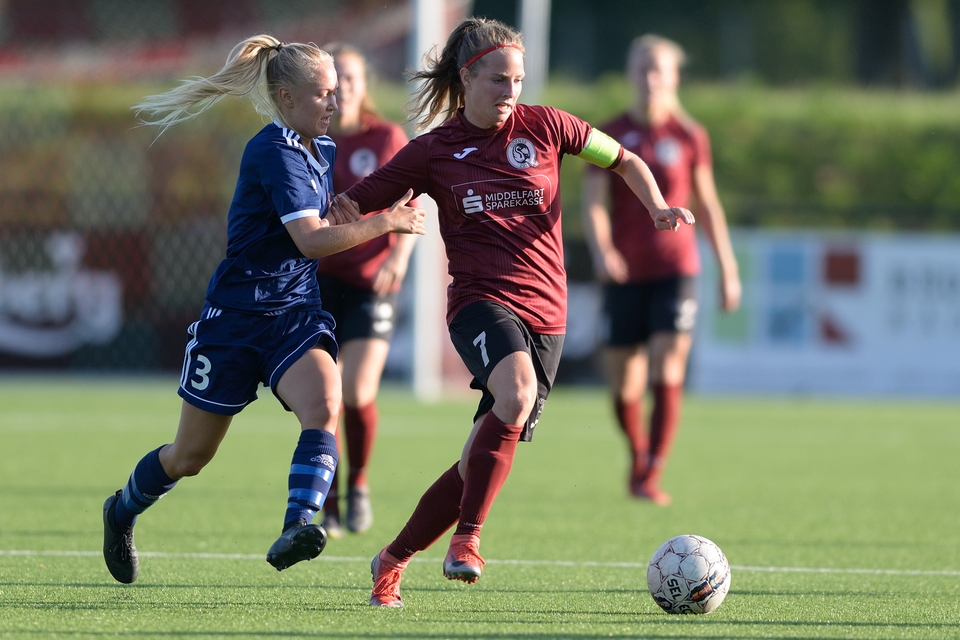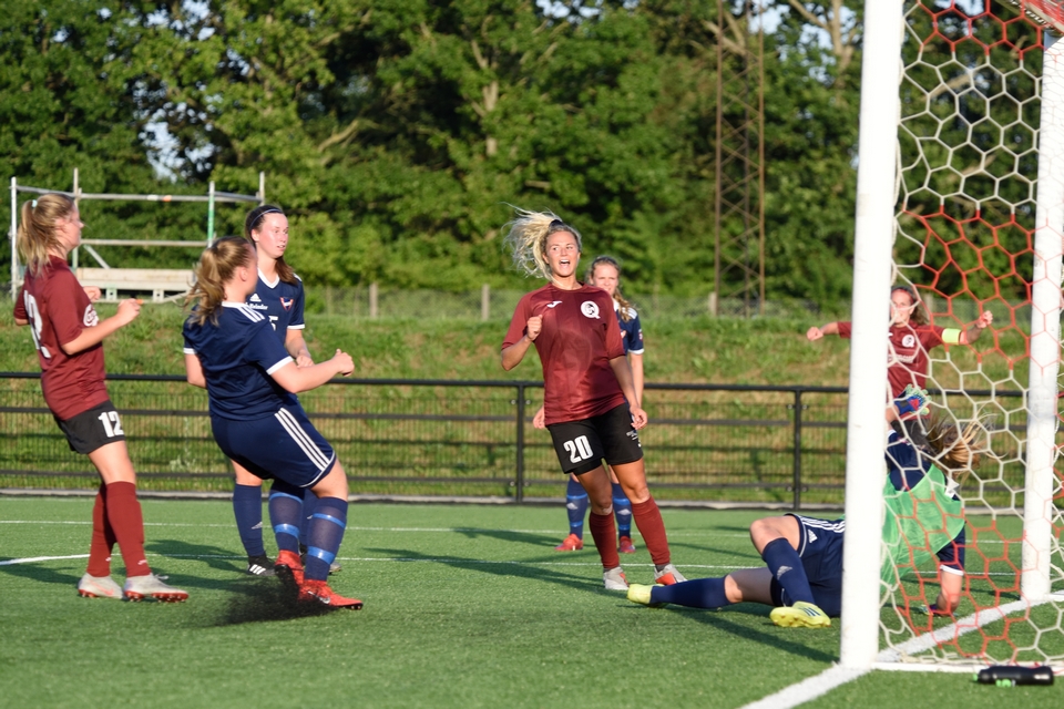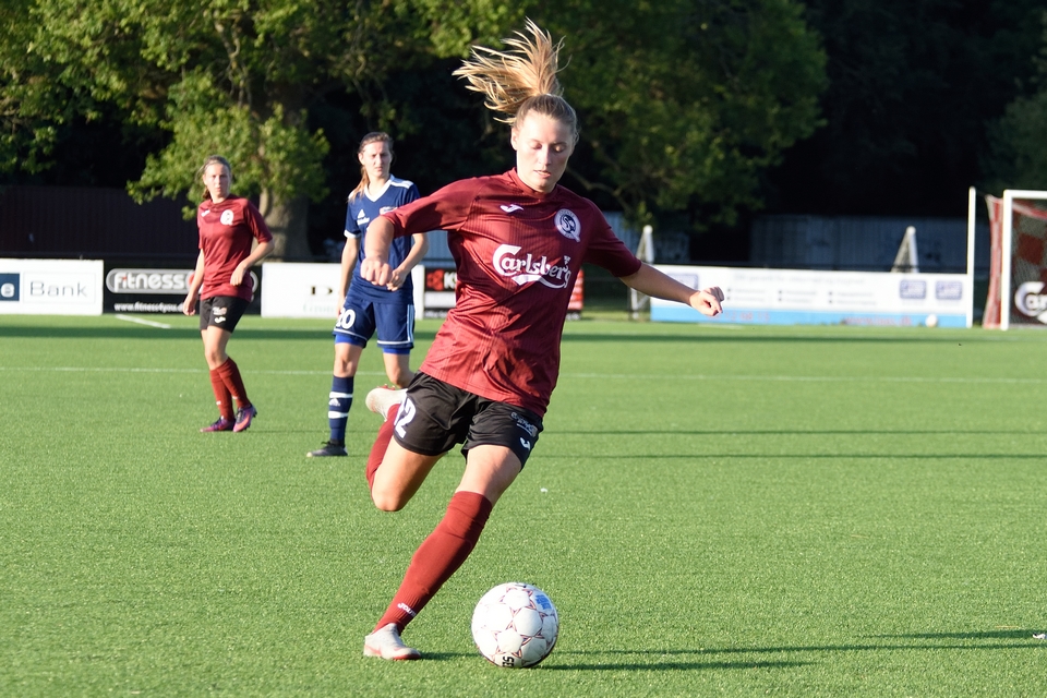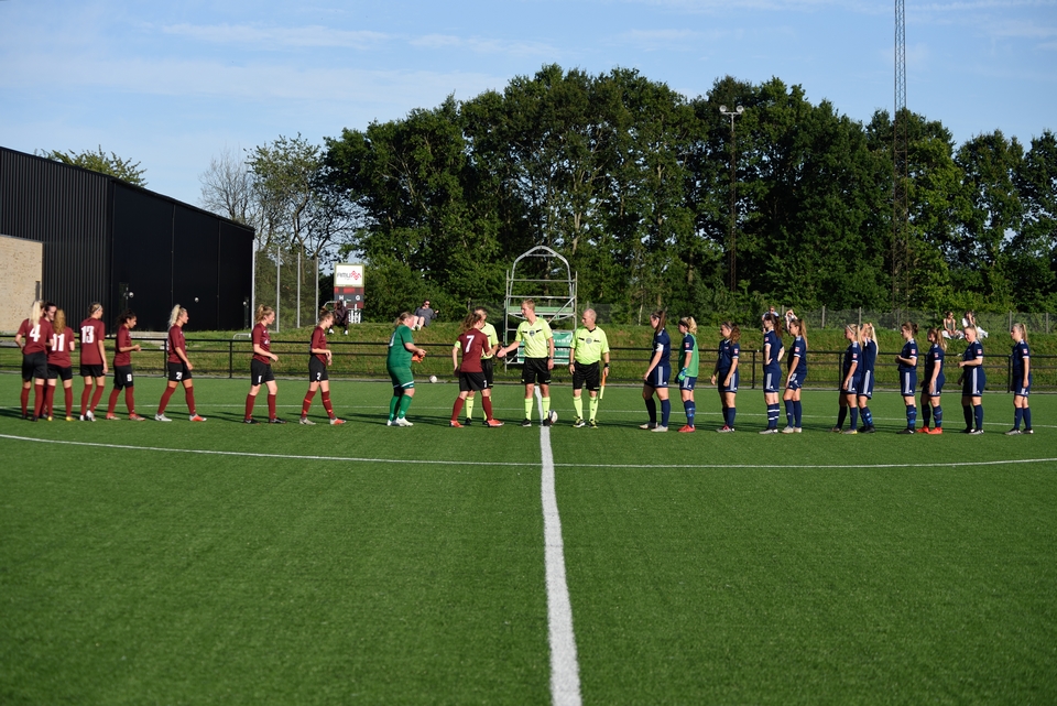 Første scoring i opgøret faldt efter 48 minutters spil, da nyoprykkede Nicoline Bæksted tæt under mål fik sat foden på et fladt indlæg fra anfører Tenna Kappel.