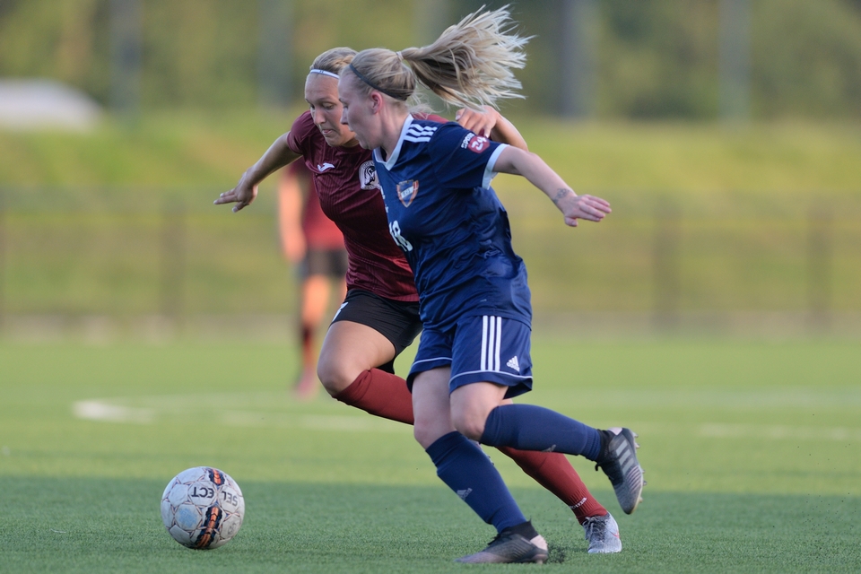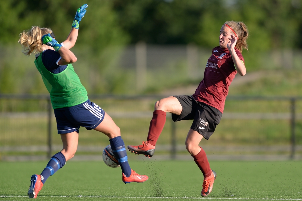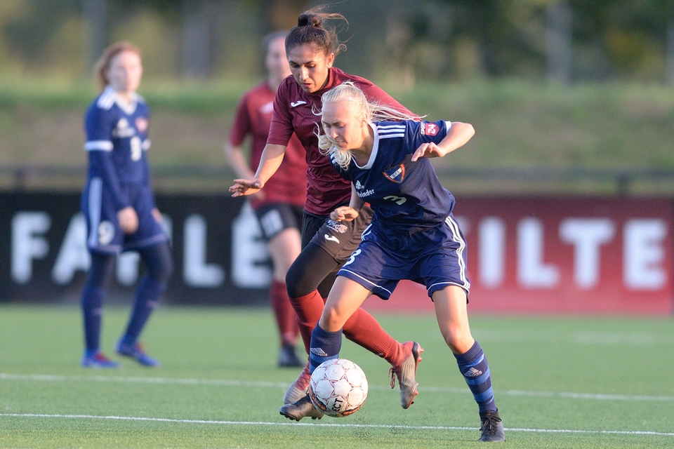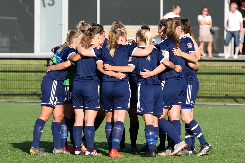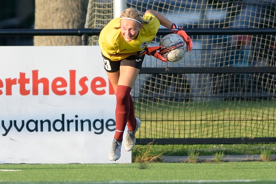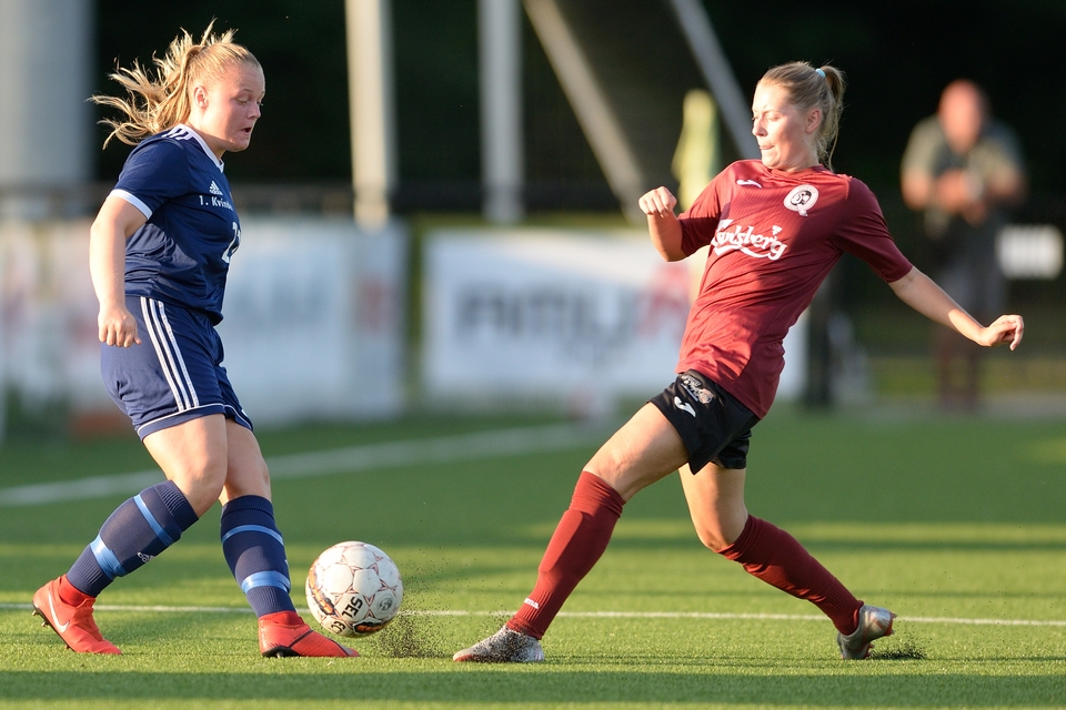 Første scoring i opgøret faldt efter 48 minutters spil, da nyoprykkede Nicoline Bæksted tæt under mål fik sat foden på et fladt indlæg fra anfører Tenna Kappel.