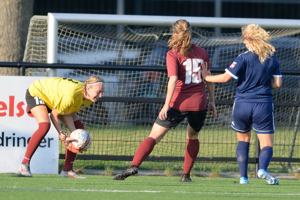 Med fem minutter igen blev gæsternes keeper udvist, efter hun utilsigtet tog hånden i brug uden for feltet. På det efterfølgende frispark gjorde Malaika Din Hashmi det til 4-0 med et højt, dykkende spark, som overlistede den vikarierende keeper i det københavnske mål.