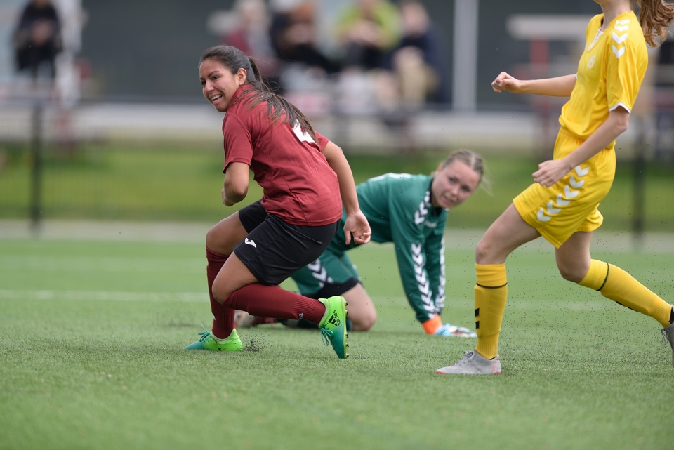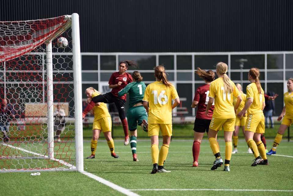 Sofie Ottosen åbnede scoringen efter 6 minutters spil på flot forarbejde af Ida Kristensen og Malaika Din Hashmi. 25 minutter inde i kampen kom udeholdets modsvar. Gæsterens Trine Jensen var hurtig over nedfaldet efter en dødbold, og med en flad afslutning tæt under mål fik hun bragt balance i regnskabet.