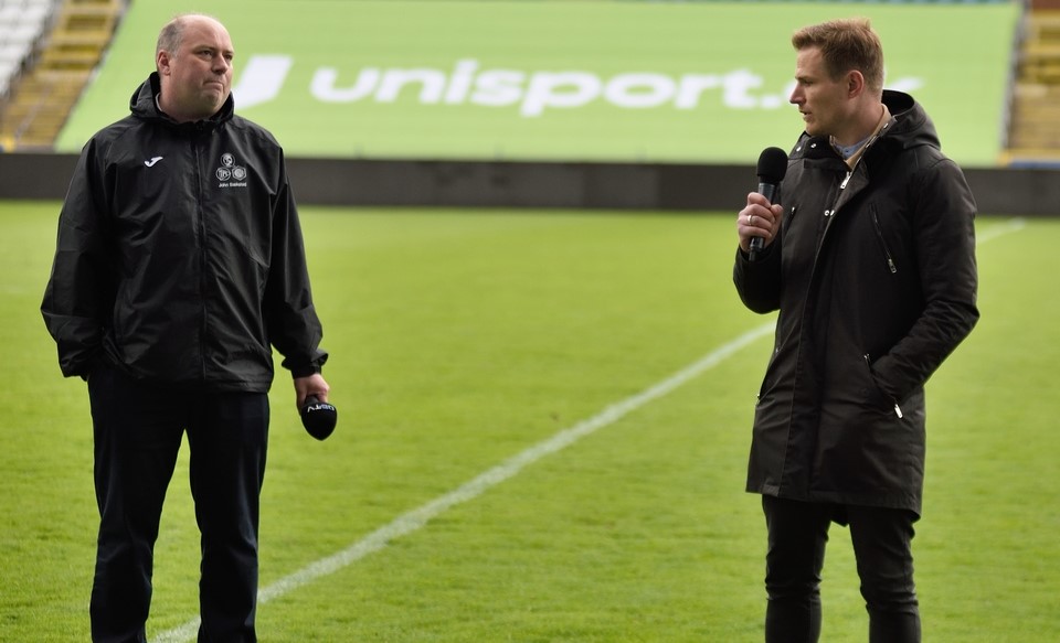 John Bæksted (tv) og Claus Wolff Lumby, Regional Salgschef i Royal Unibrew, offentliggjorde tidligere på året et nyt samarbejde mellem Odense Q og Albani.