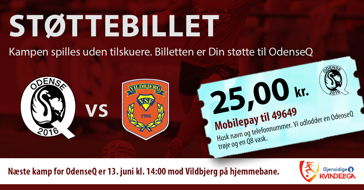 Du kan støtte klubben i en svær tid ved at købe en virtuel støttebillet til kampen. Den koster 25 kr., som sendes til 49649 på MobilePay. Husk at tilføje navn og telefonnummer i kommentarfeltet, og vær med i lodtrækningen om en Odense Q-trøje & en Q8 bilvask.