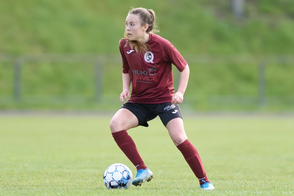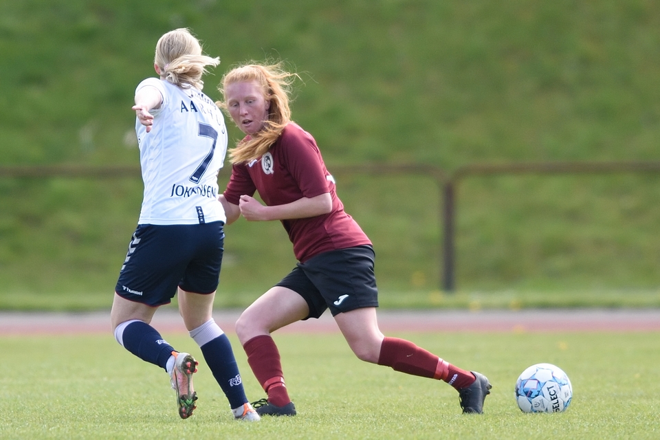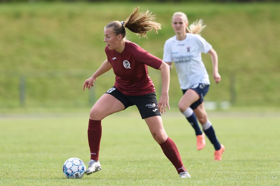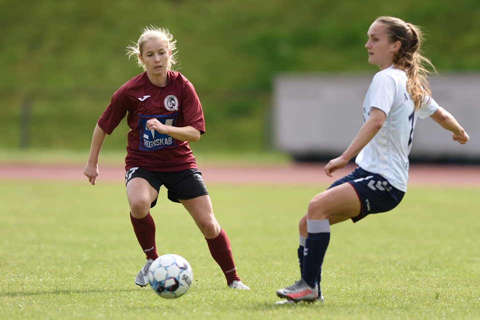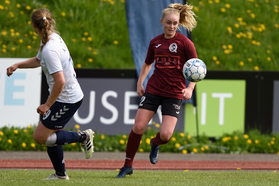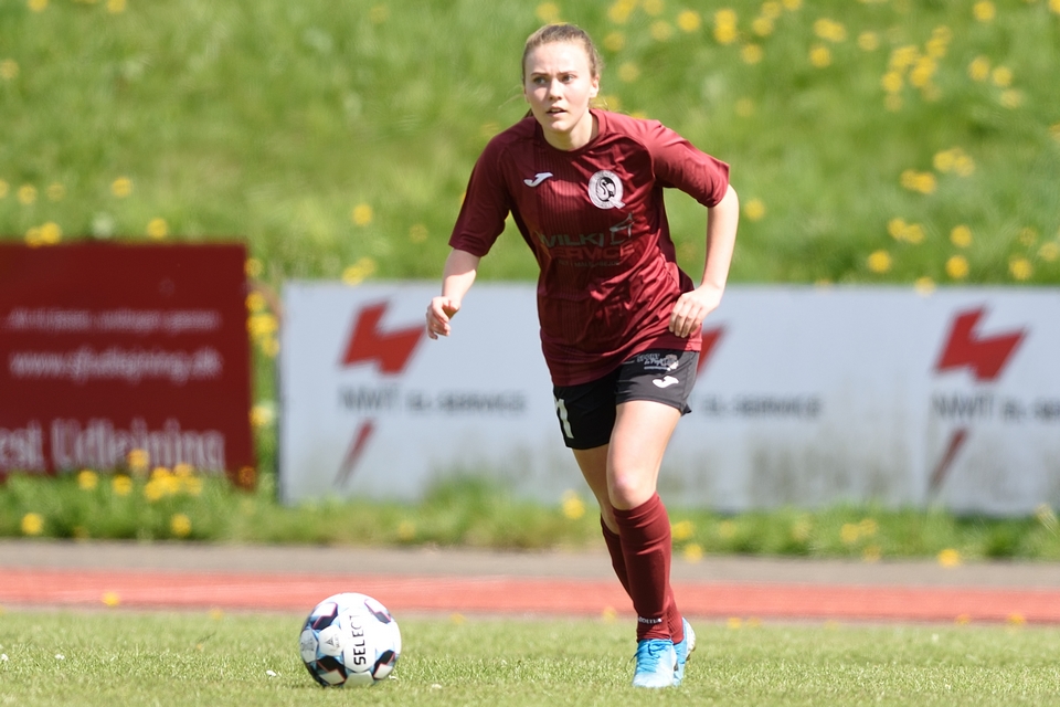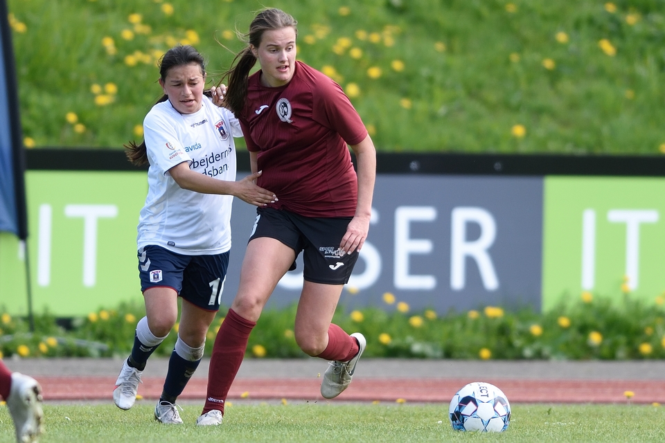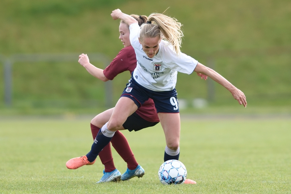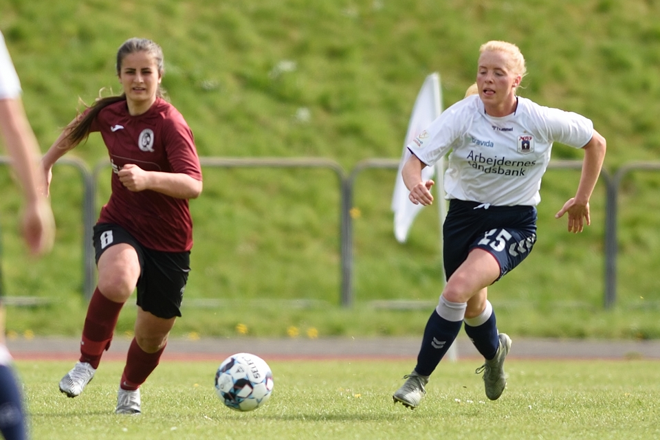 Kamilla Ø. Jensen noterede sig for det enlige Odense Q-mål i lørdagens kamp.