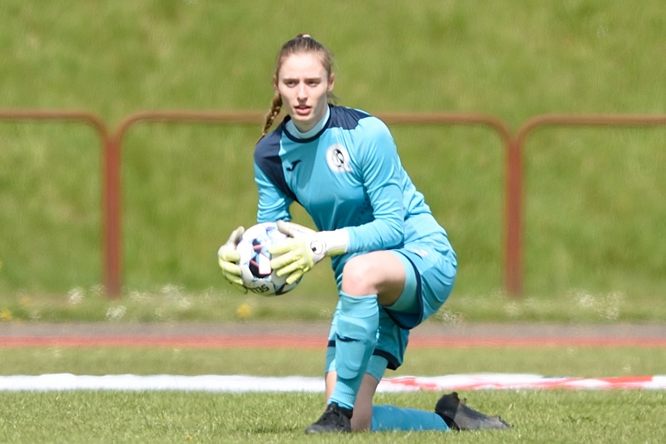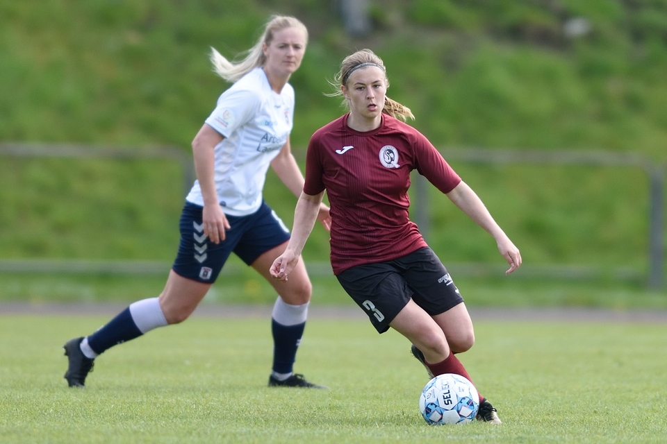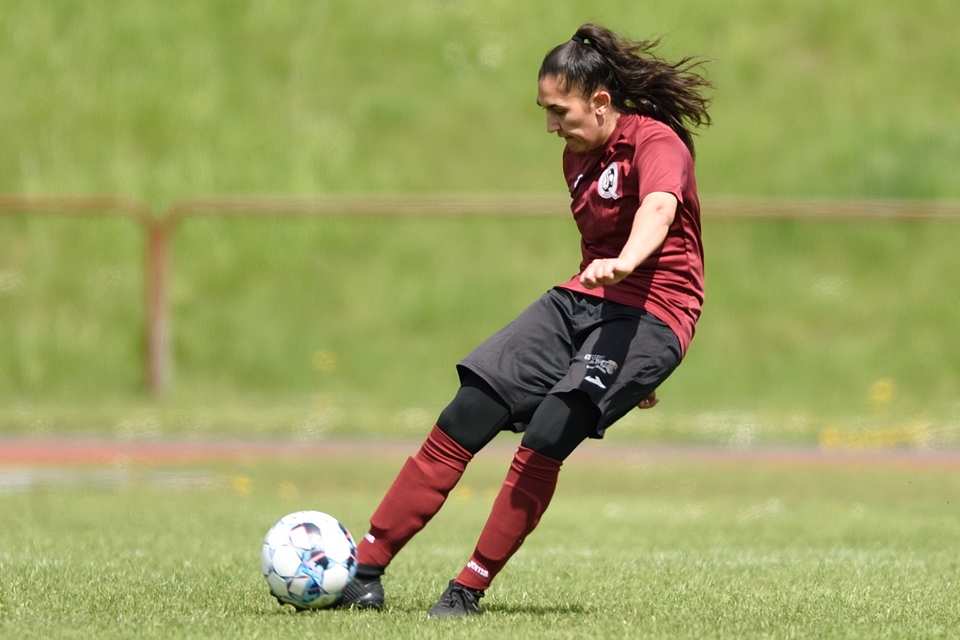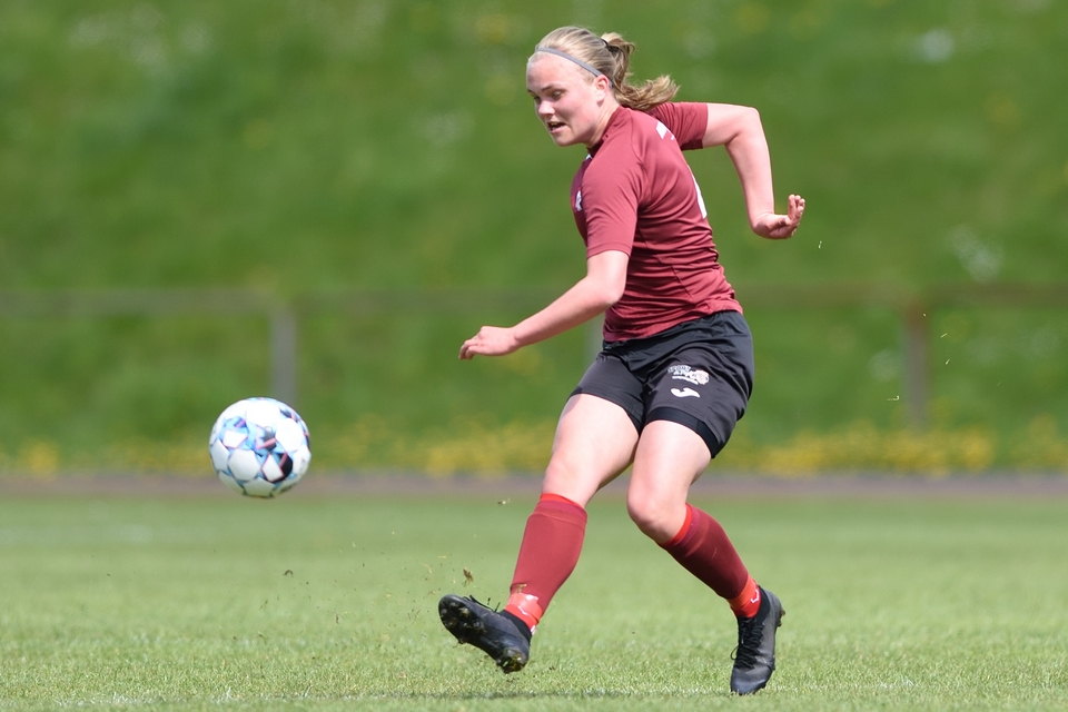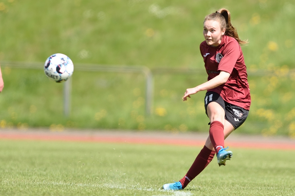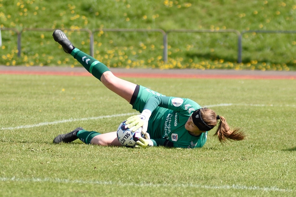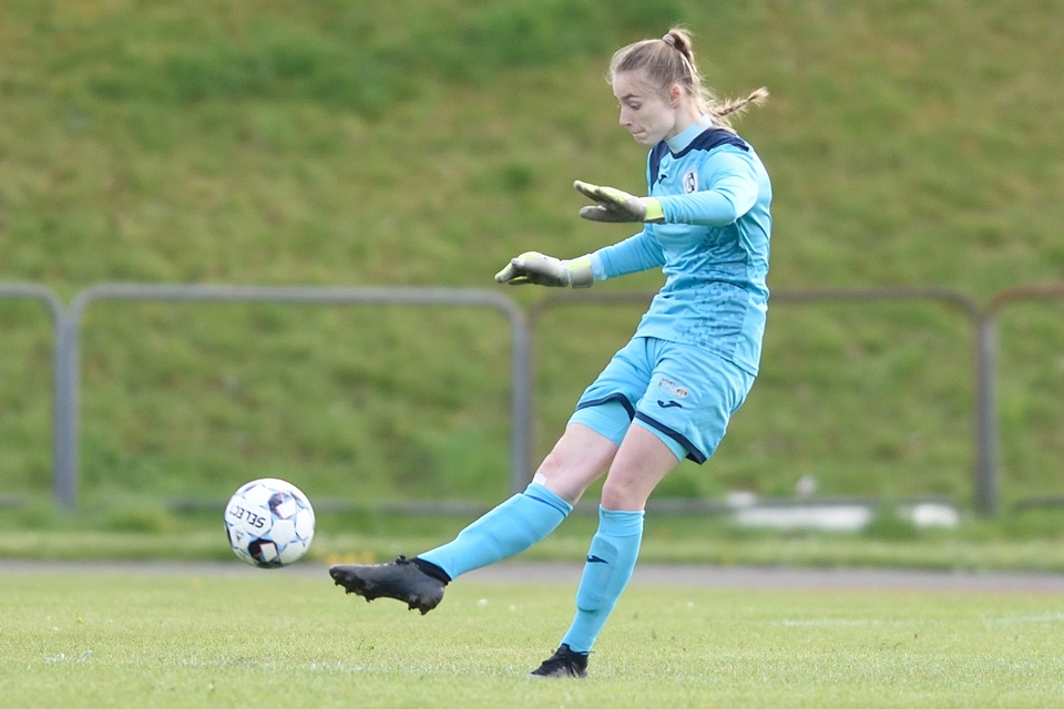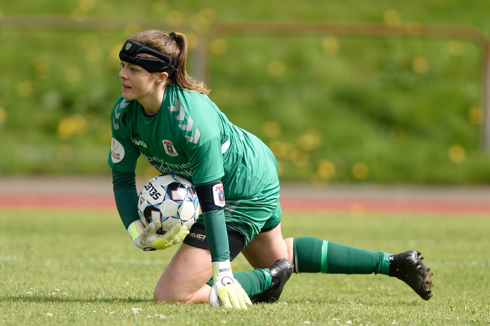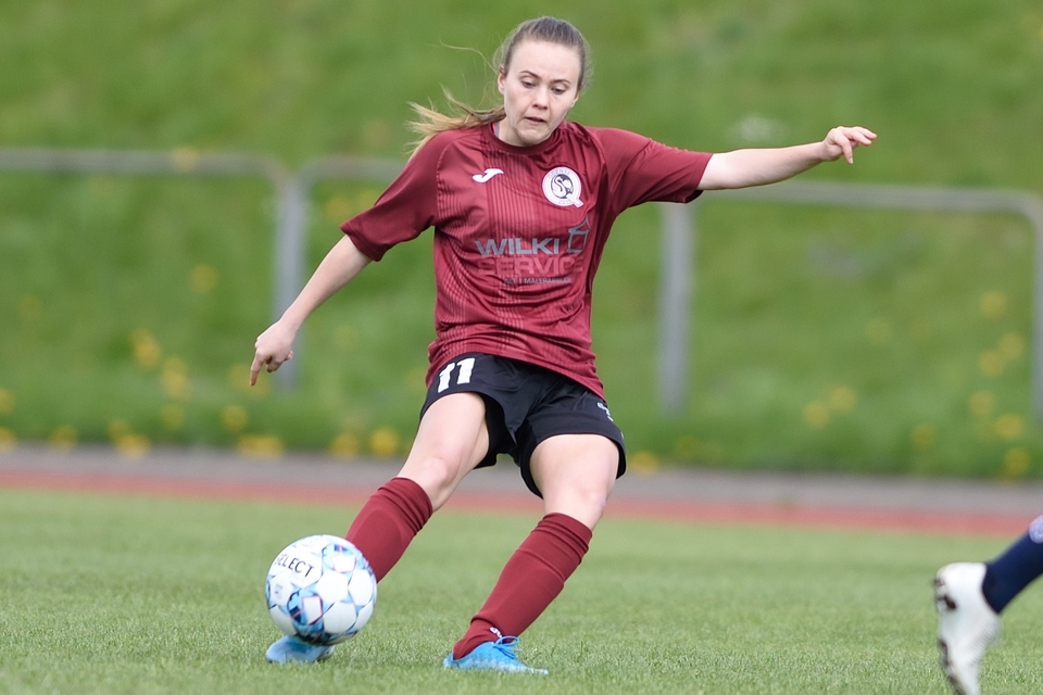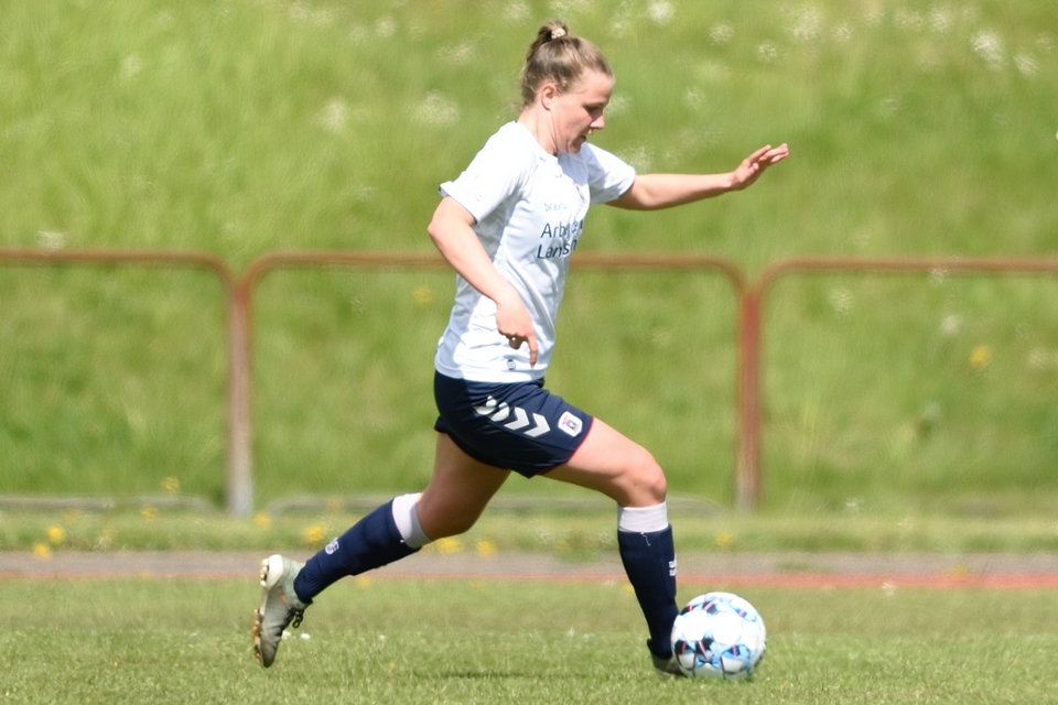 Kamilla Ø. Jensen noterede sig for det enlige Odense Q-mål i lørdagens kamp.