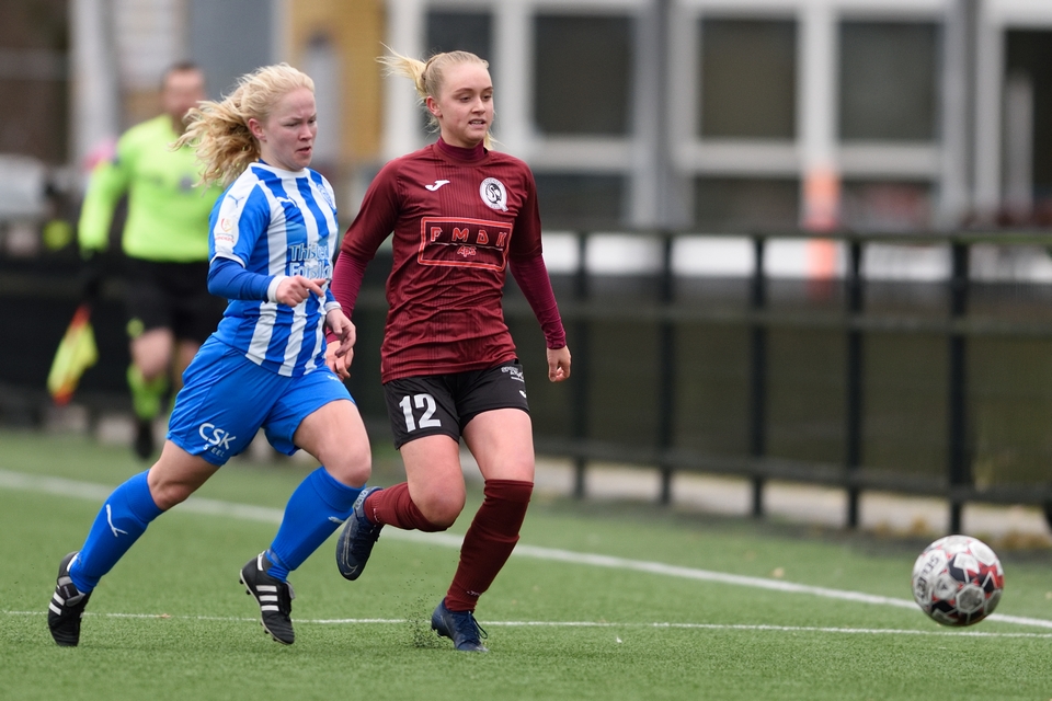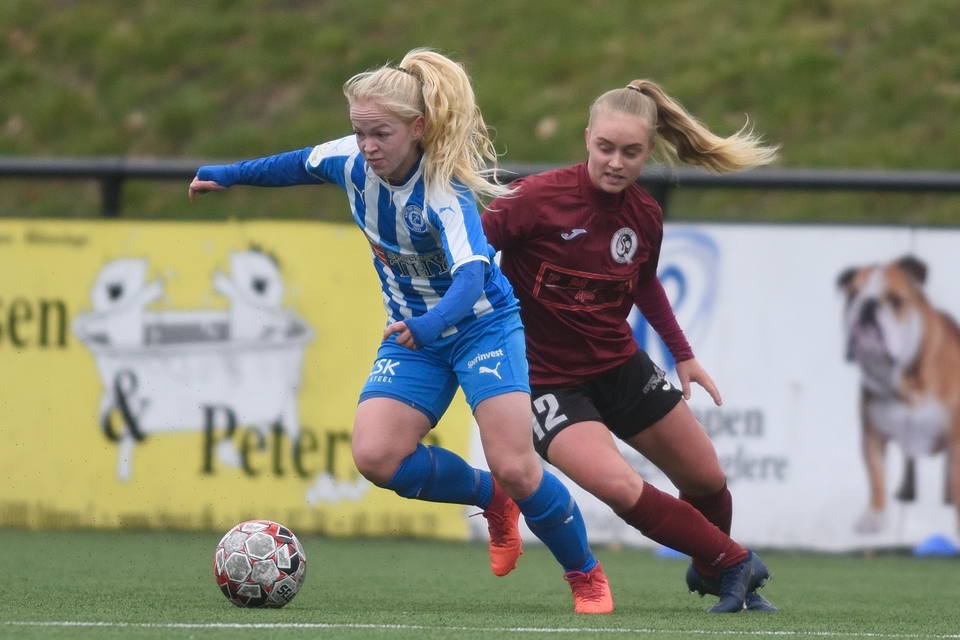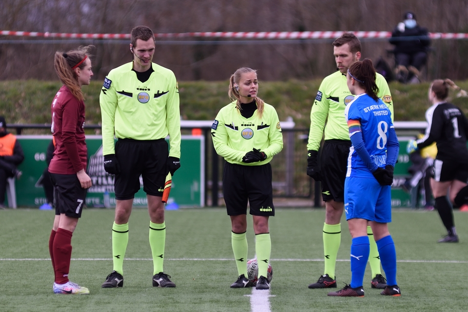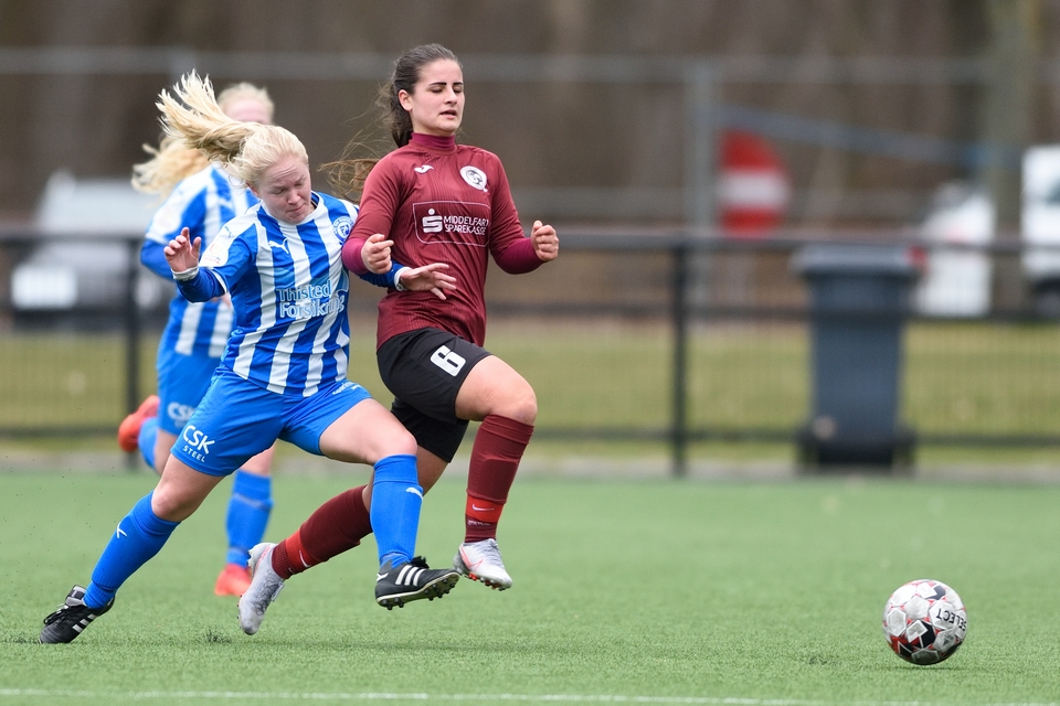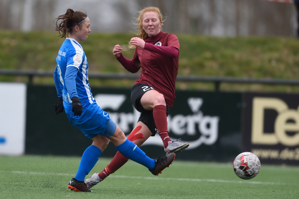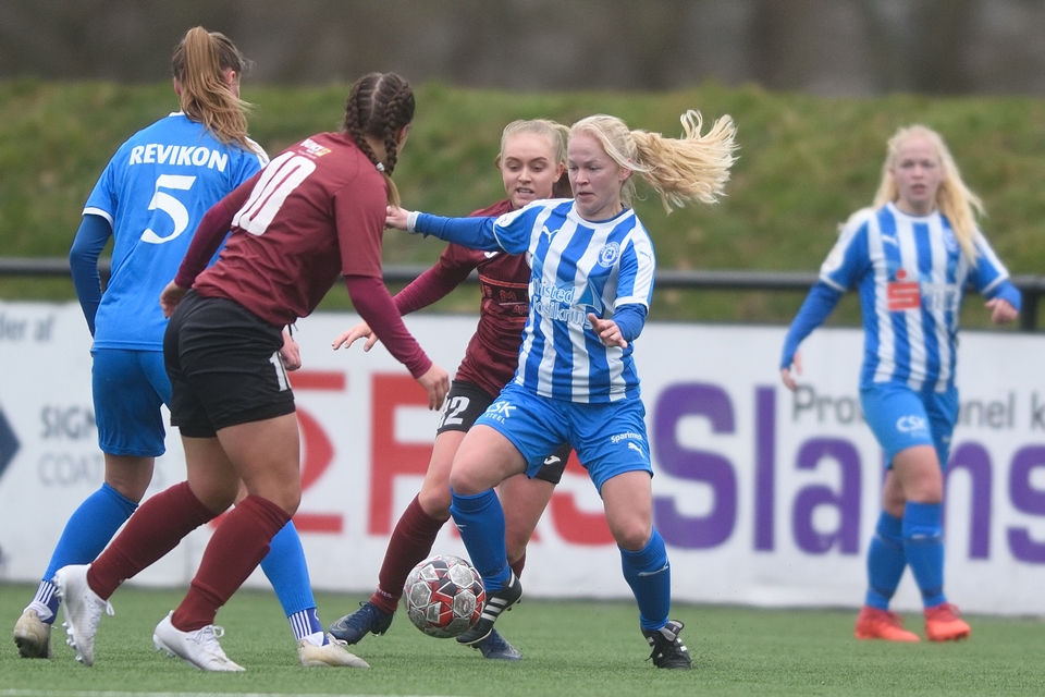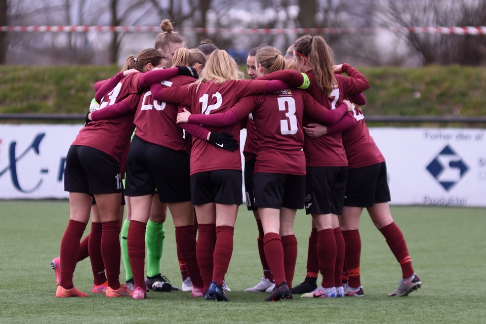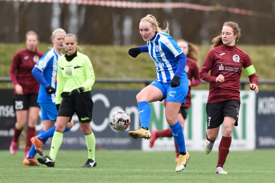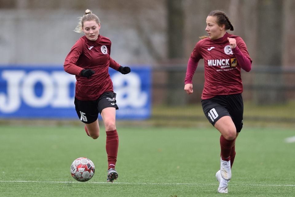 Udeholdet sad på tingene gennem det meste af 1. halvleg, og efter en lille halv times spil blev føringen udbygget yderligere. En hjørnesparksbold fandt Olivia Bergmann i det lille felt, og hun headede bolden i nettet til en 3-0 føring til gæsterne, som der heller ikke blev ændret på inden pausen.