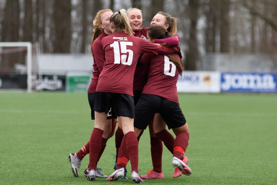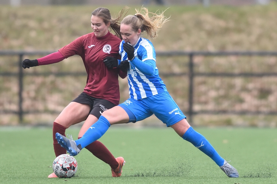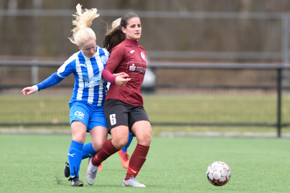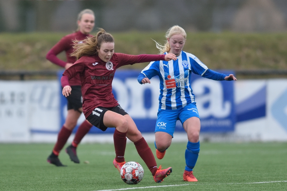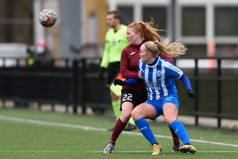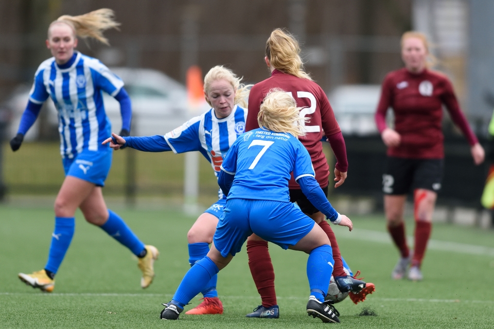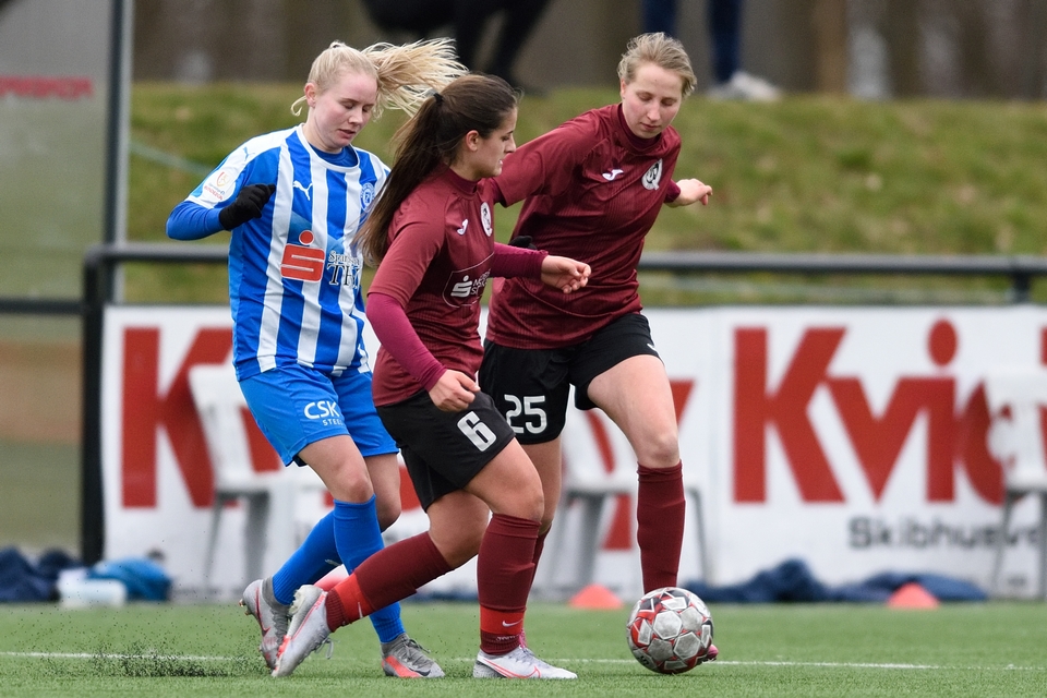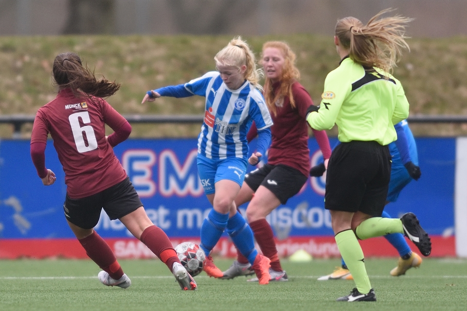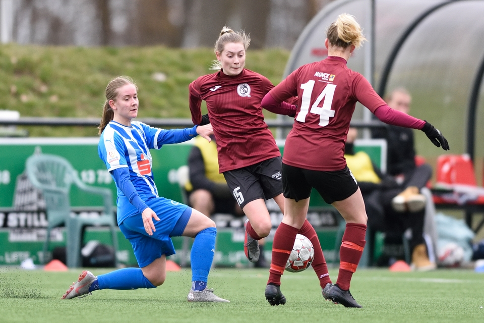 Udeholdet sad på tingene gennem det meste af 1. halvleg, og efter en lille halv times spil blev føringen udbygget yderligere. En hjørnesparksbold fandt Olivia Bergmann i det lille felt, og hun headede bolden i nettet til en 3-0 føring til gæsterne, som der heller ikke blev ændret på inden pausen.